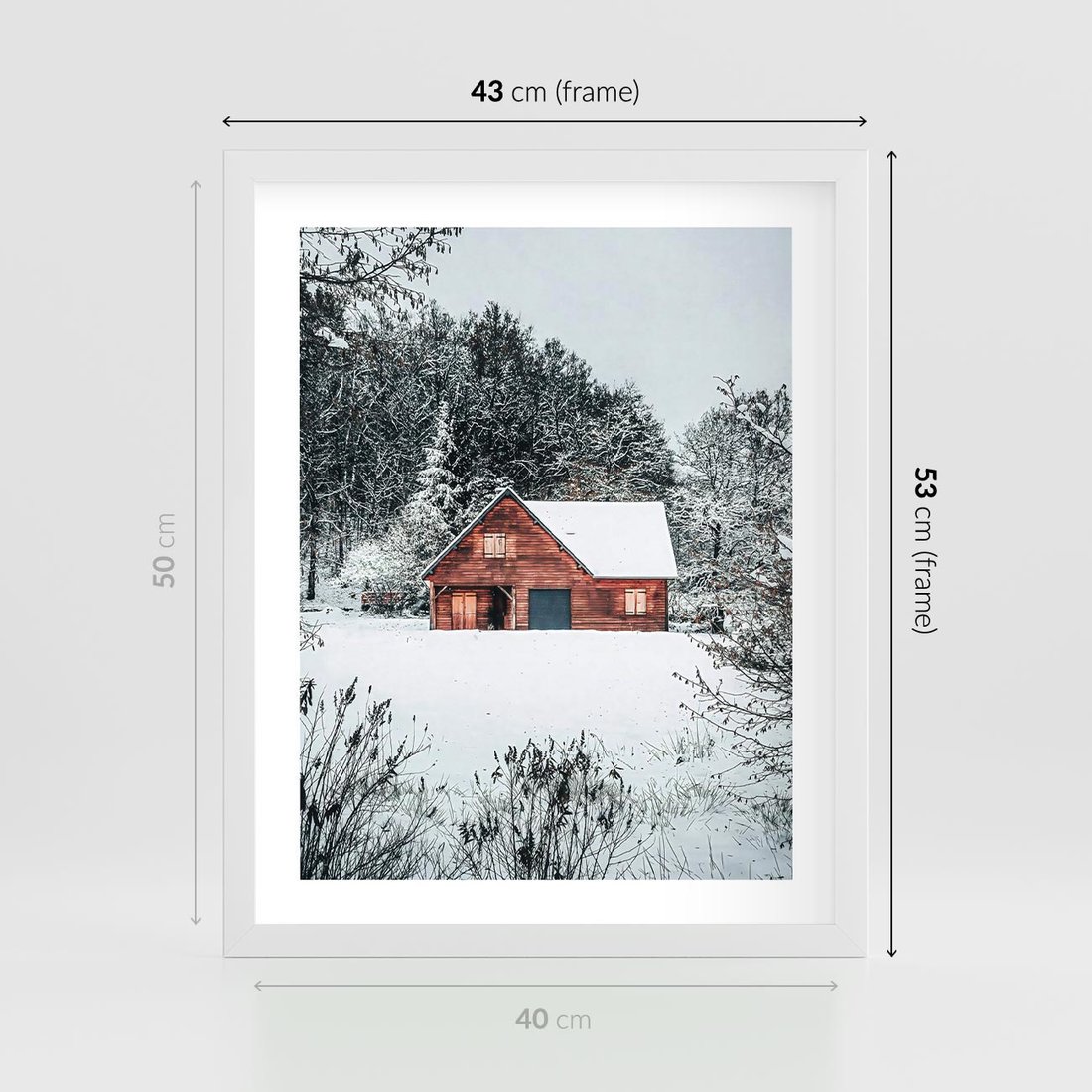 - Plakat w ramie 40x50 - Domek w Górach Pokryty Śniegiem