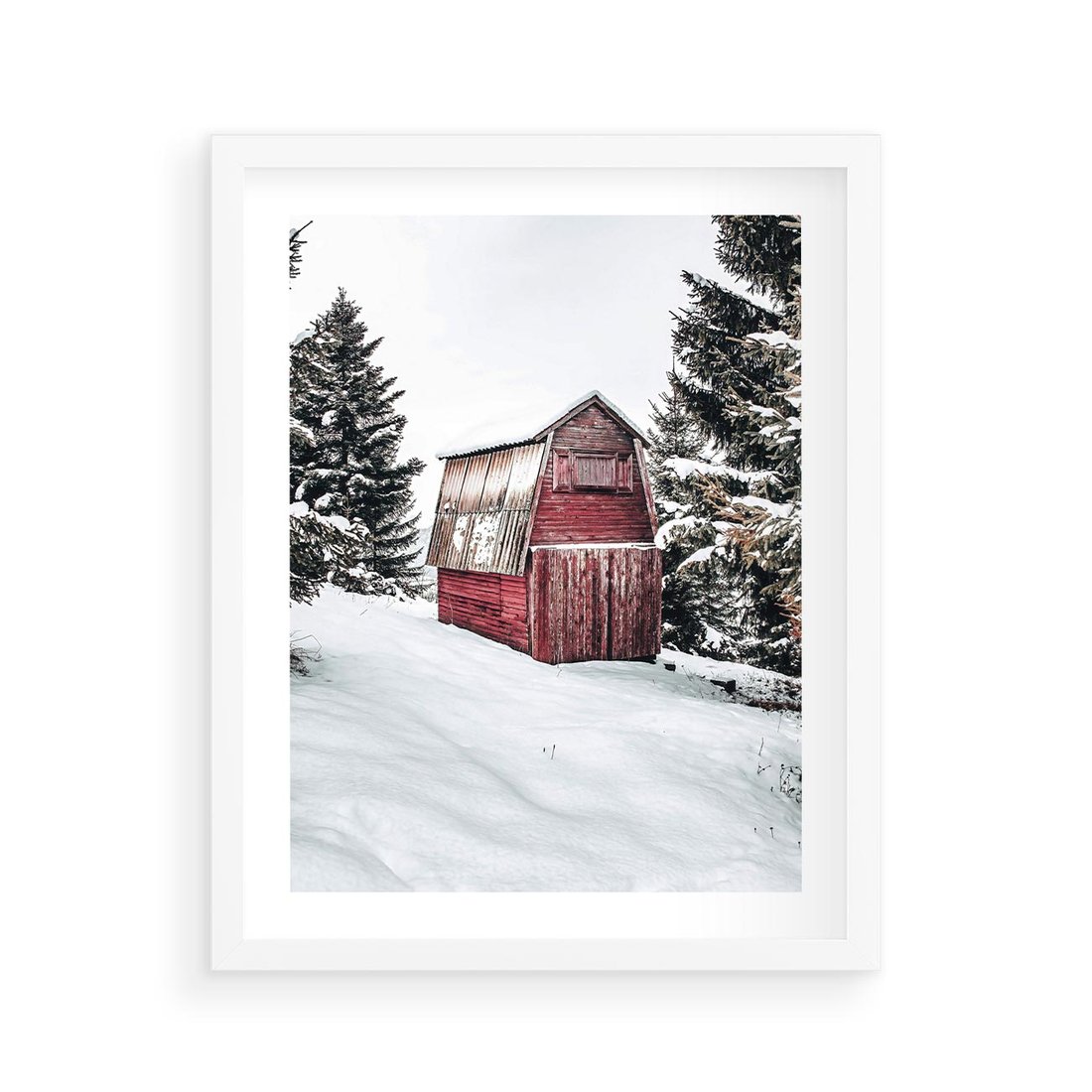 Plakat w ramie 40x50 - Domek w Śnieżnych Górach - domek, góry - rama biała