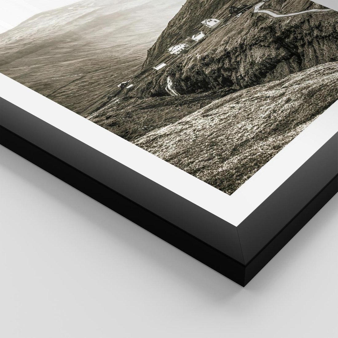 Plakat w ramie 40x50 - Domki w Górach - czarno biała fotografia, górski pejzaż - rama czarna