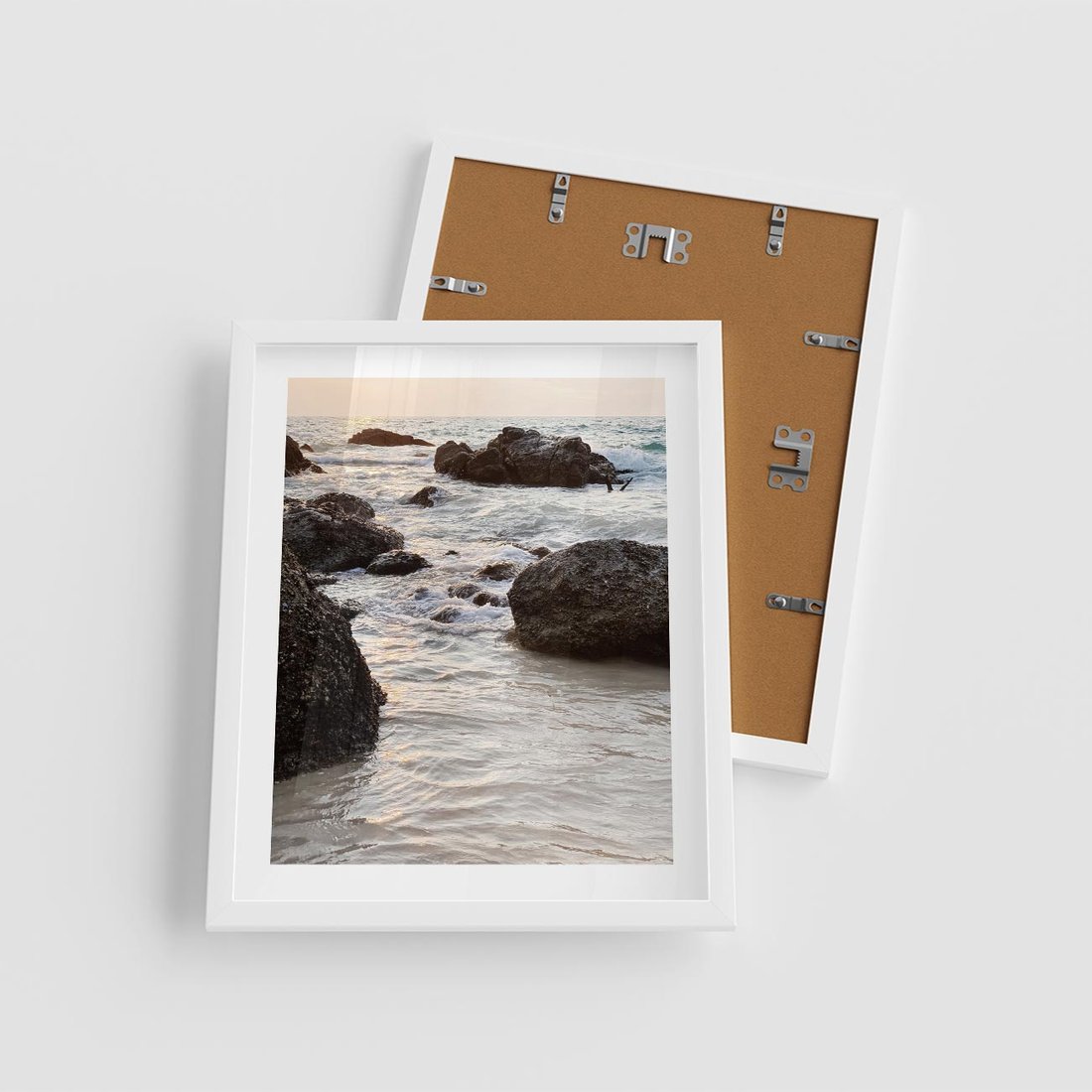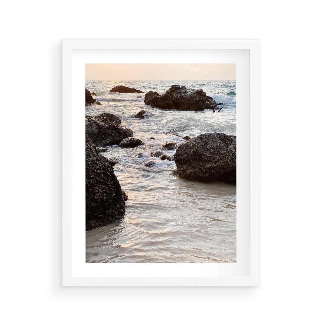Plakat w ramie 40x50 - Dramatyczna Sceneria: Morze i Skały nad Brzegiem - fale, morze - rama biała