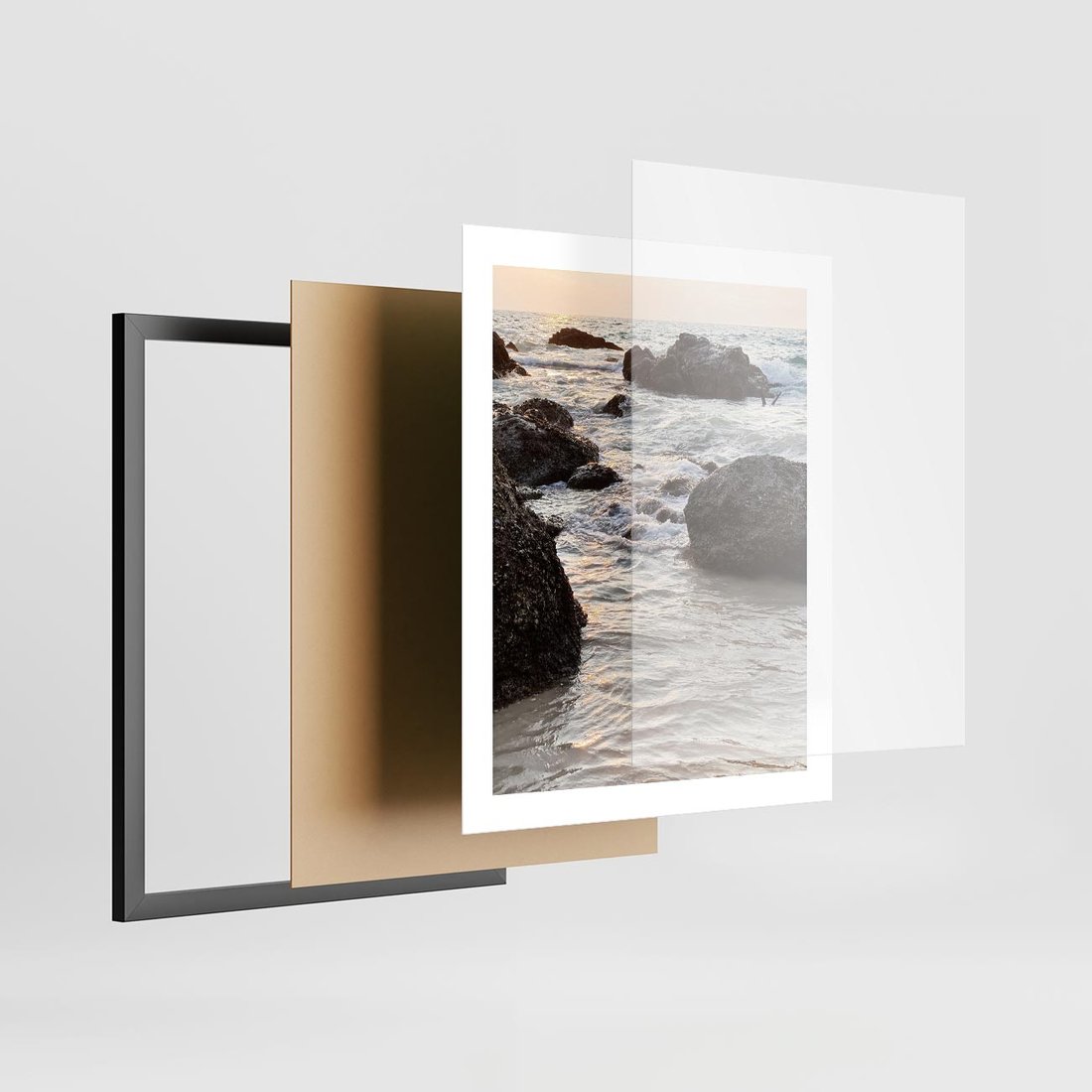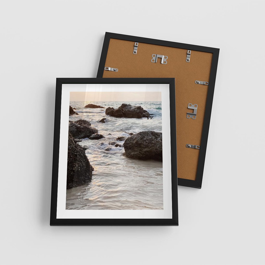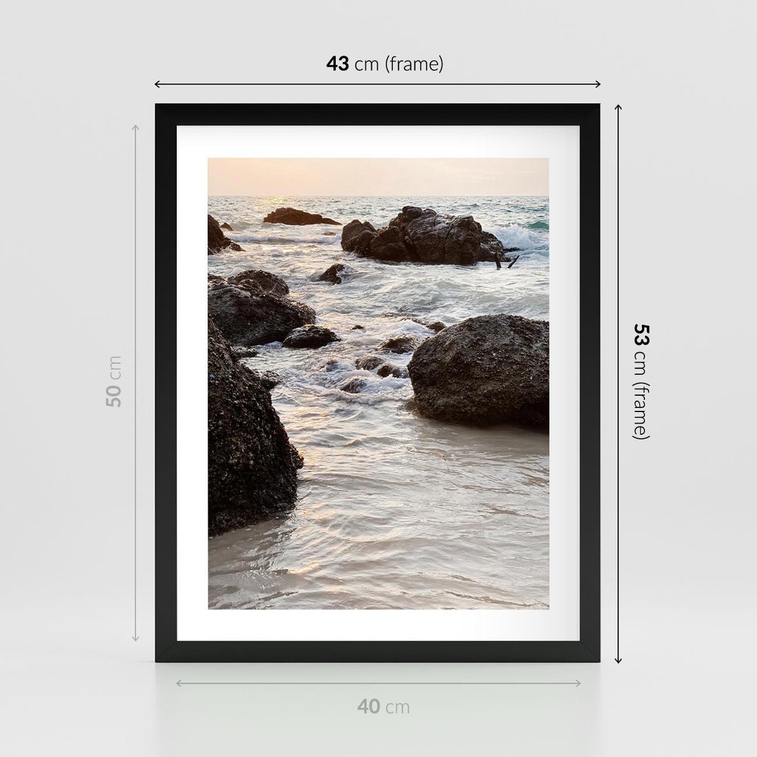 - Plakat w ramie 40x50 - Dramatyczna Sceneria: Morze i Skały nad Brzegiem