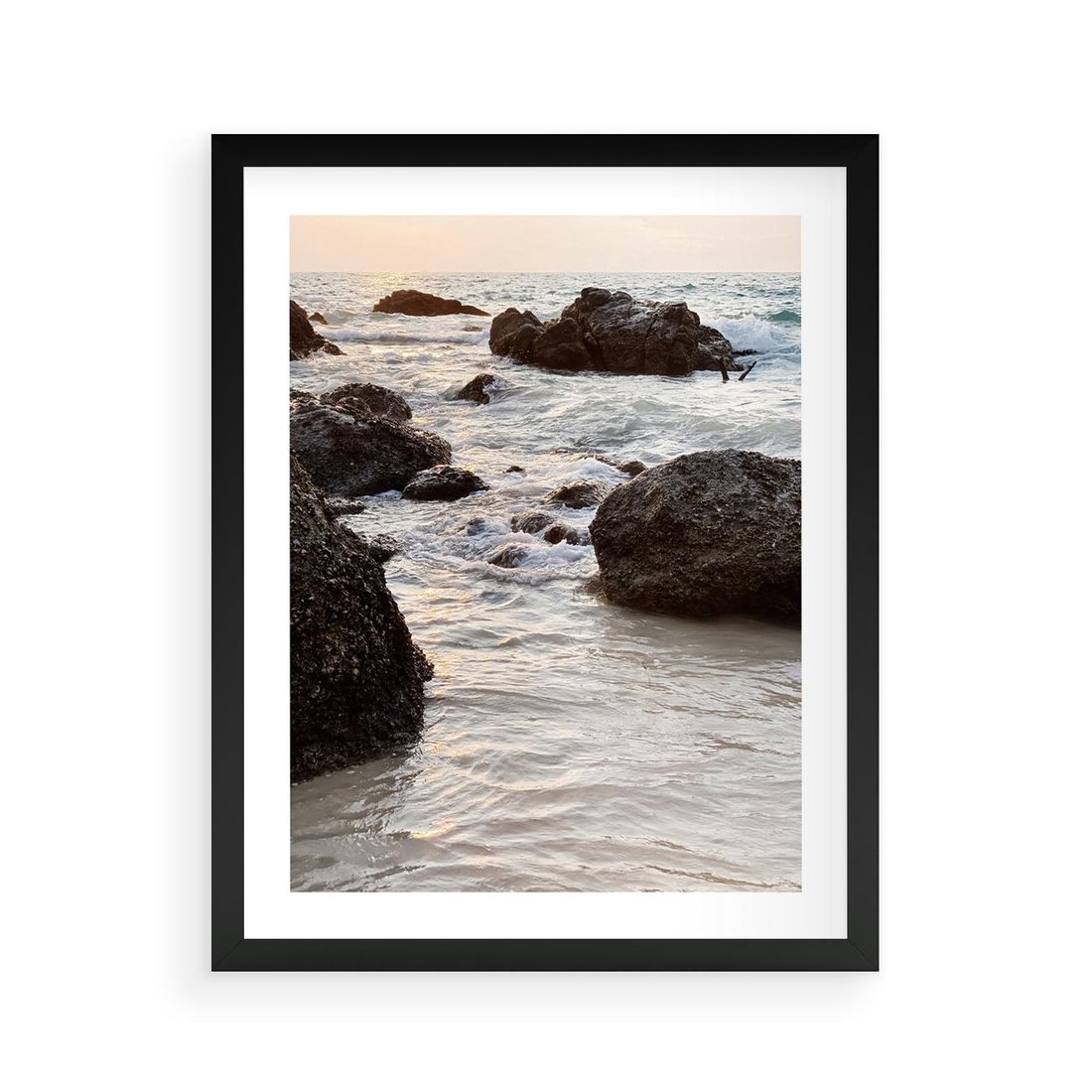 Plakat w ramie 40x50 - Dramatyczna Sceneria: Morze i Skały nad Brzegiem - fale, morze - rama czarna