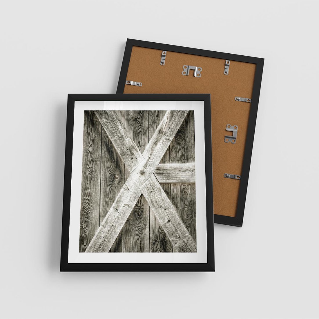 Plakat w ramie 40x50 - Drewniane Drzwi do Stodoły - stare drzwi do stodoły, drewniane - rama czarna
