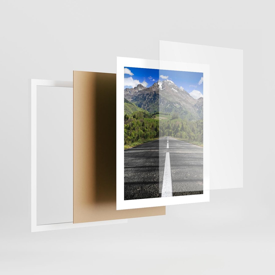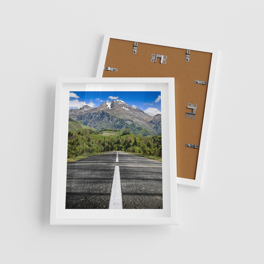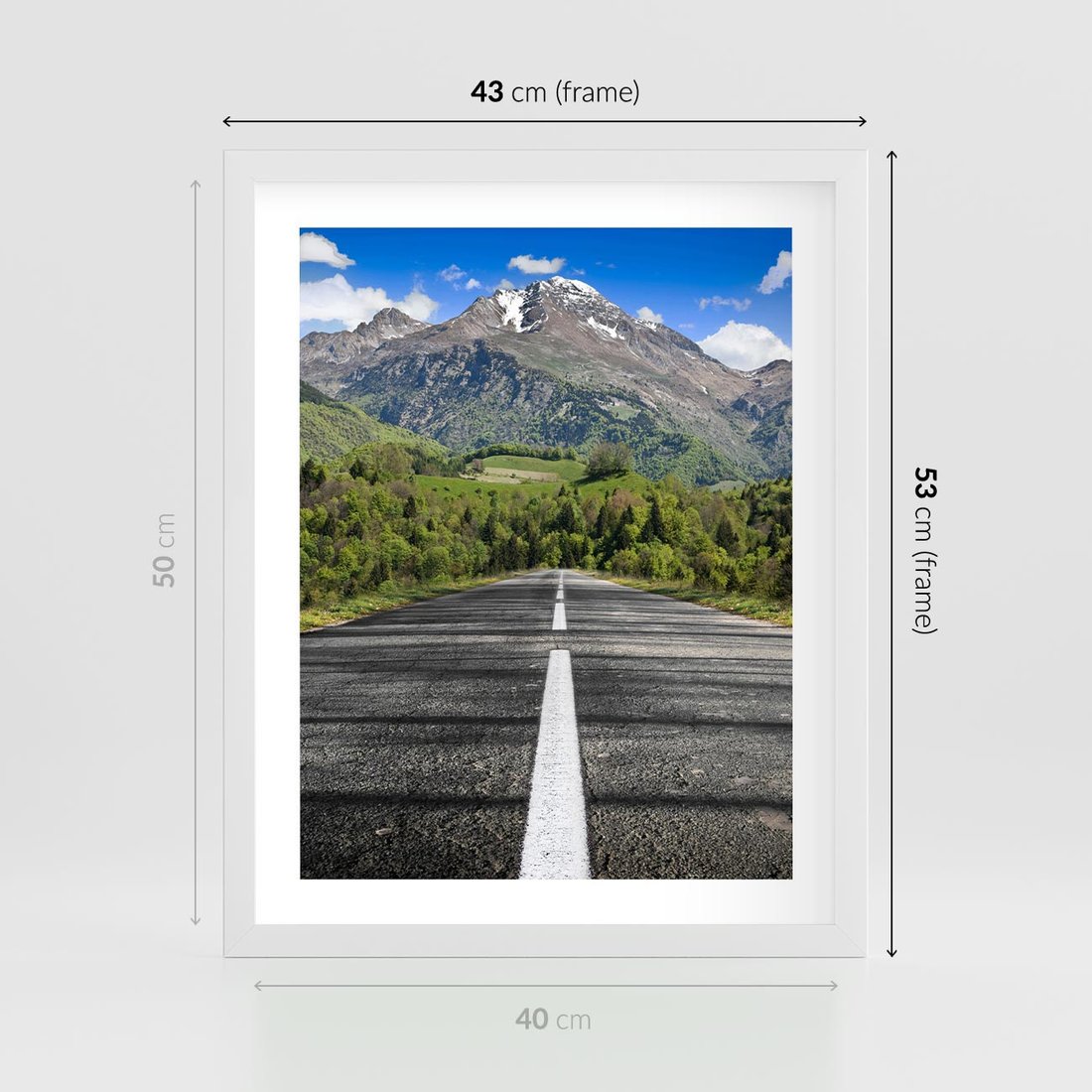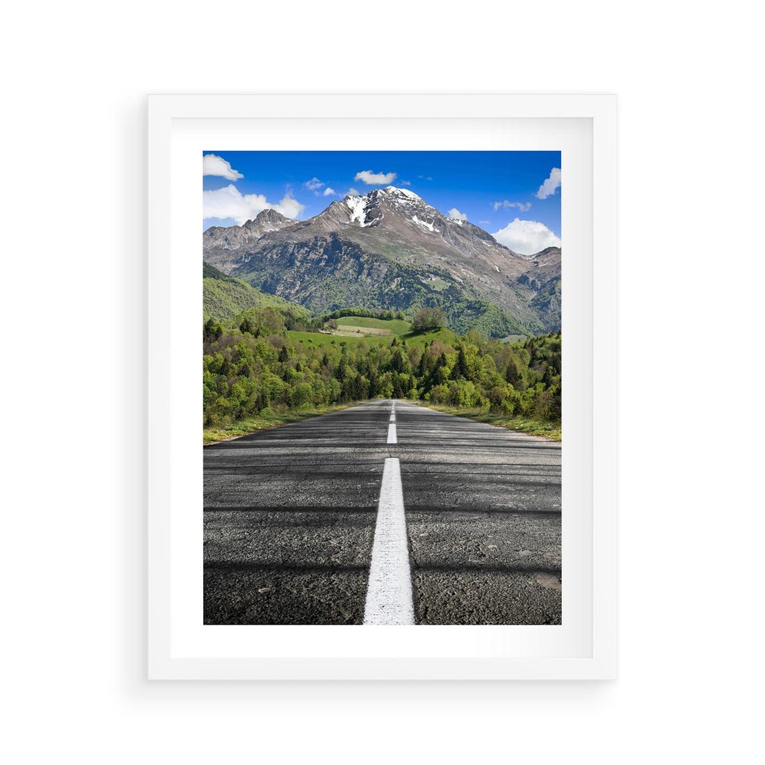 Plakat w ramie 40x50 - Droga przez góry: podróż do przygody - droga, góry - rama biała