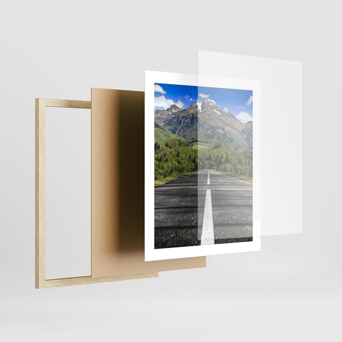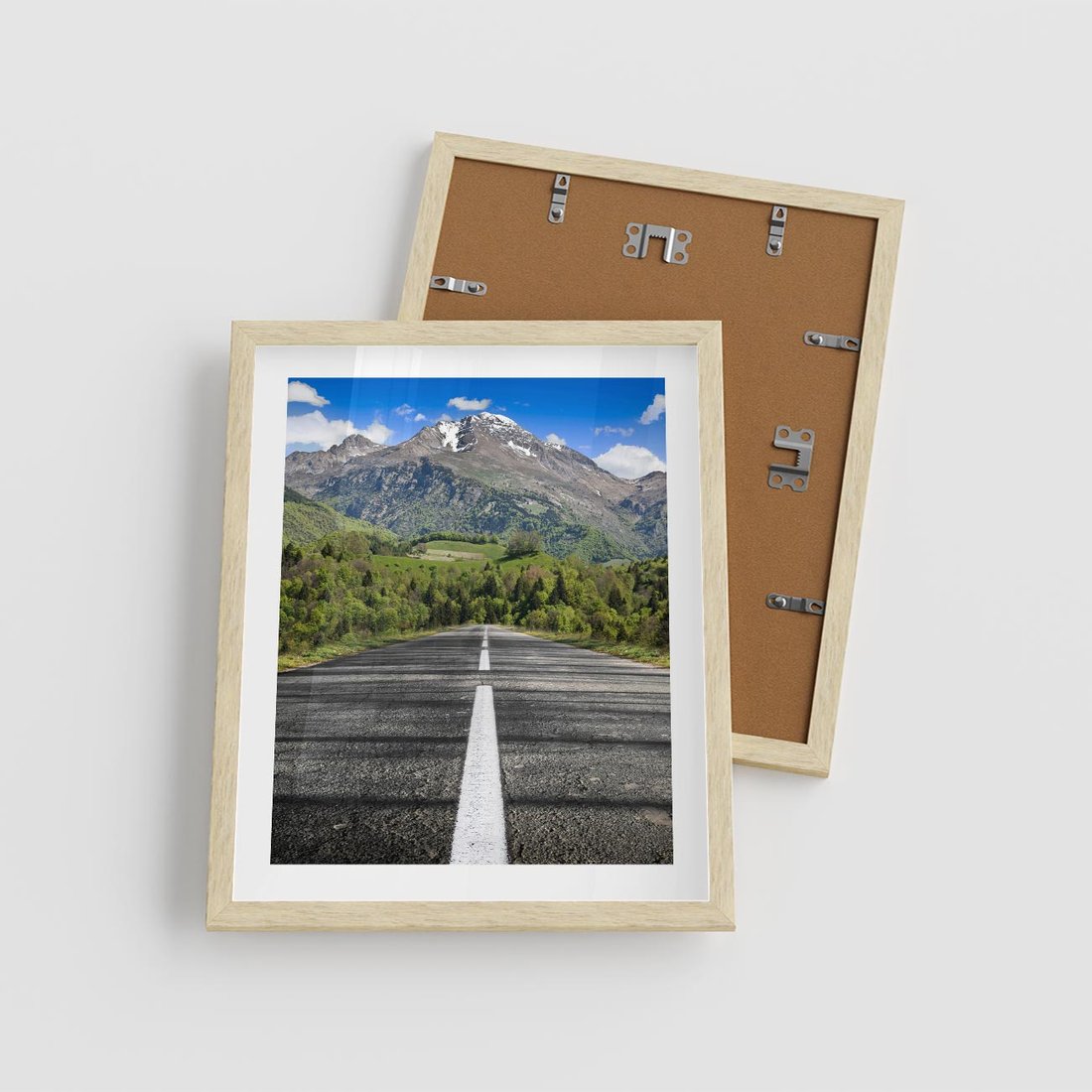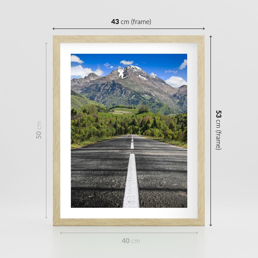 Plakat w ramie 40x50 - Droga przez góry: podróż do przygody - droga, góry - rama drewno