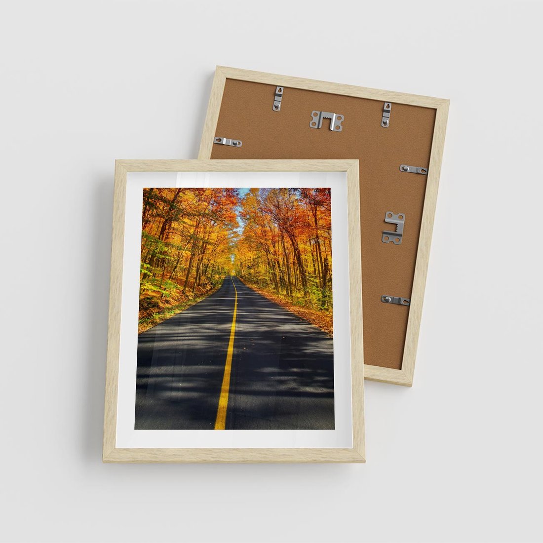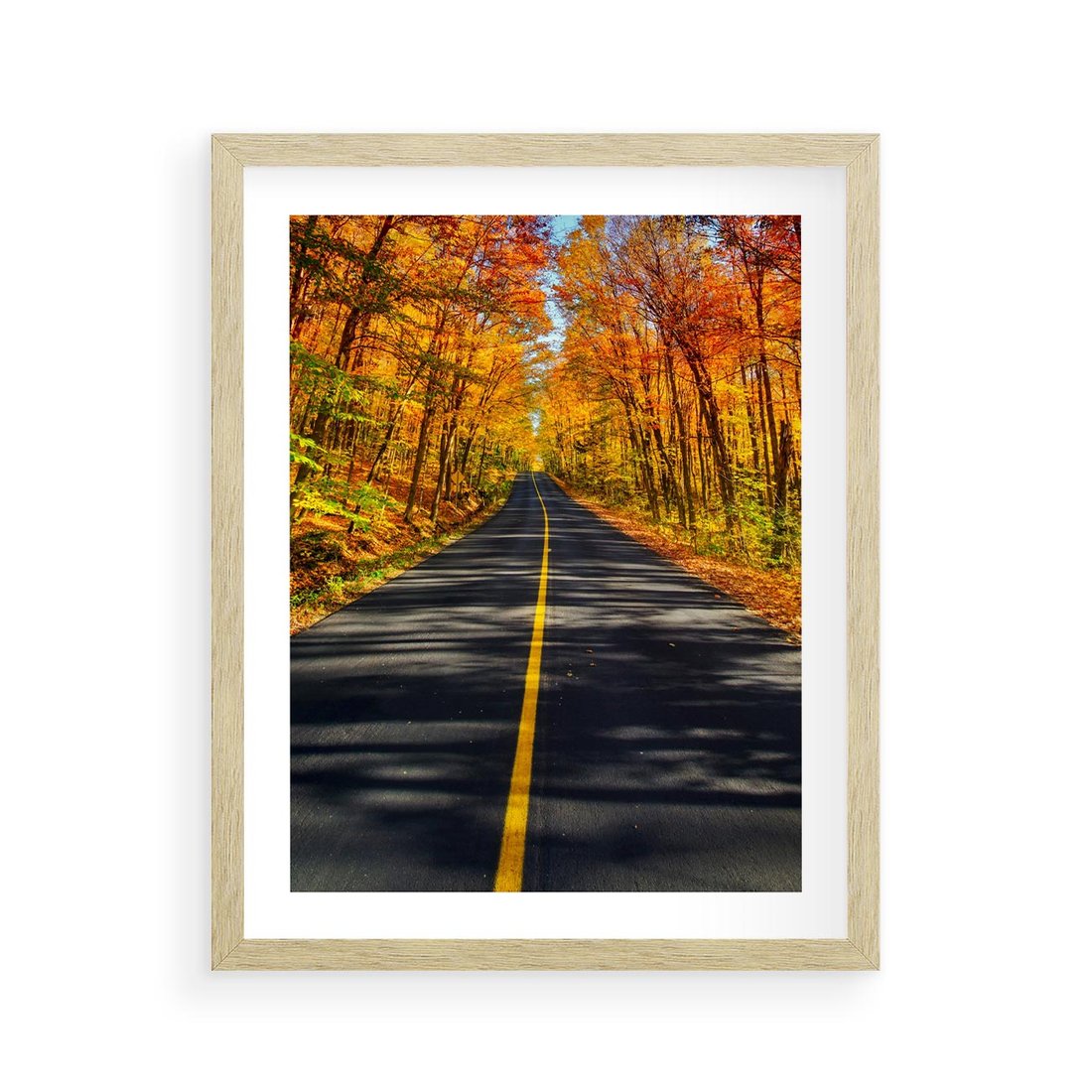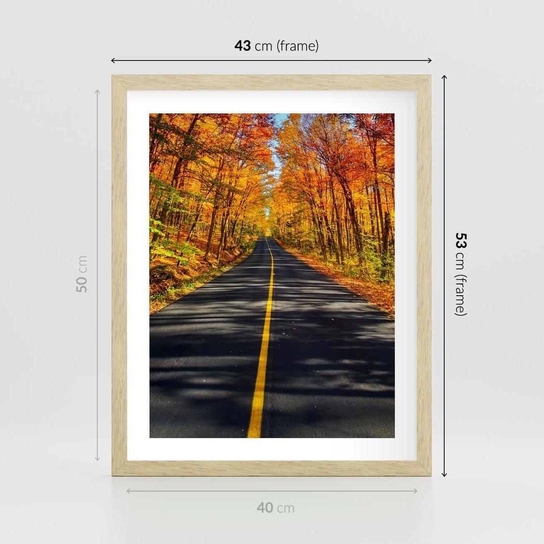 Plakat w ramie 40x50 - Droga przez jesienny las - droga, las - rama drewno