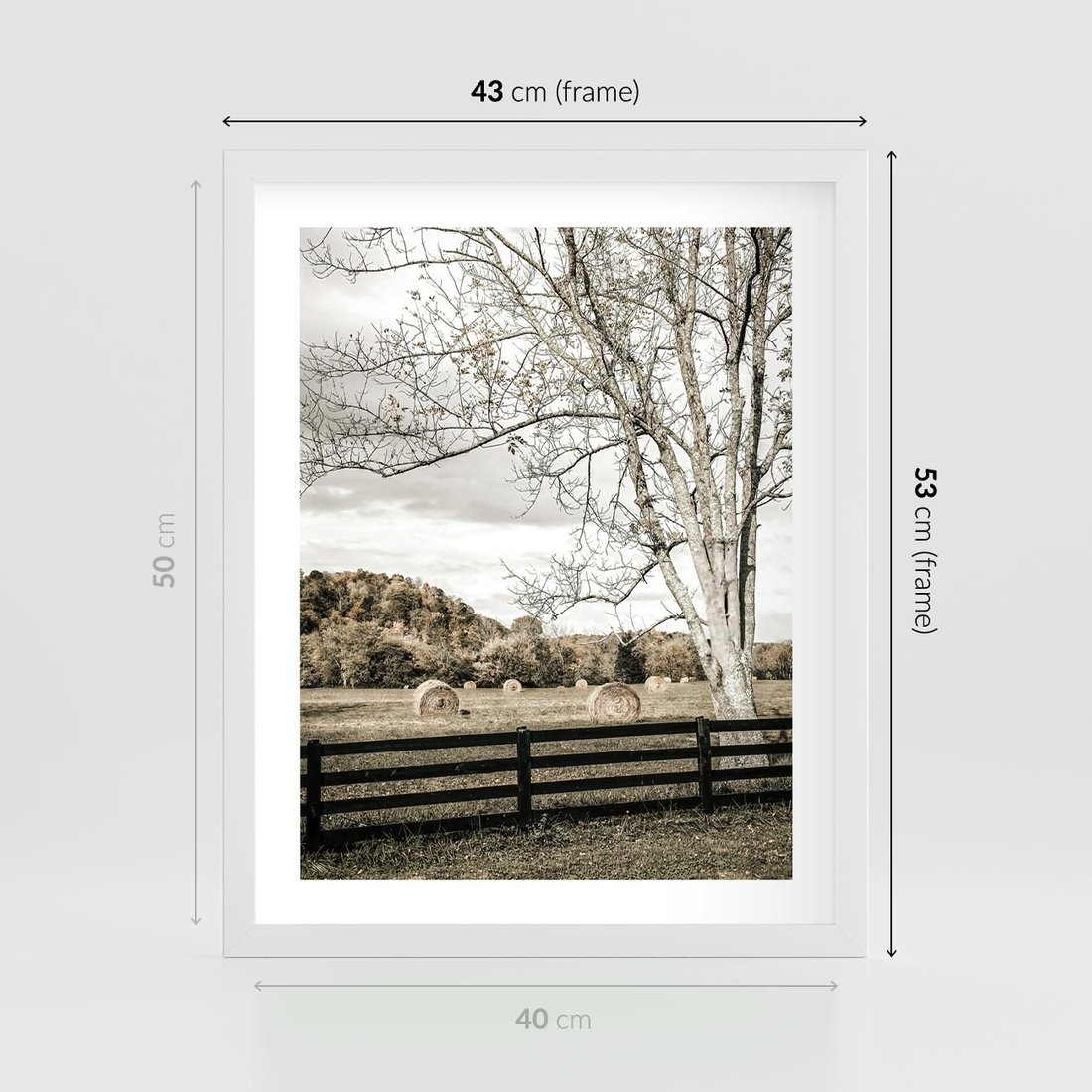 - Plakat w ramie 40x50 - Drzewa i Snopki Siana