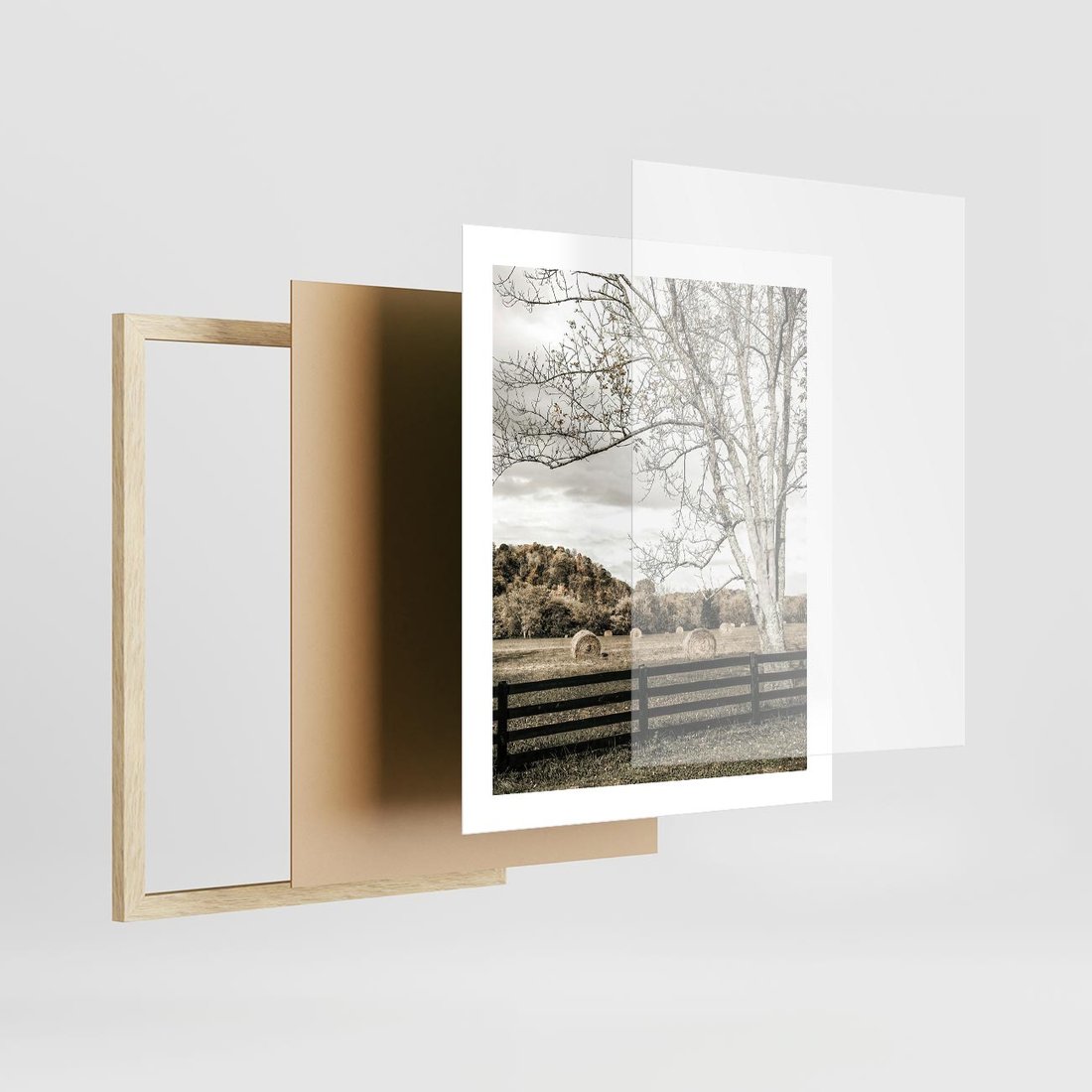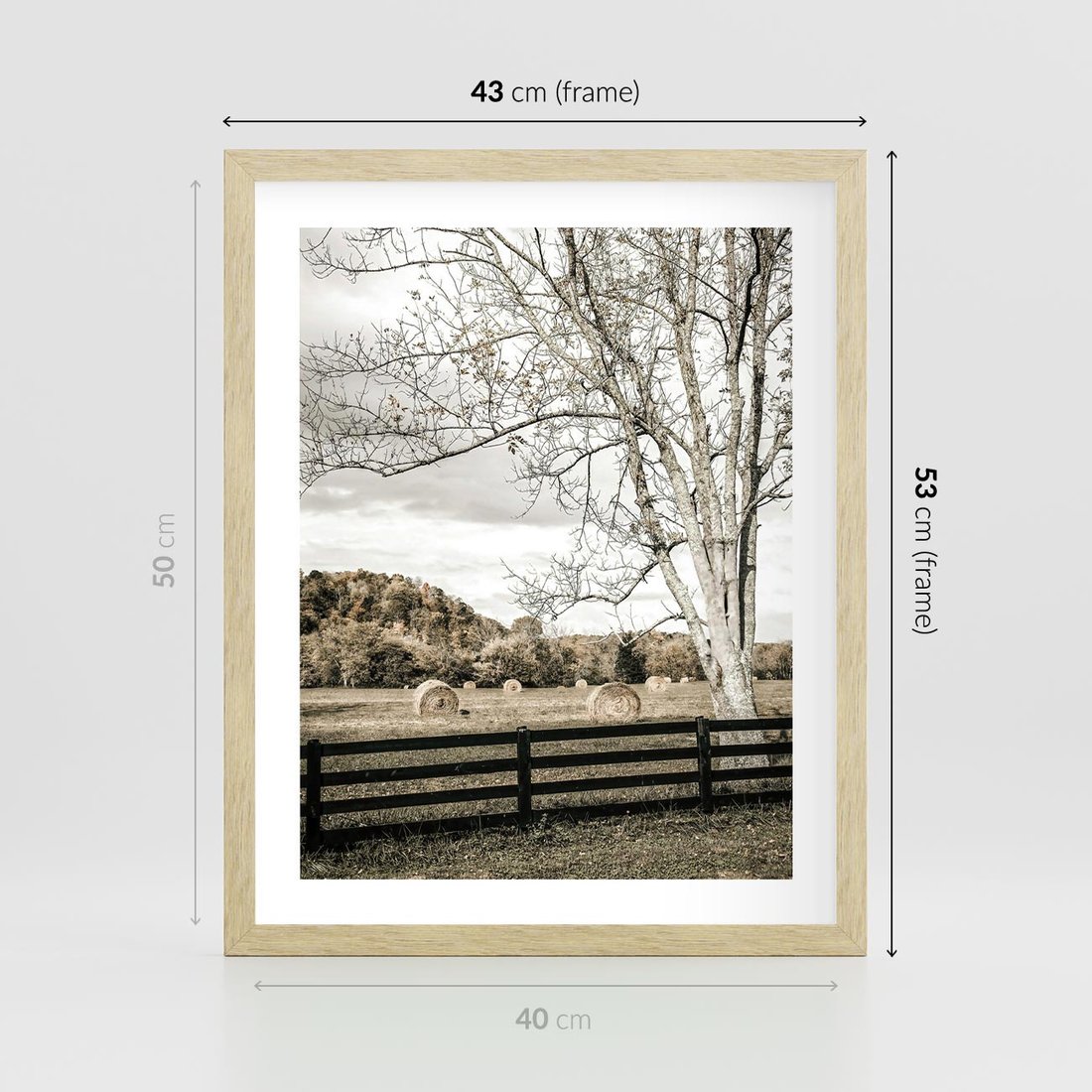- Plakat w ramie 40x50 - Drzewa i Snopki Siana