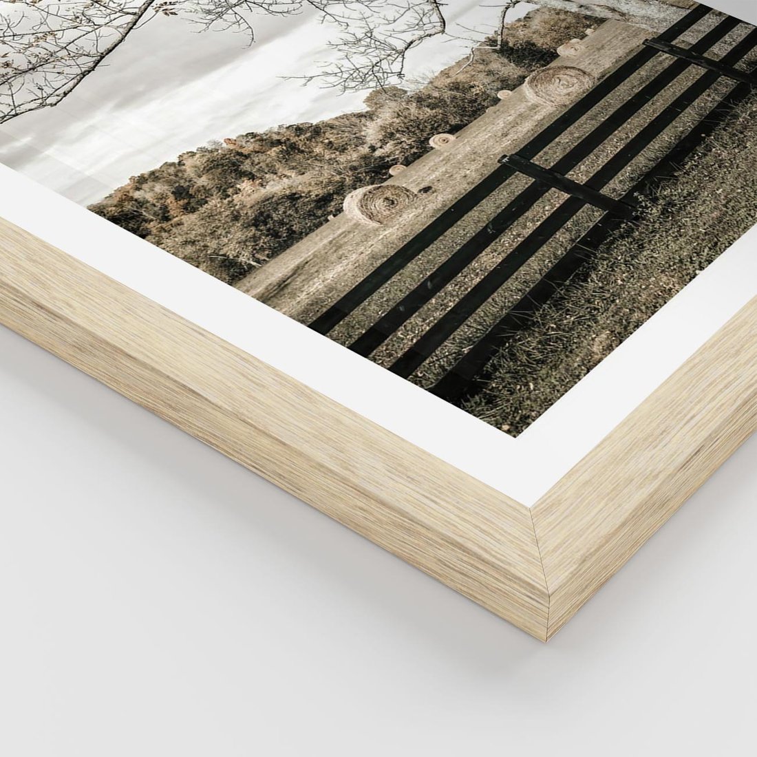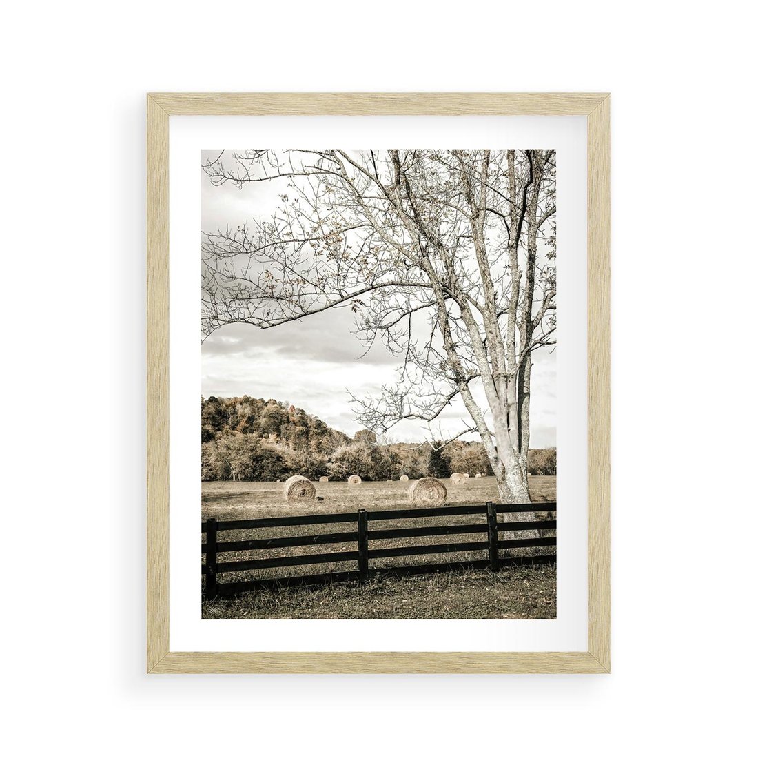Plakat w ramie 40x50 - Drzewa i Snopki Siana - farma, drzewa - rama drewno