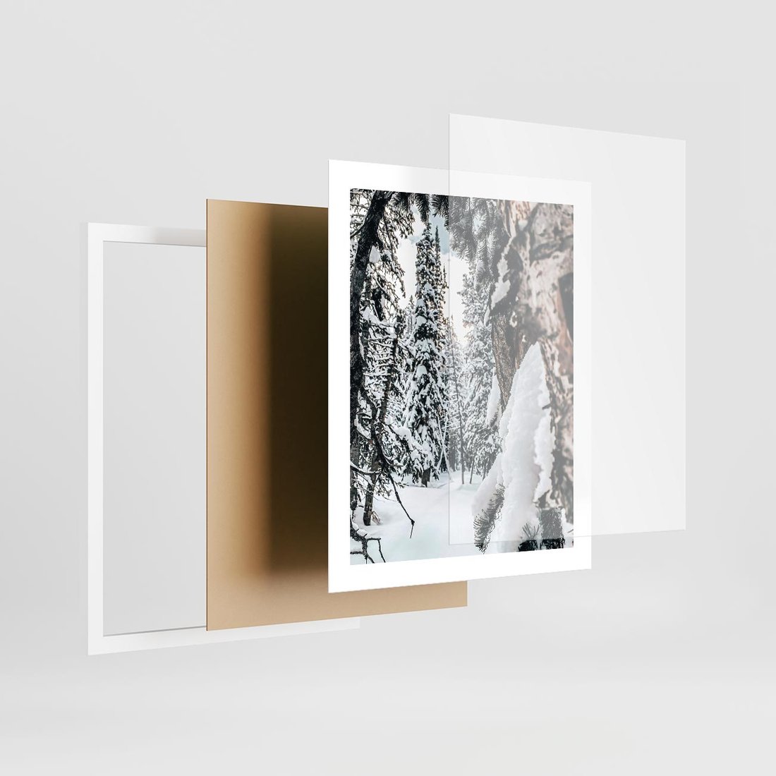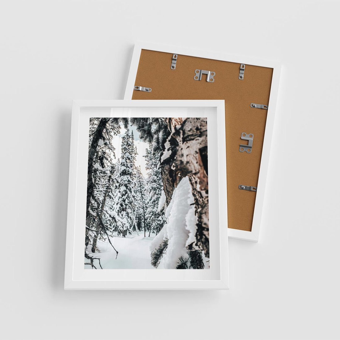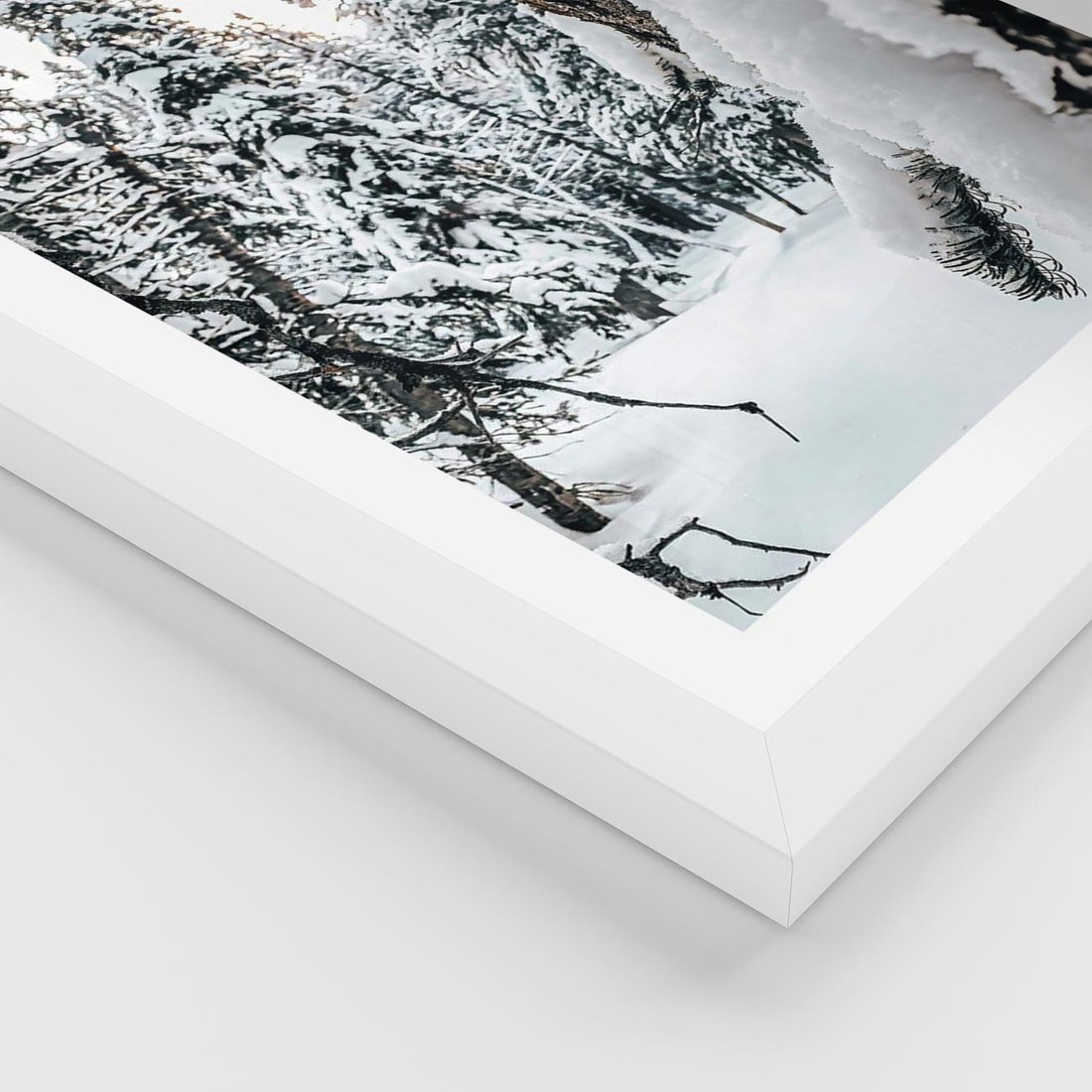 Plakat w ramie 40x50 - Drzewa pod Śniegiem - zima las, drzewa pod śniegiem - rama biała