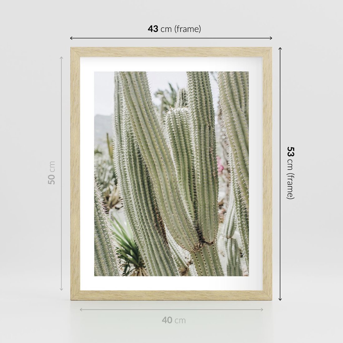 Plakat w ramie 40x50 - Duże Kaktusy w Pejzażu - kaktus, duże kaktusy na pustyni - rama drewno
