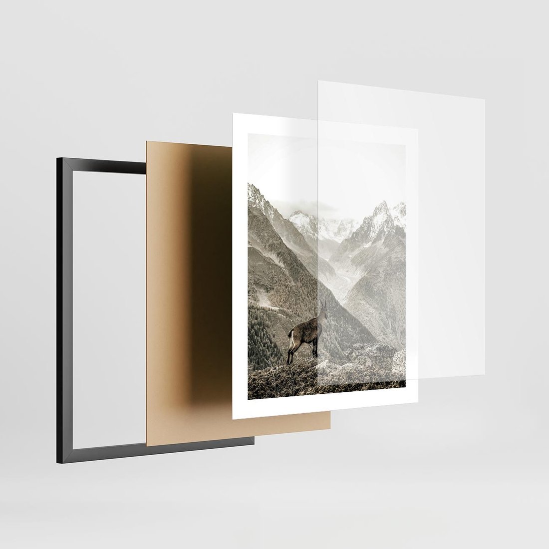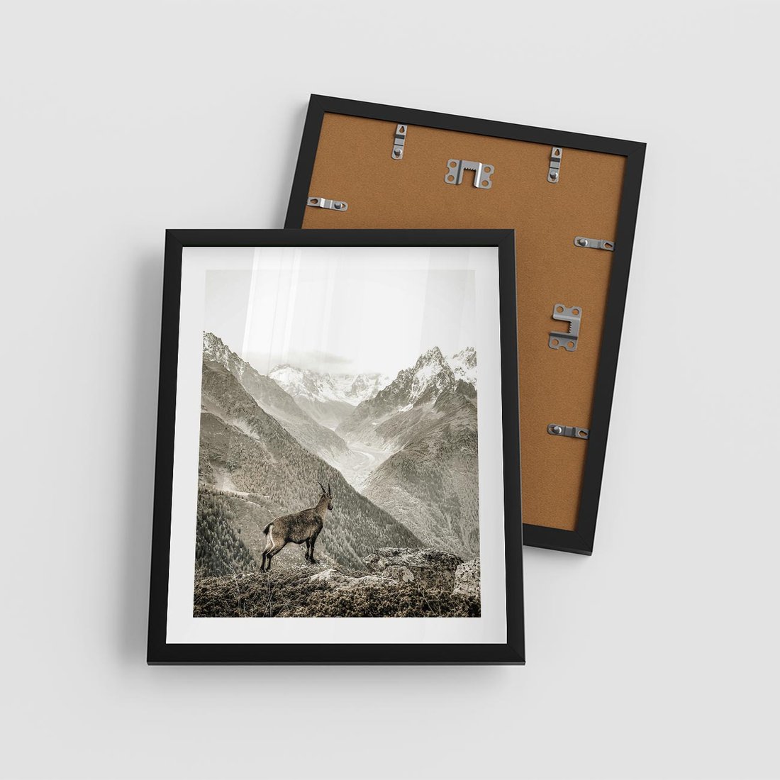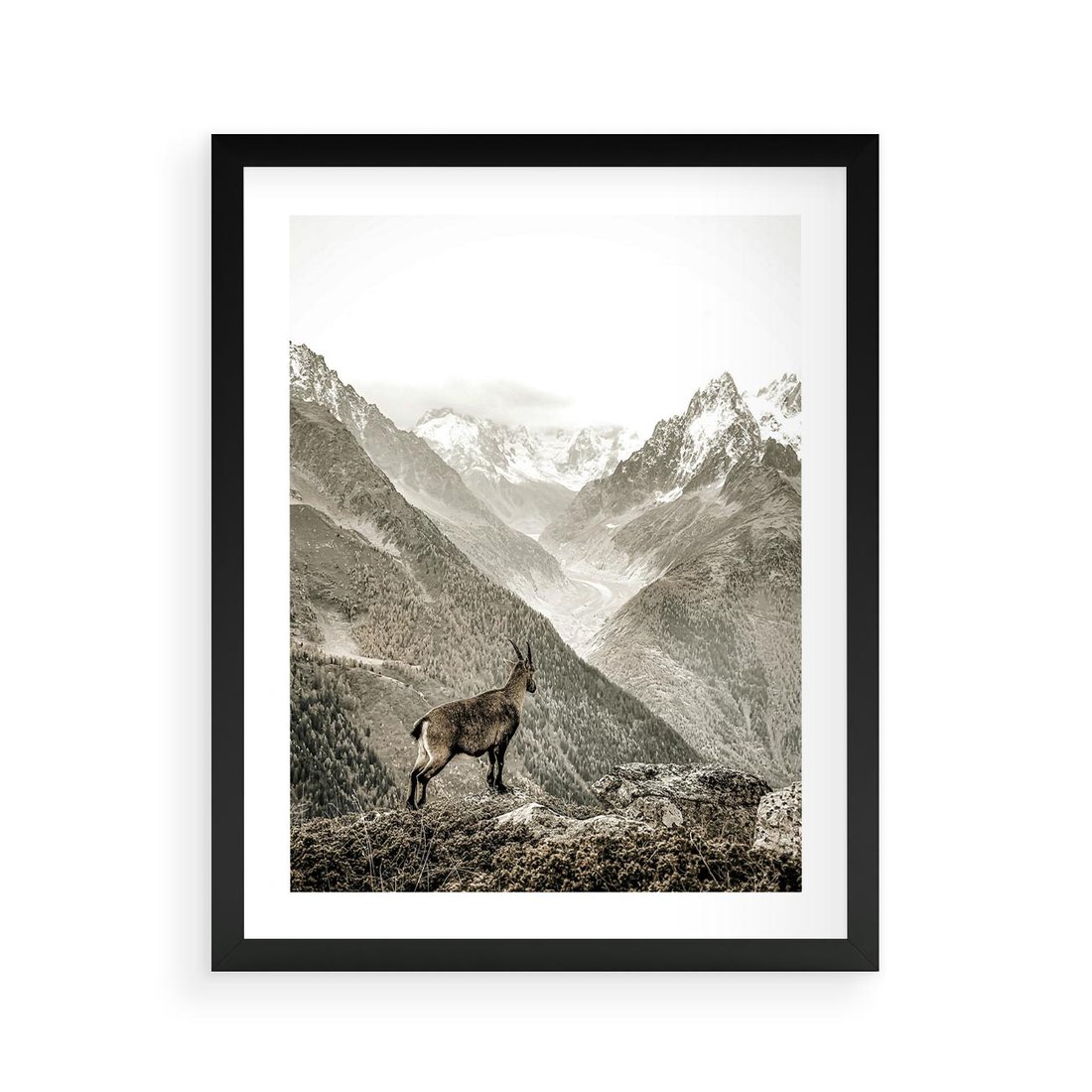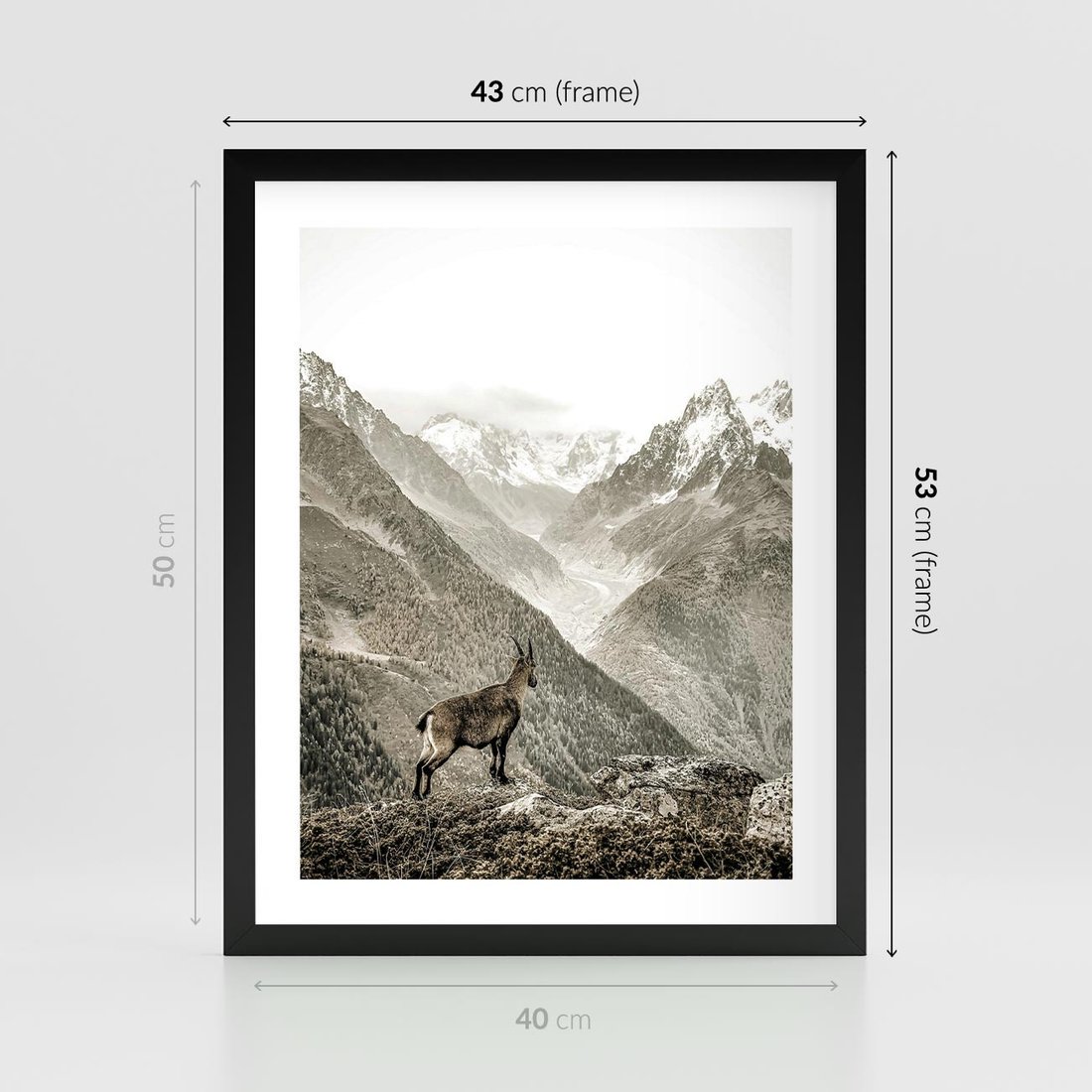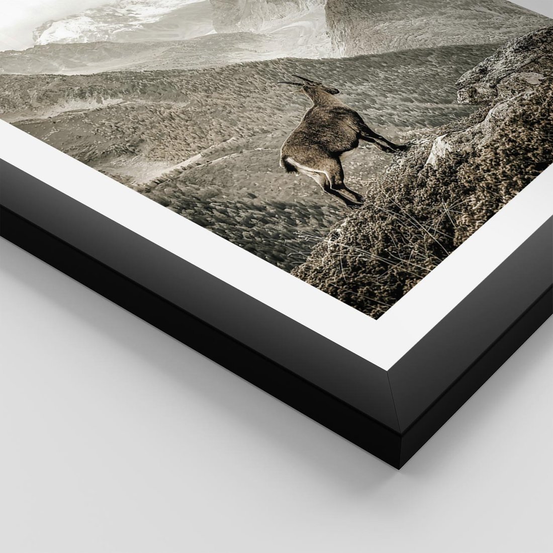 Plakat w ramie 40x50 - Dzikie Piękno: Kozica w Malowniczym Górskim Scenerii - kozica, góry - rama czarna