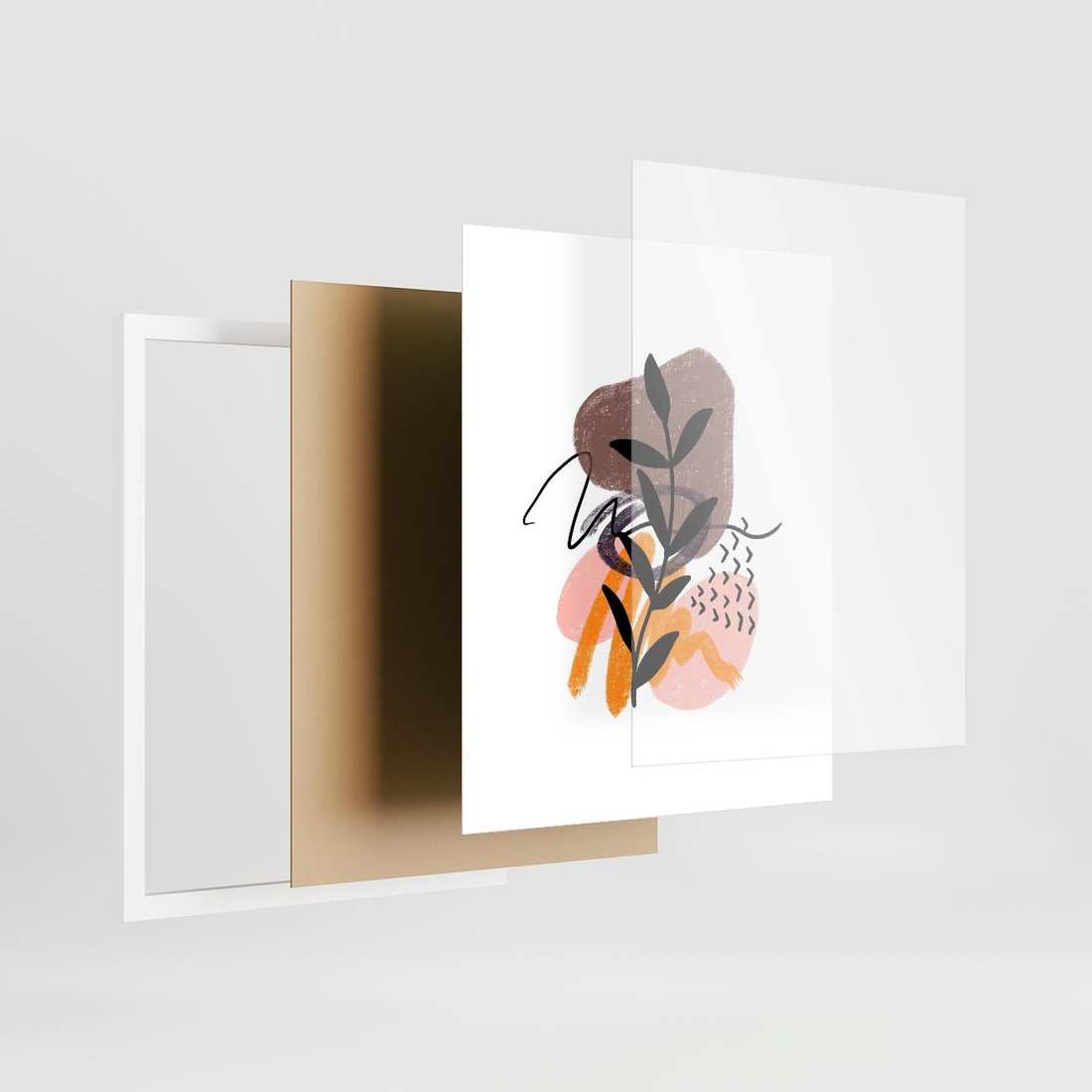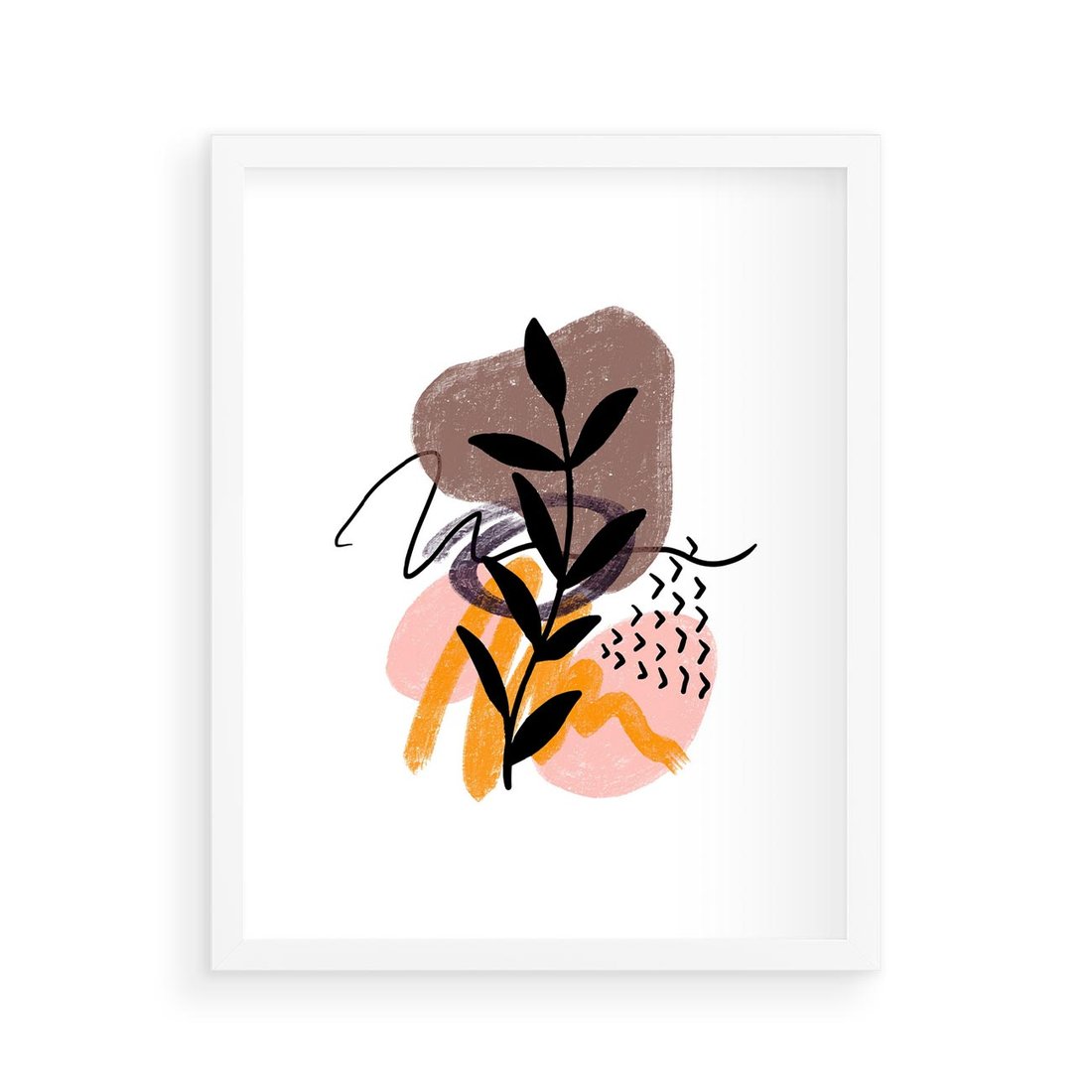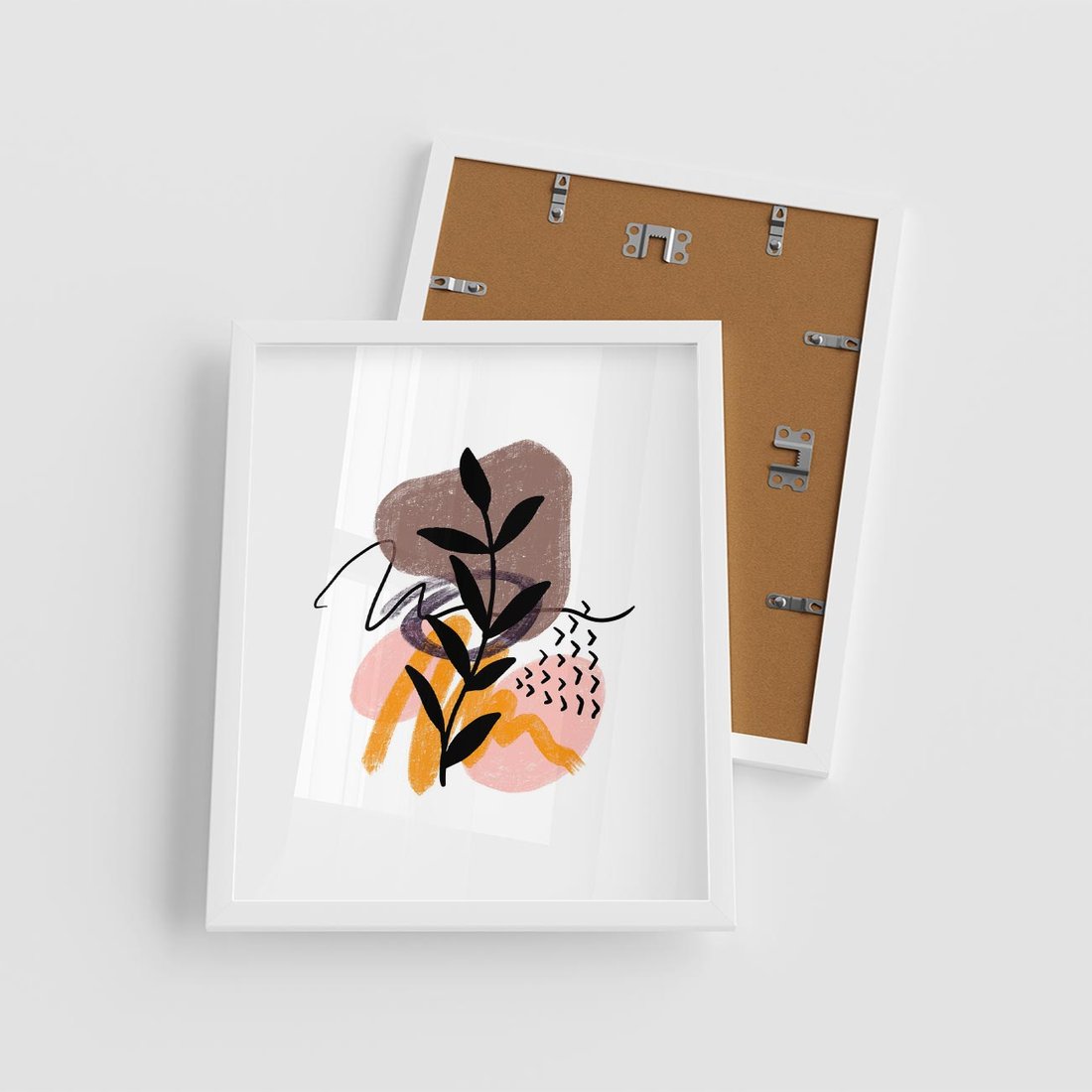 Plakat w ramie 40x50 - Echa Kształtującej się Wyobraźni - abstrakcyjna sztuka, liść gałązka - rama biała