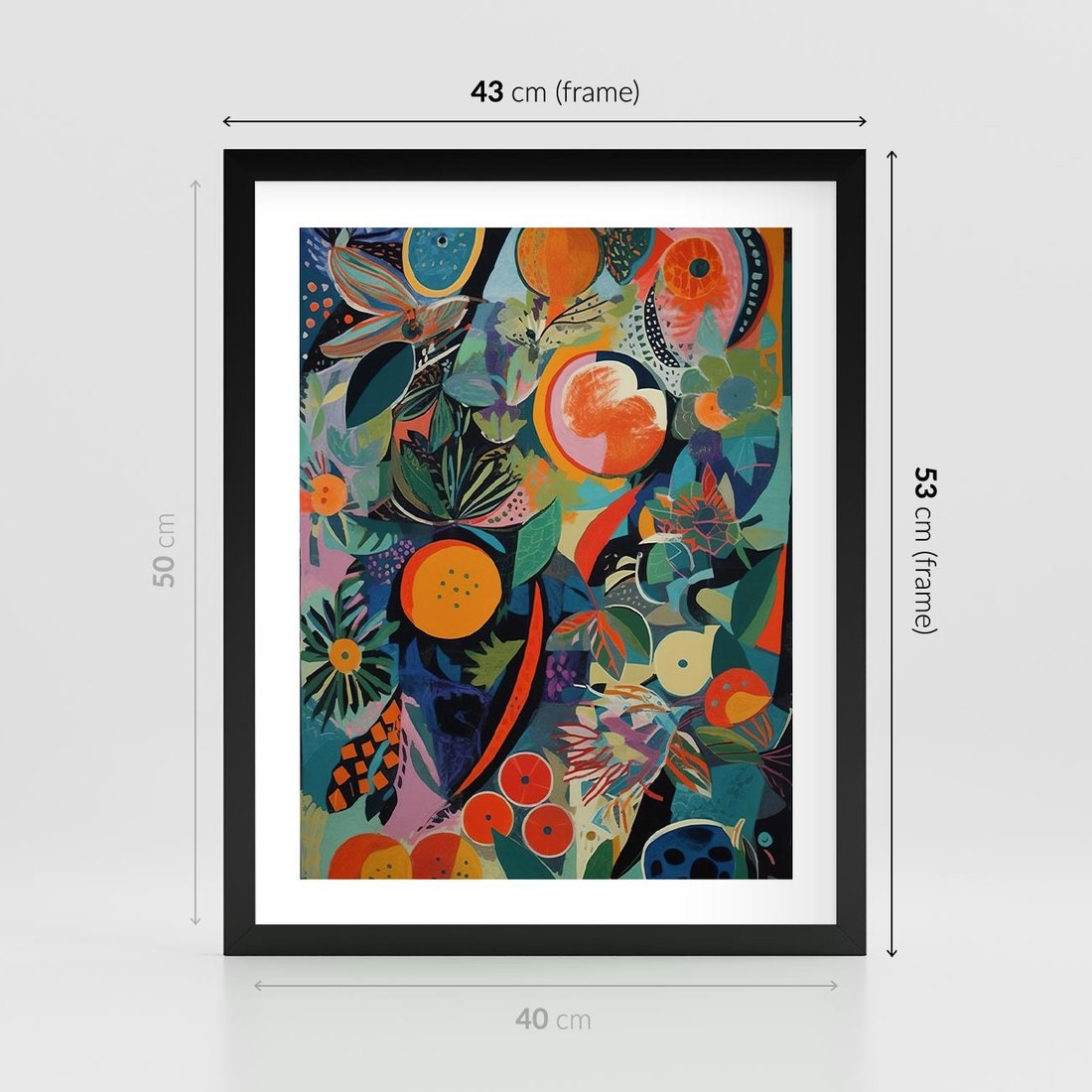 Ten abstrakcyjny obraz olejny, nawiązujący do stylu Picassa, eksploruje bogactwo kolorów i form owoców. Żywe barwy oraz swobodne linie tworzą dynamiczną kompozycję, oddającą radość i energię natury.