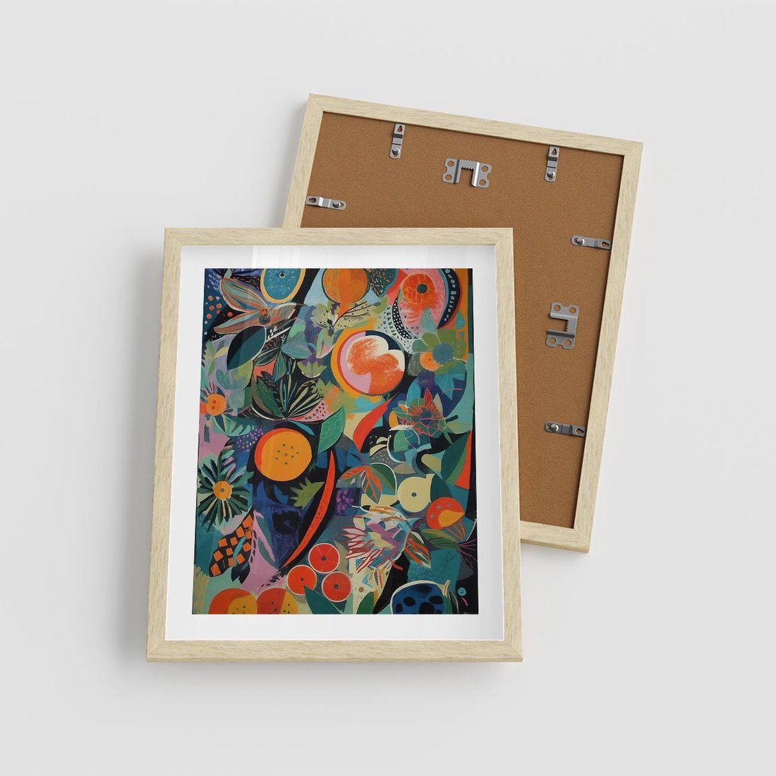 Ten abstrakcyjny obraz olejny, nawiązujący do stylu Picassa, eksploruje bogactwo kolorów i form owoców. Żywe barwy oraz swobodne linie tworzą dynamiczną kompozycję, oddającą radość i energię natury.