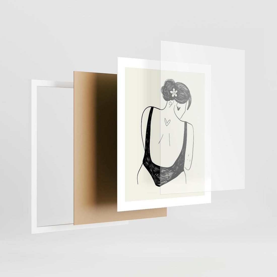 Ten nowoczesny rysunek uchwycił esencję piękna kobiecego ciała, prezentując delikatną harmonię między kobietą a sztuką w formie wyjątkowej kompozycji.
