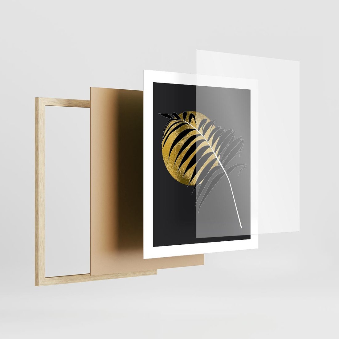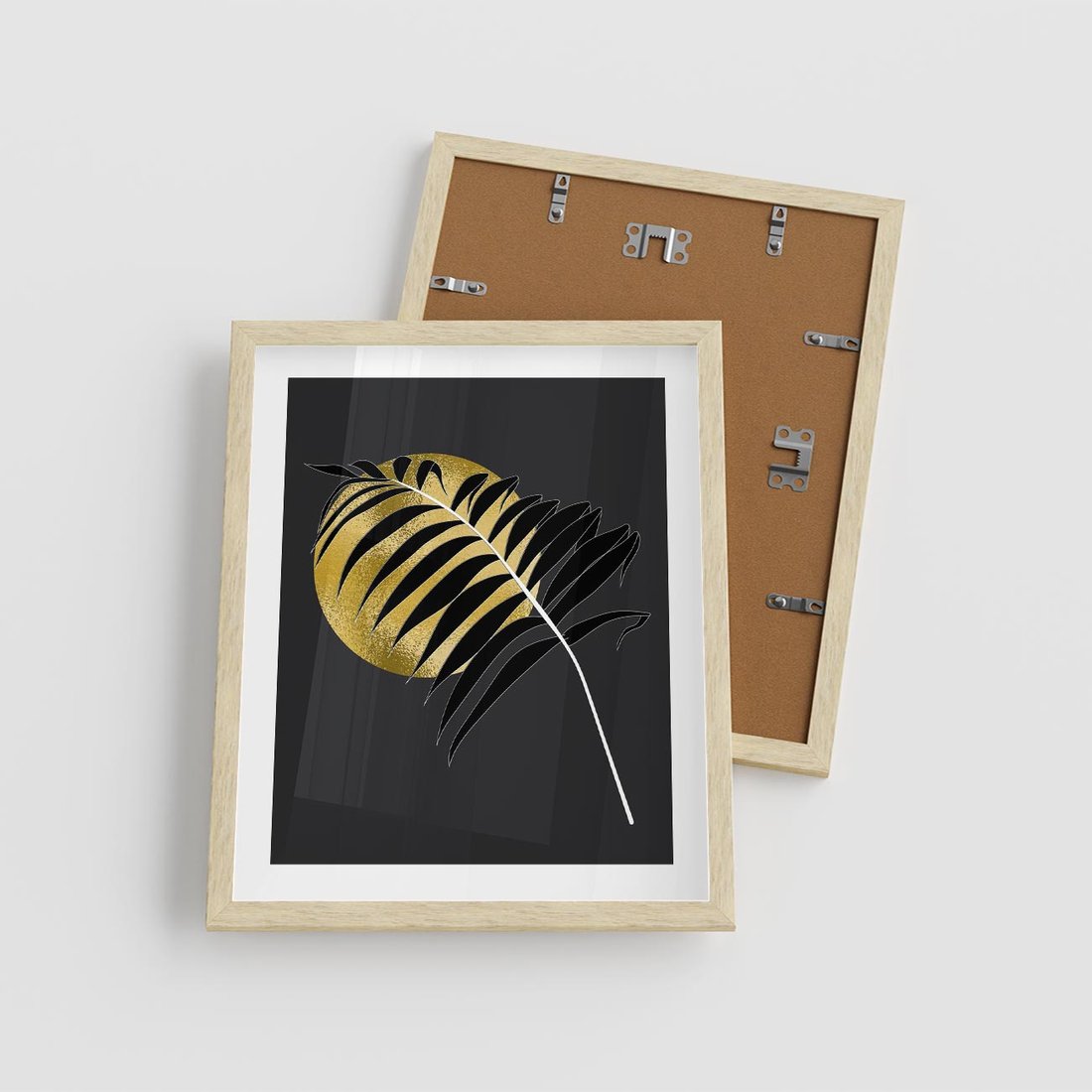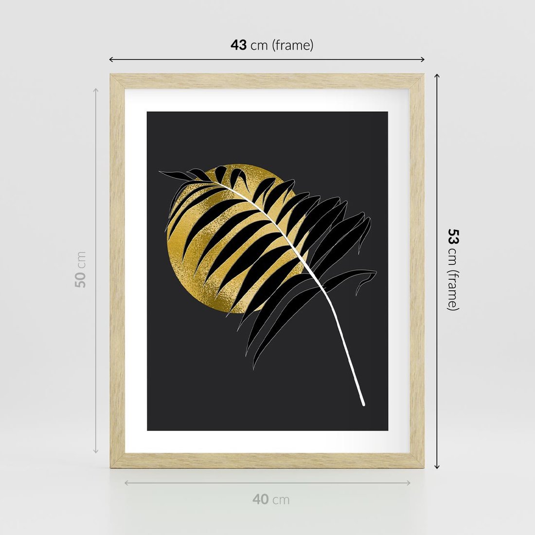 Plakat w ramie 40x50 - Egzotyczna Elegancja - palma, na czarnym tle - rama drewno