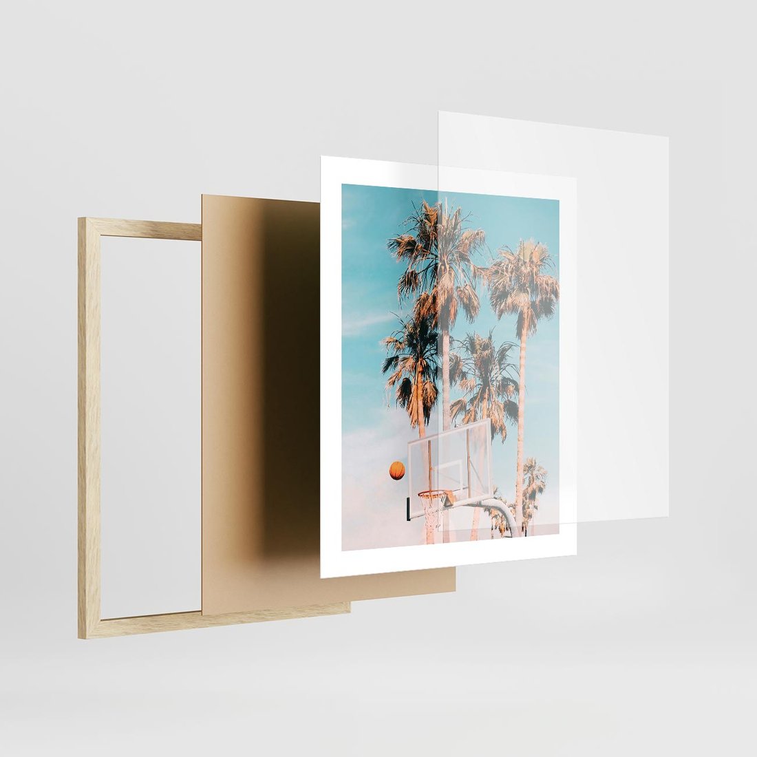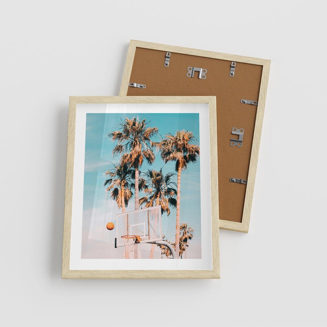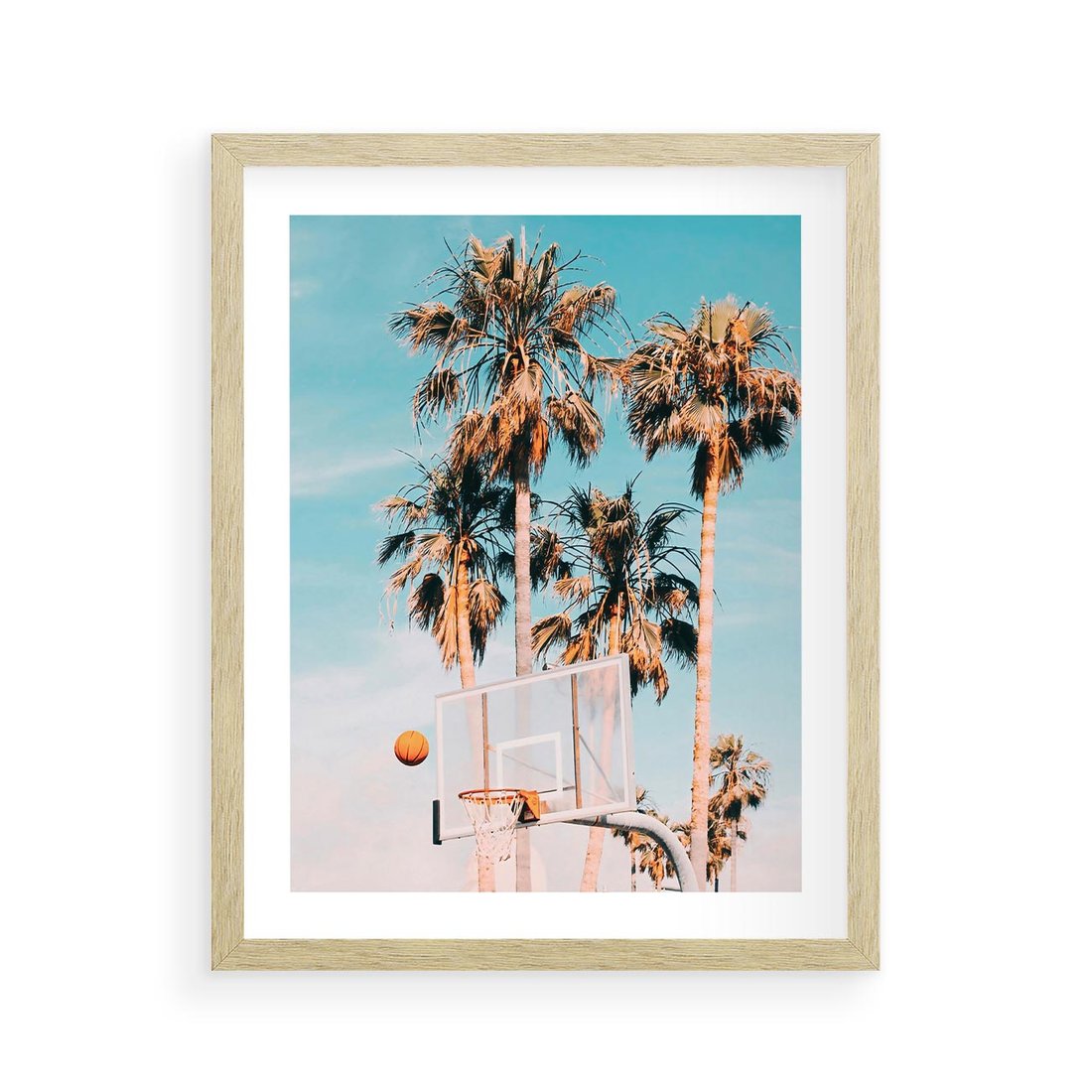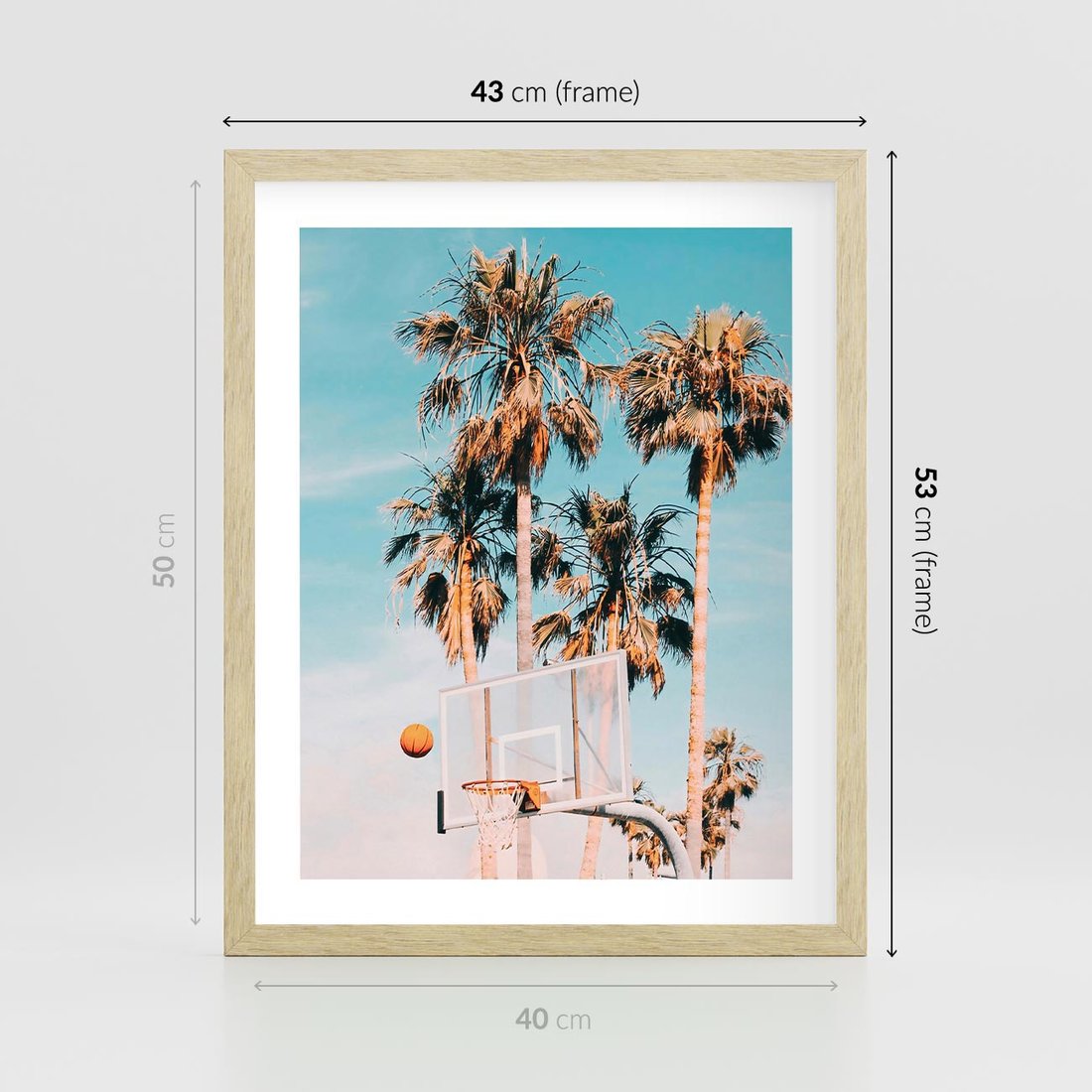 Plakat w ramie 40x50 - Egzotyczna Koszykówka - palmy na tle nieba, koszykówka - rama drewno
