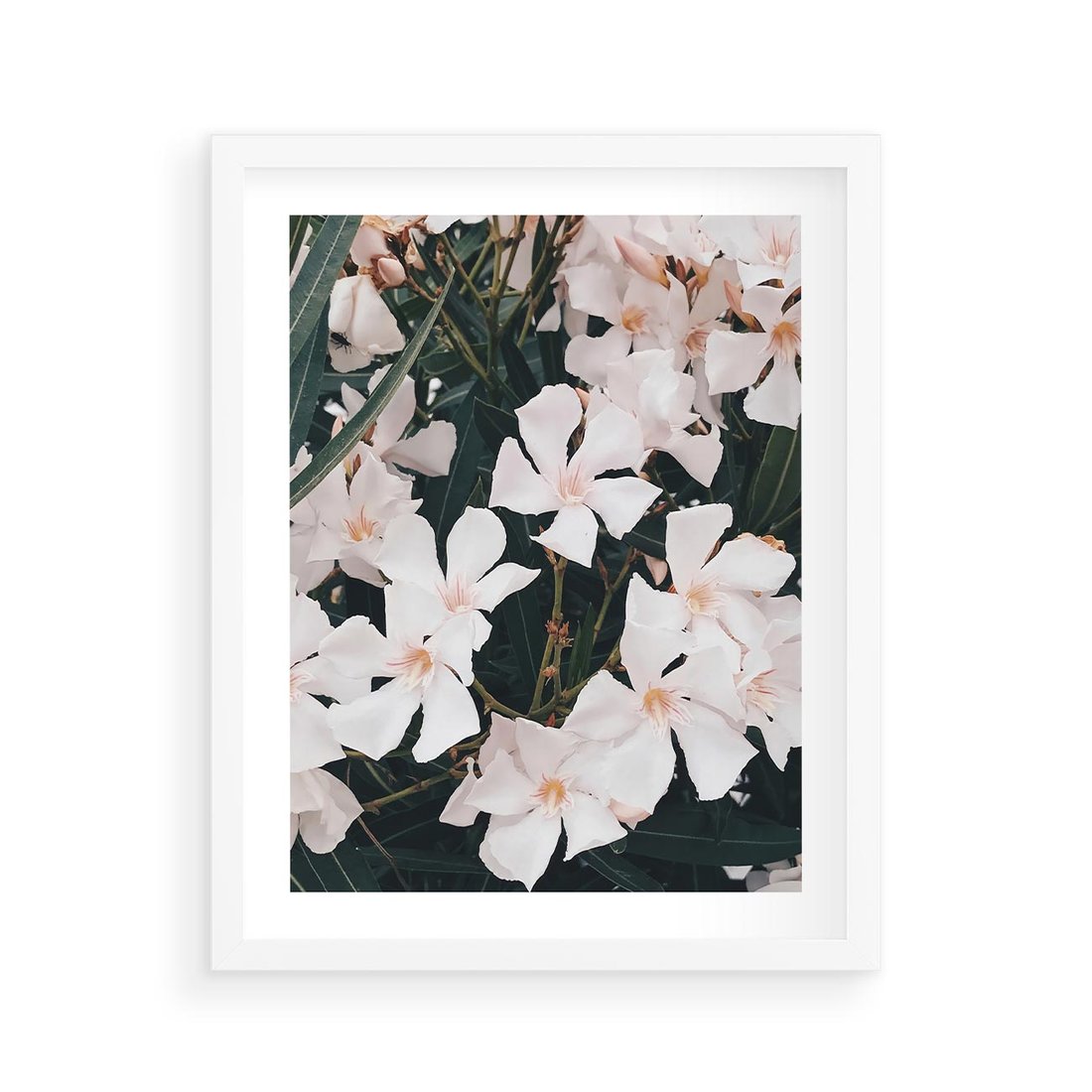 Plakat w ramie 40x50 - Egzotyczna Uroda - białe kwiaty, tropikalne kwiaty - rama biała