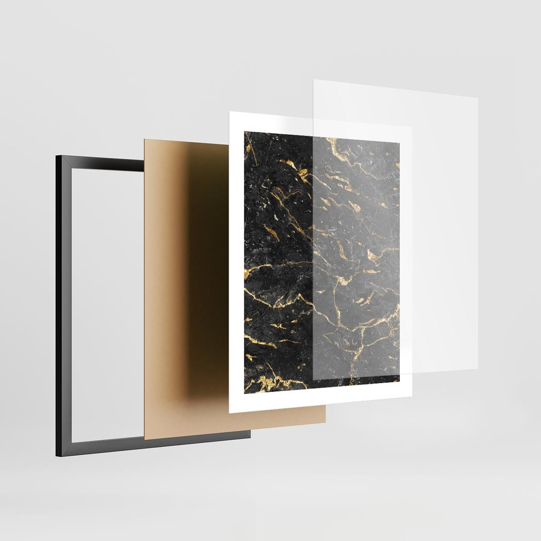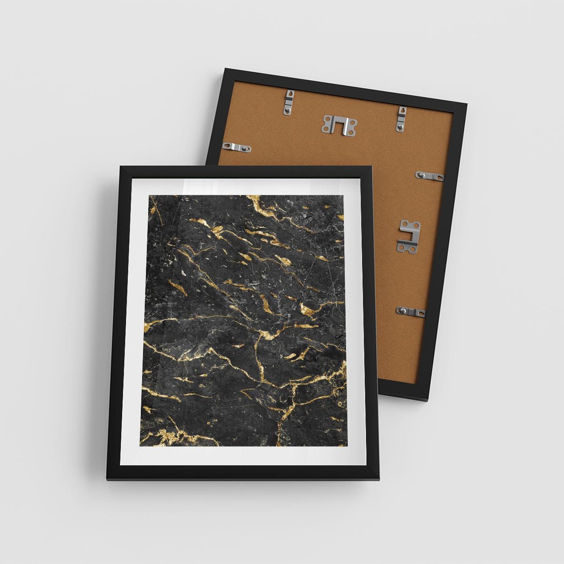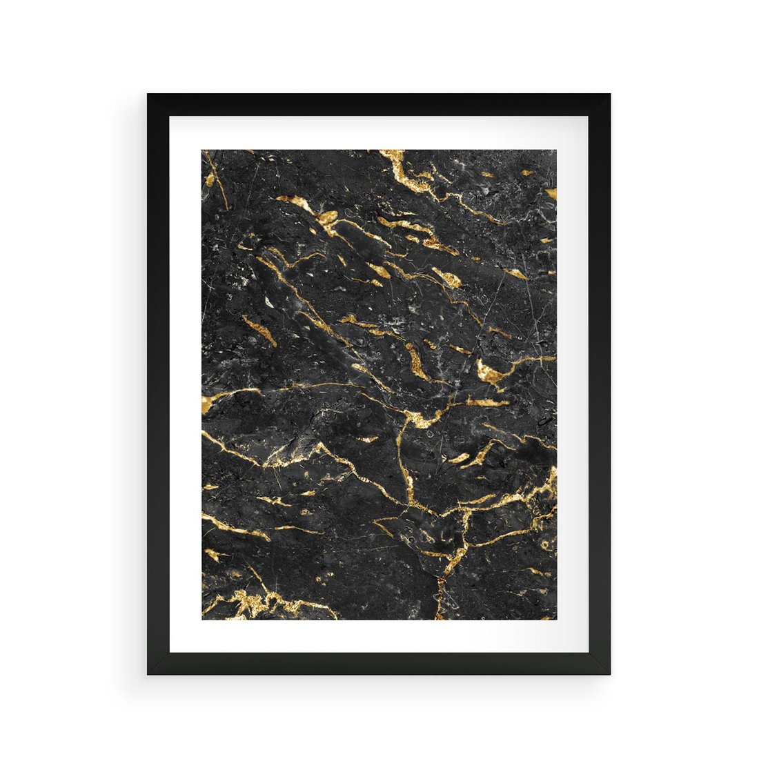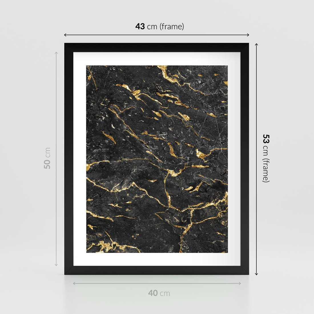 Plakat w ramie 40x50 - Egzotyczny Blask - marmur, złoto - rama czarna