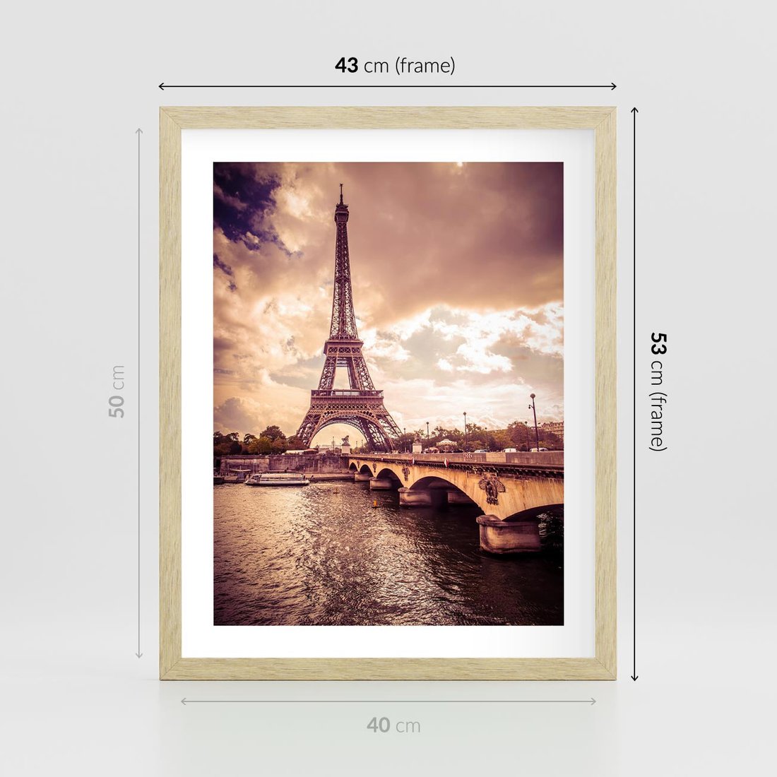 Plakat w ramie 40x50 - Eiffla: ikona Paryża - Eiffla, Paryż - rama drewno