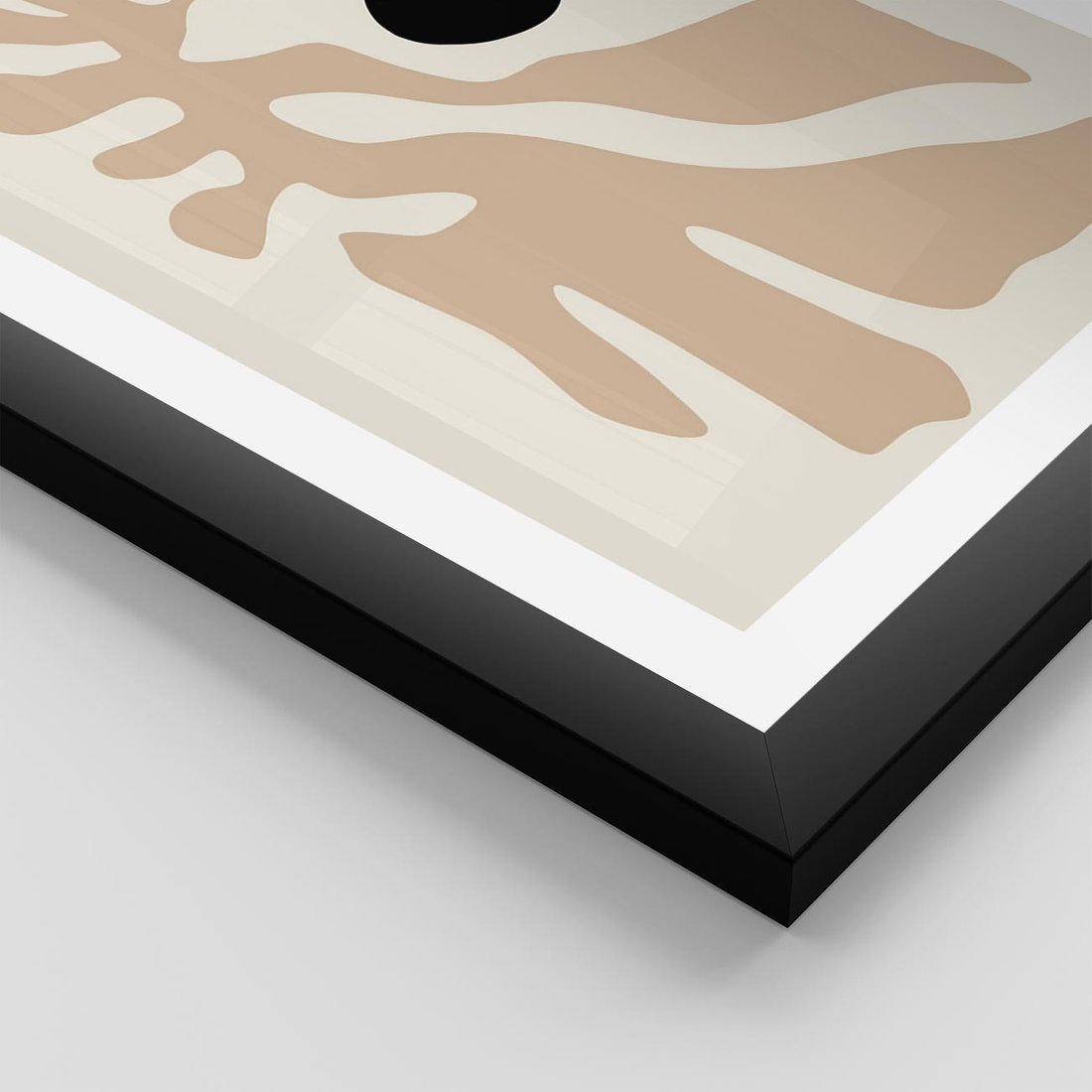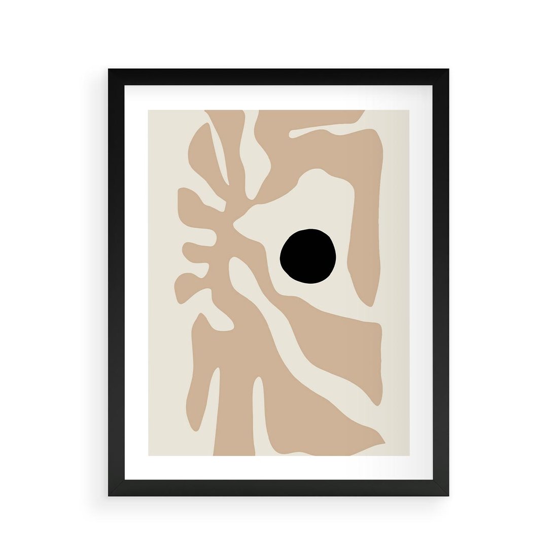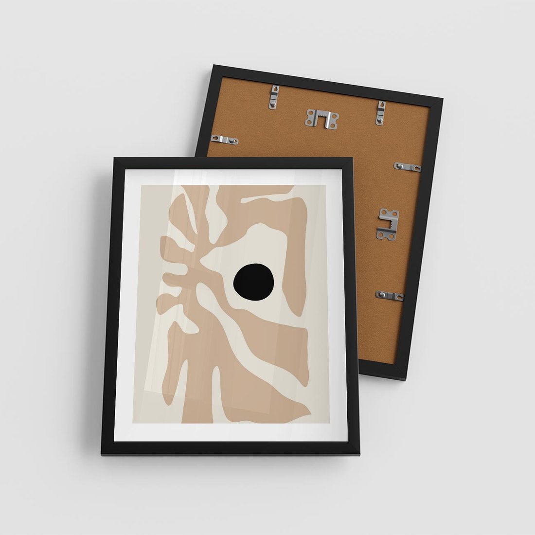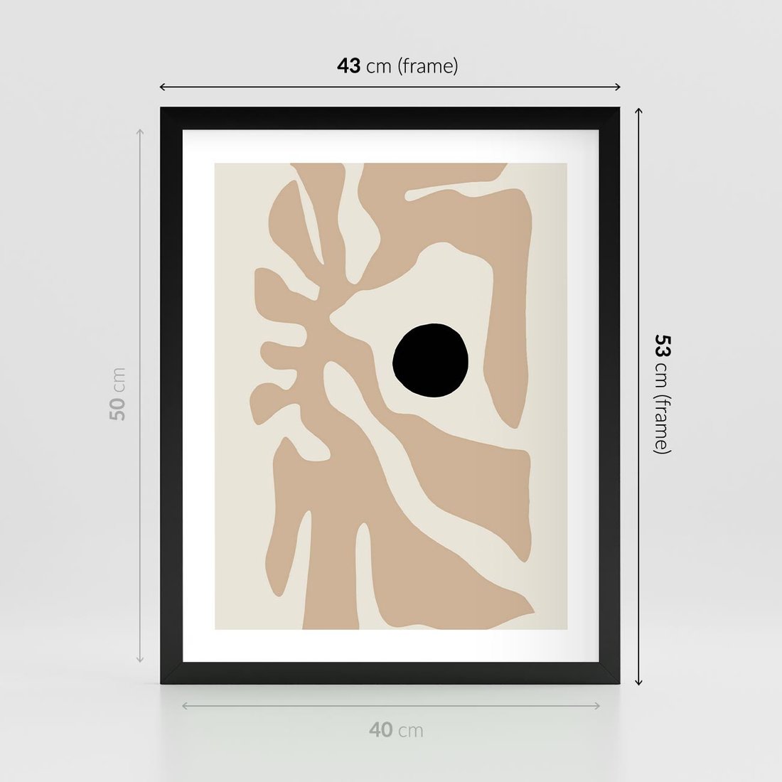 Plakat w ramie 40x50 - Eksploracja Abstrakcji - beżowa absrakcyjna kompozycja, czarny akcent - rama czarna