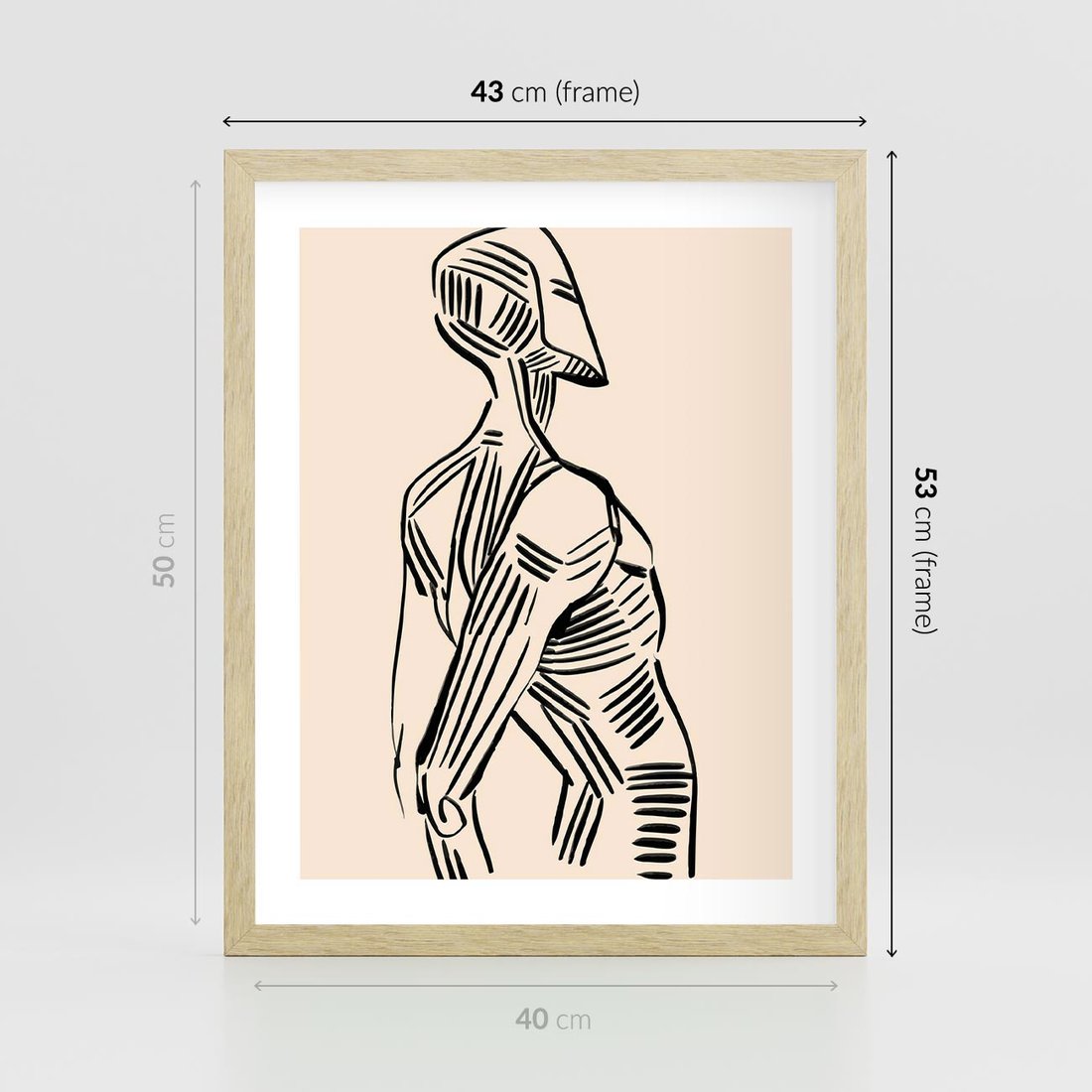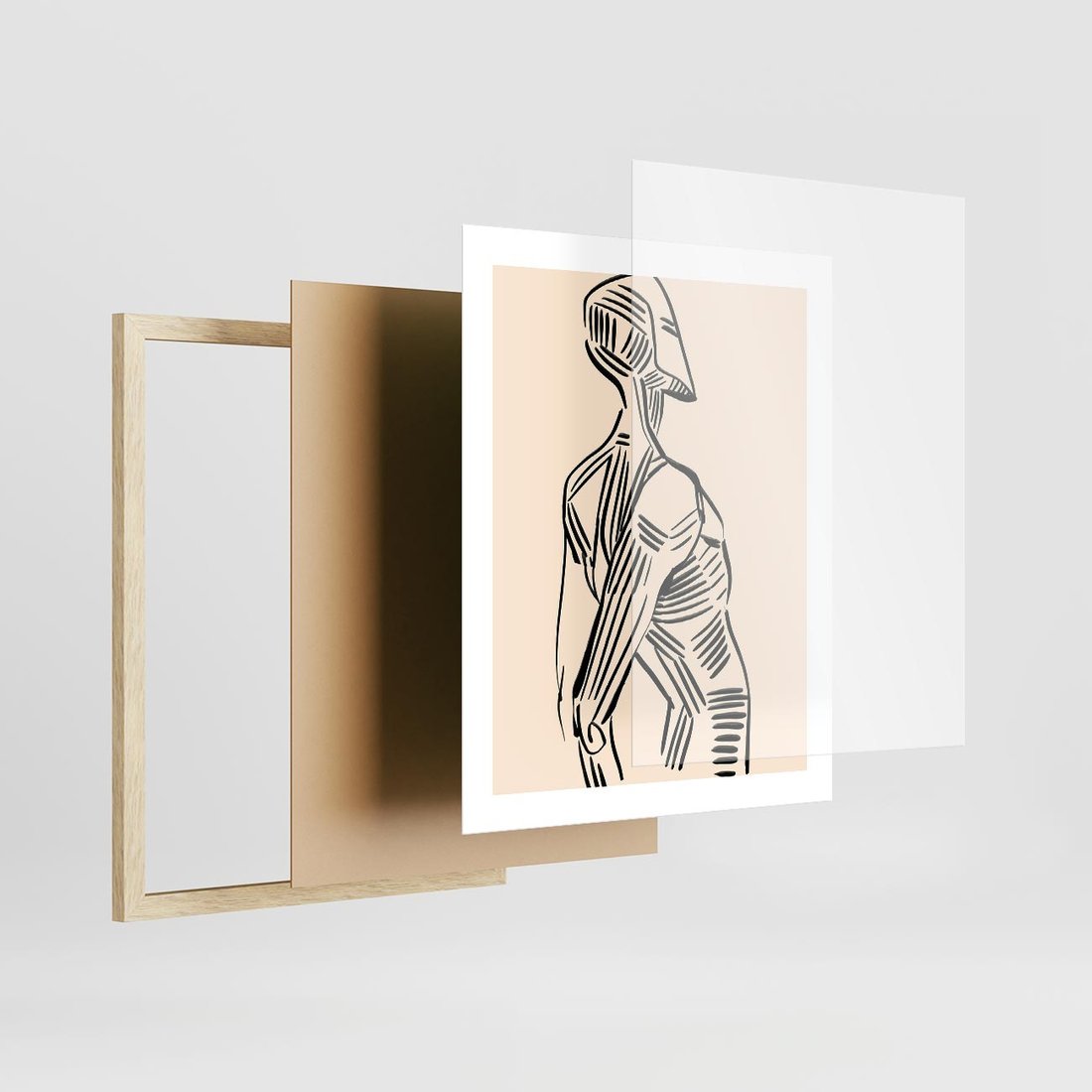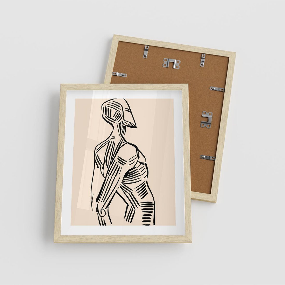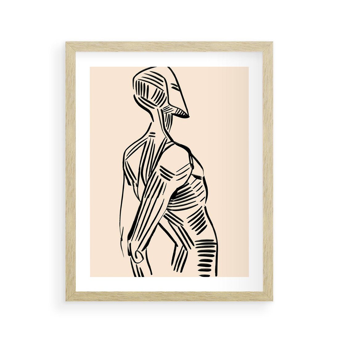 Ten czarno-biały szkic przedstawia abstrakcyjną postać w formie manekina. To artystyczne wyrażenie wprowadza do Twojej przestrzeni subtelność i estetykę, tworząc równocześnie interesujący akcent artystyczny.