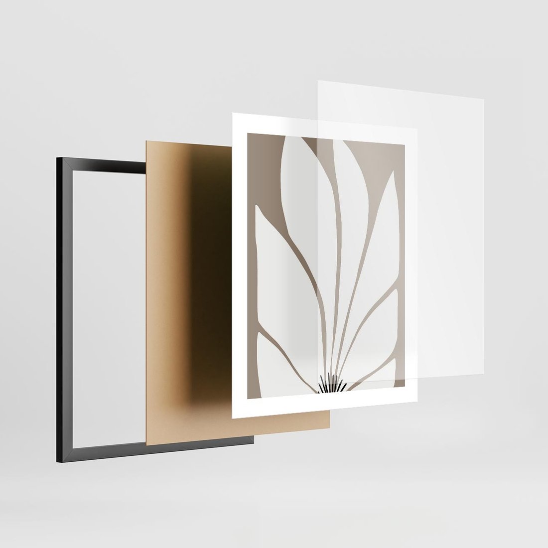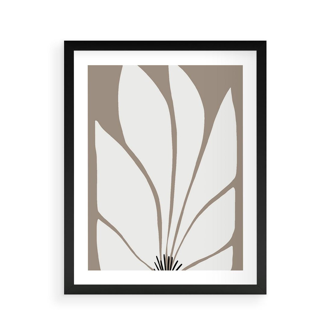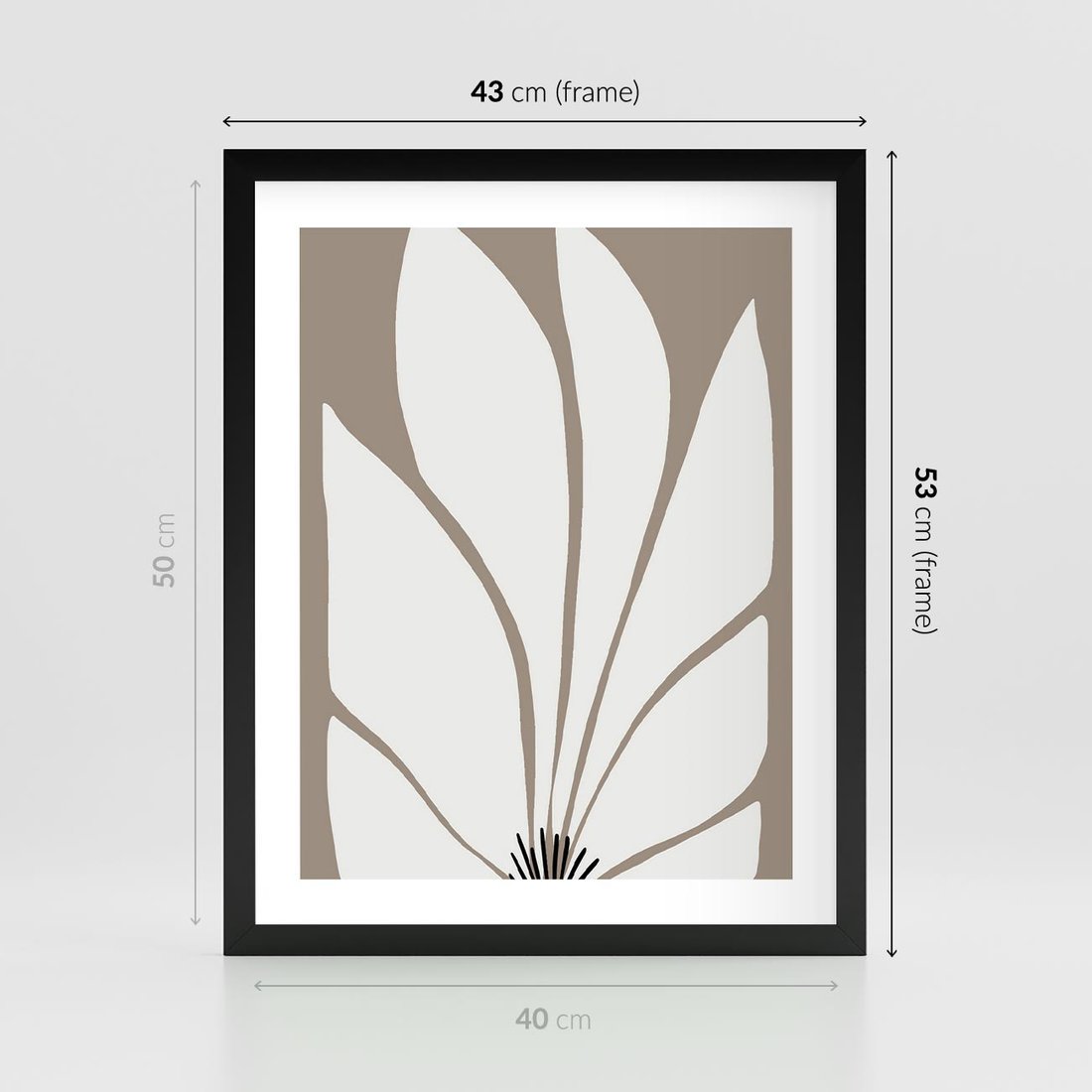 Plakat w ramie 40x50 - Ekspresyjne Kontury - abstrakcyjny kwiat, beże i brązy - rama czarna