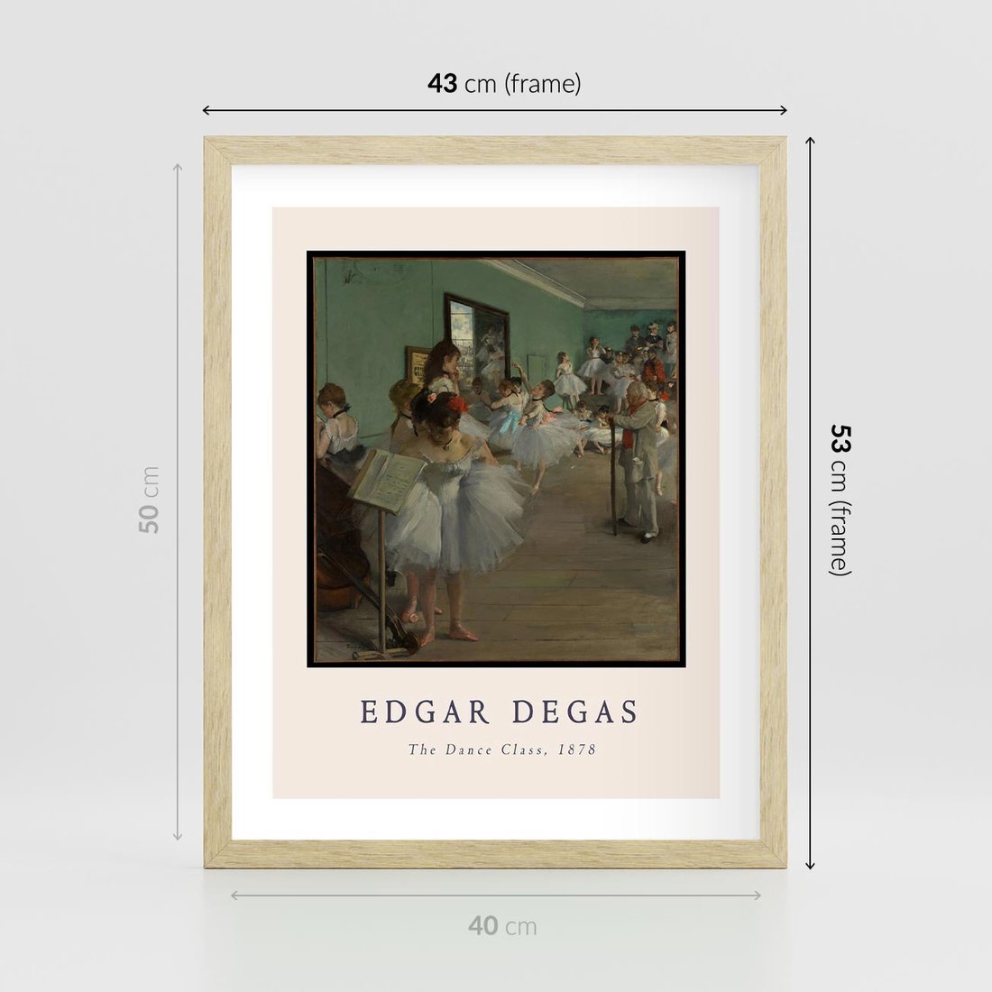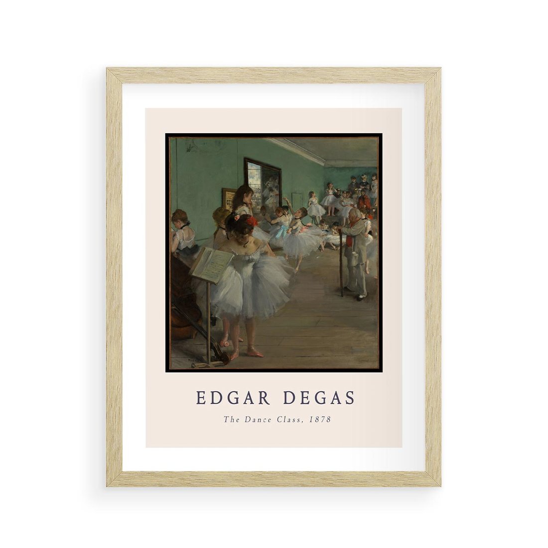 Na obrazie widoczna jest reprodukcja słynnego dzieła Edgara Degasa, przedstawiająca baletnice. Obraz zawiera także elementy typografii, co nadaje mu charakter plakatu. Dzięki swojemu tematowi i stylowi, ten plakat z reprodukcją obrazu Edgara Degasa doskonale pasuje do wnętrza o tematyce artystycznej lub klasycznej.