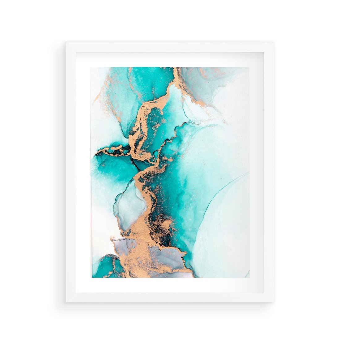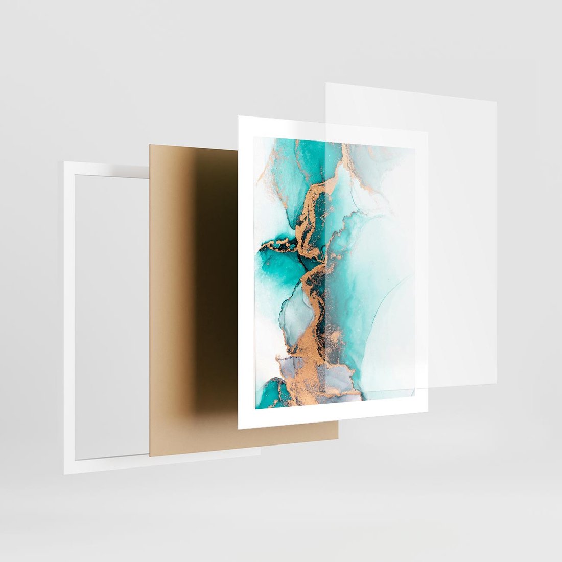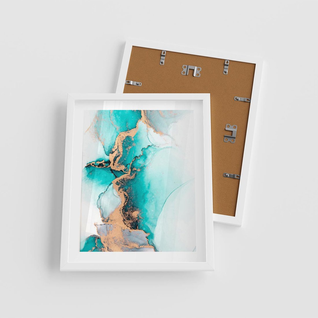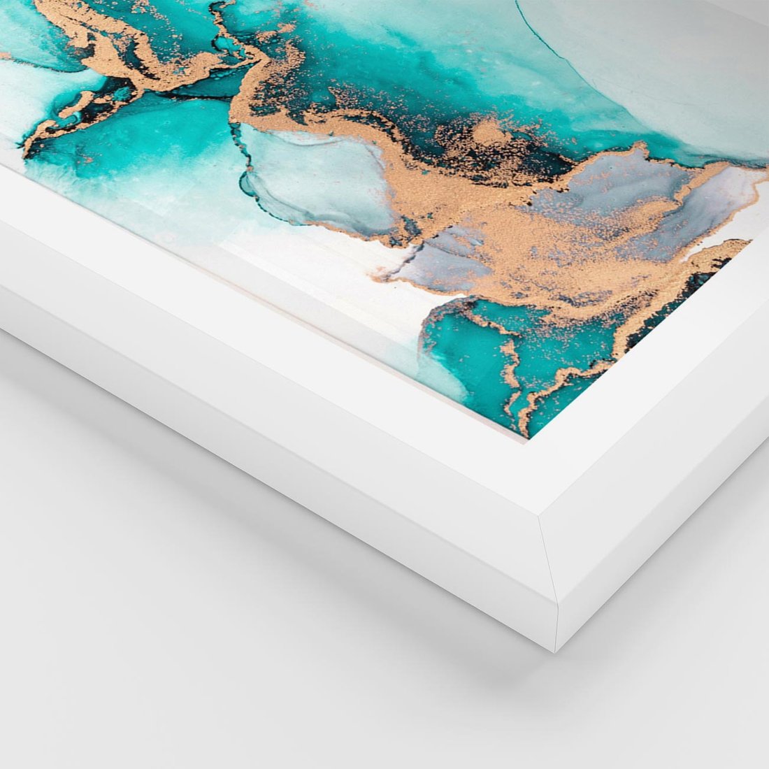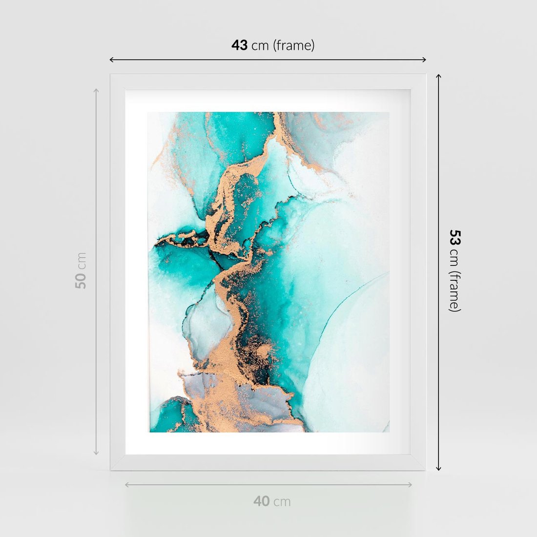 Plakat w ramie 40x50 - Elegancja i Subtelność - marmur, złoto - rama biała