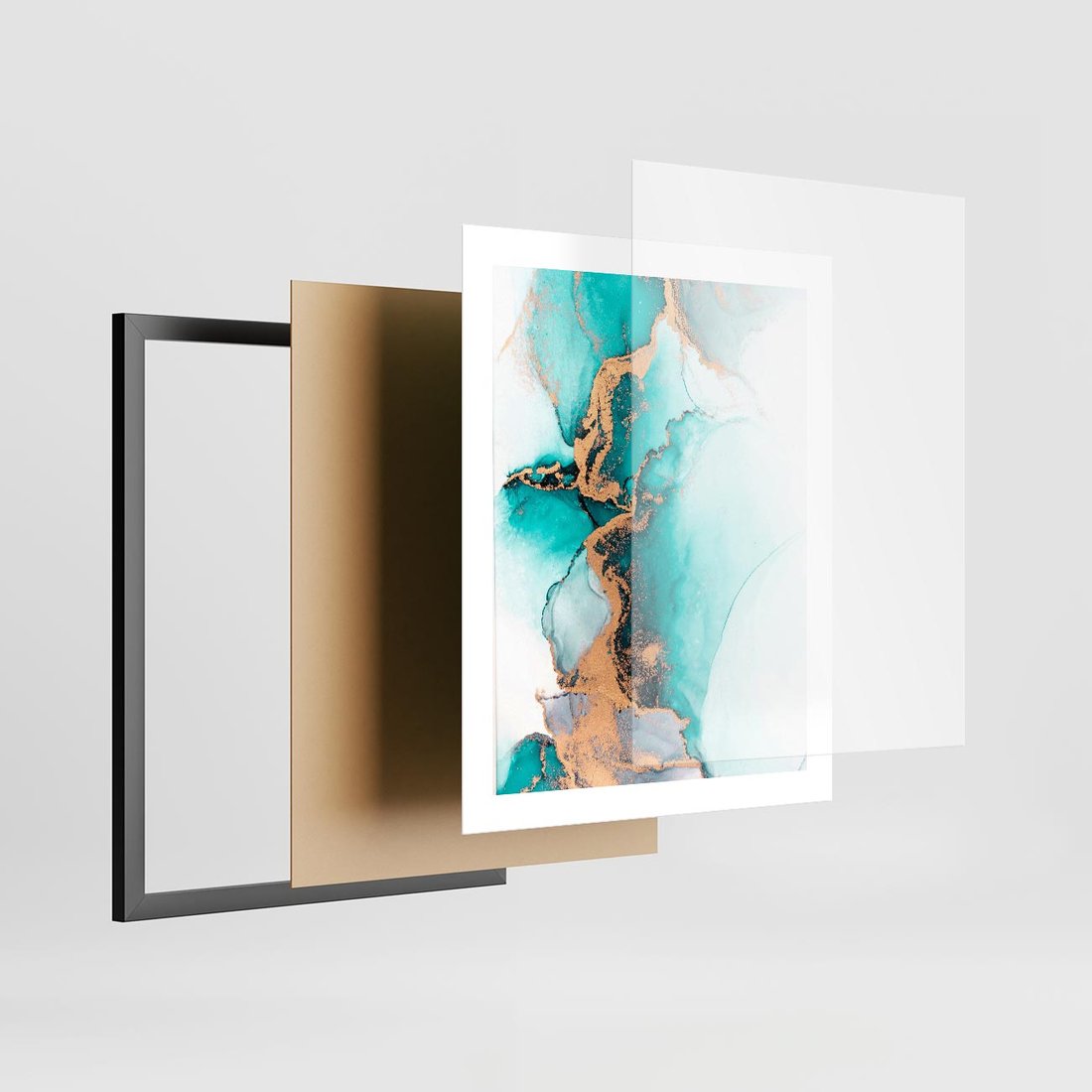 Plakat w ramie 40x50 - Elegancja i Subtelność - marmur, złoto - rama czarna