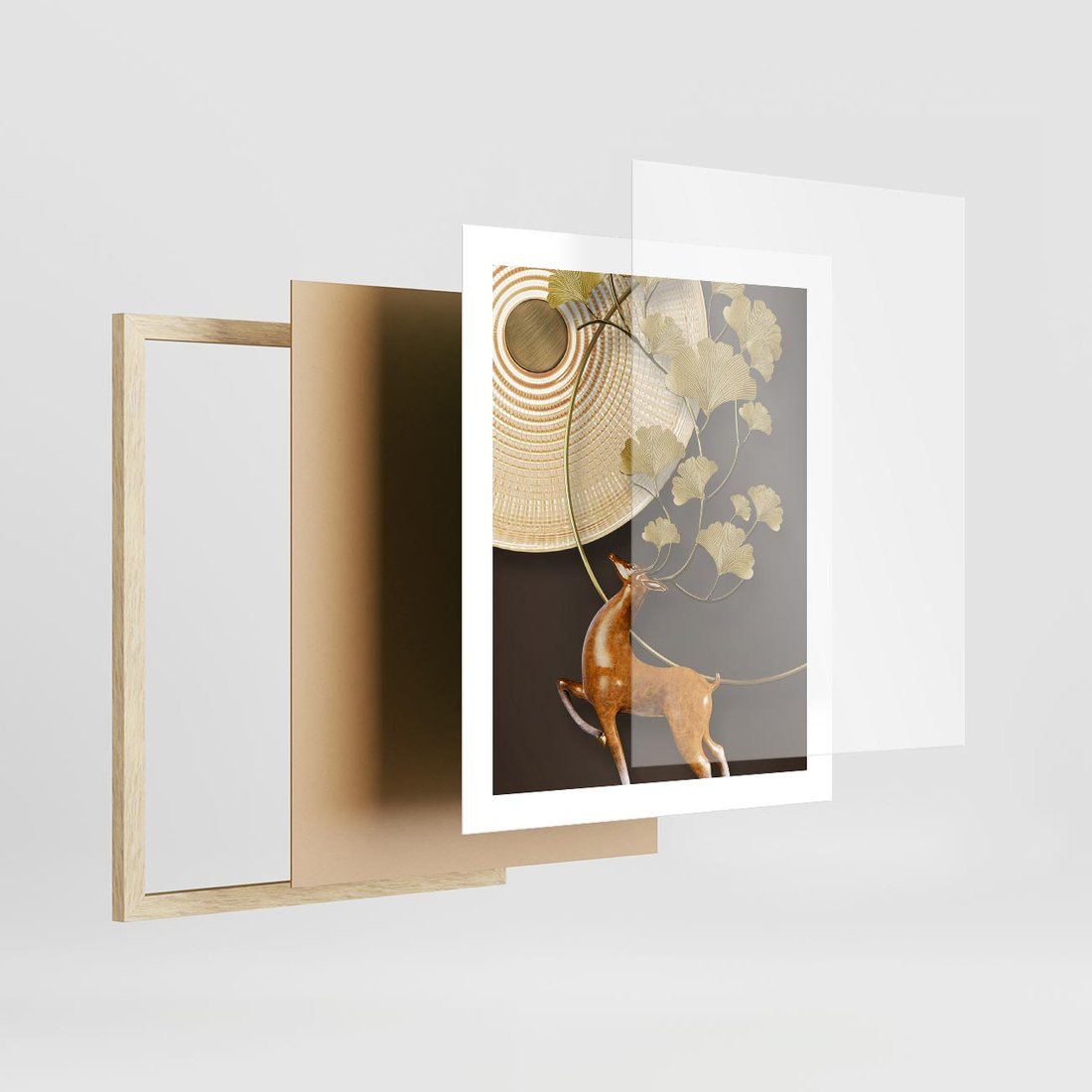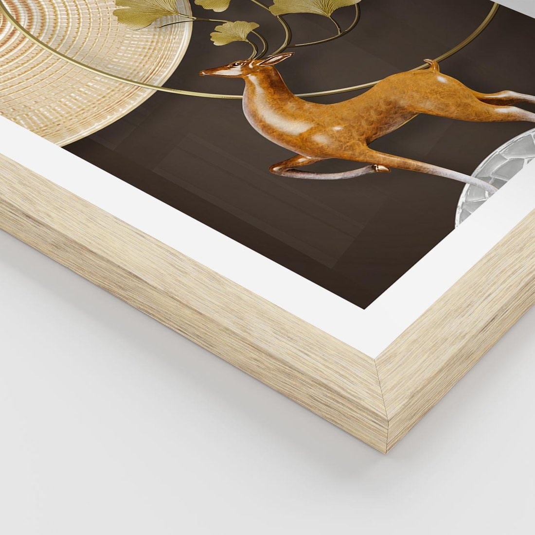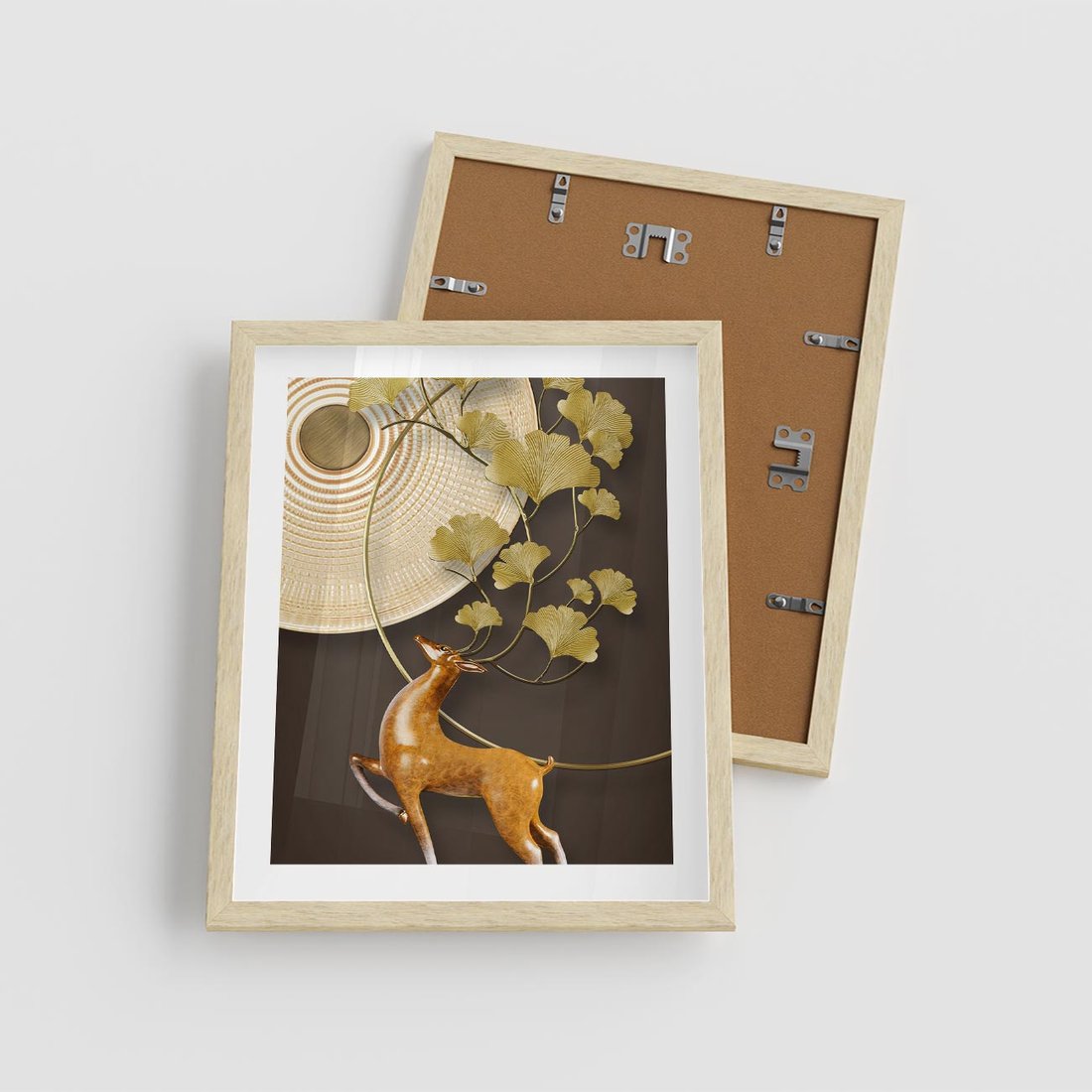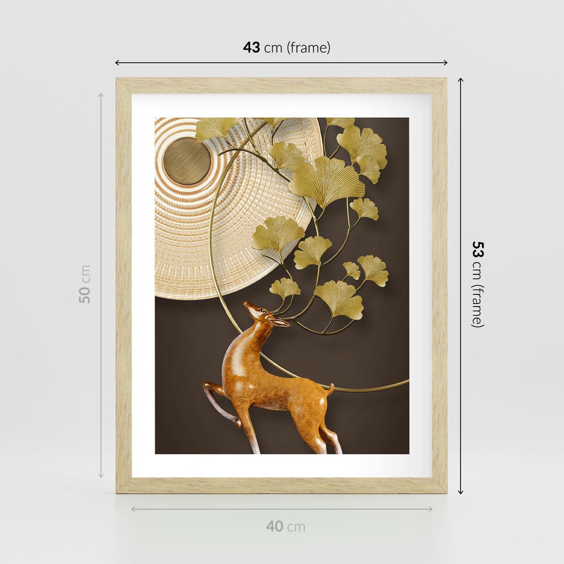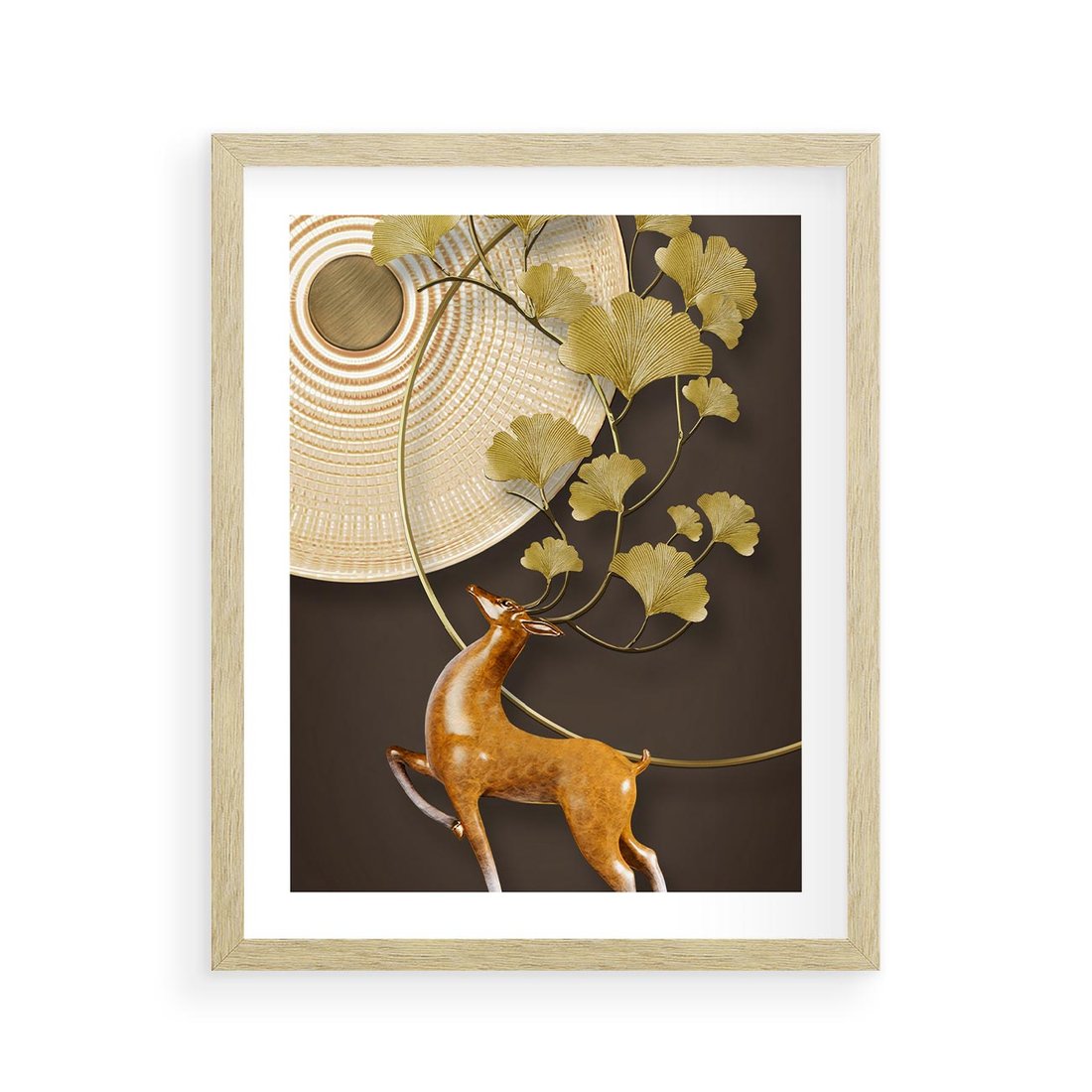 Plakat w ramie 40x50 - Elegancja i Tradycja - złote, liście - rama drewno