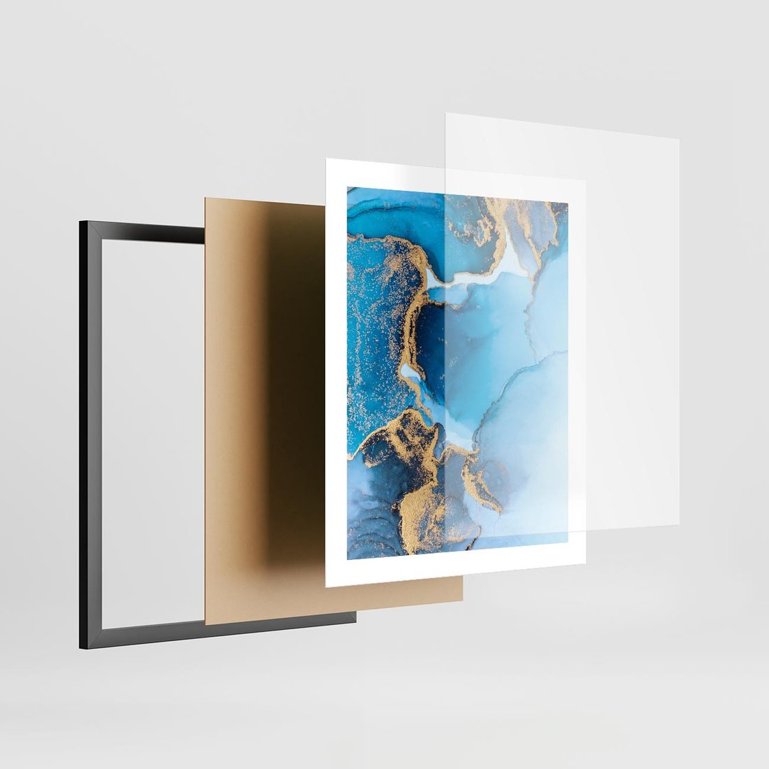 Plakat w ramie 40x50 - Elegancja i Wyrafinowanie - marmur, złoto - rama czarna