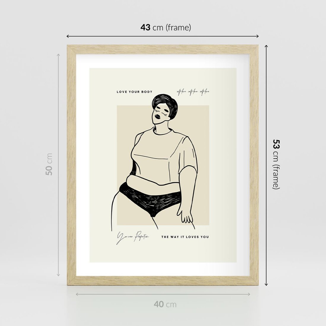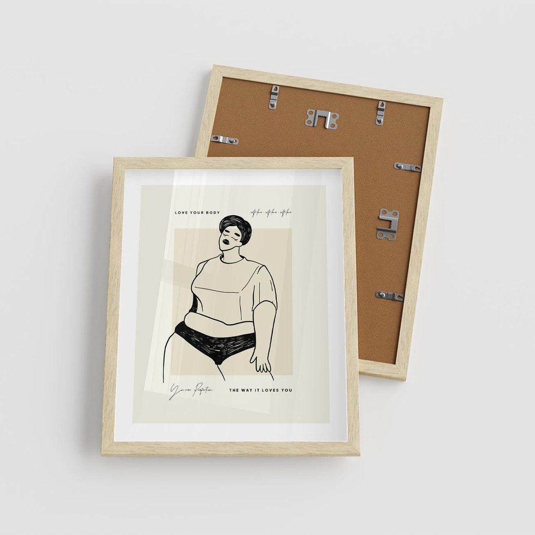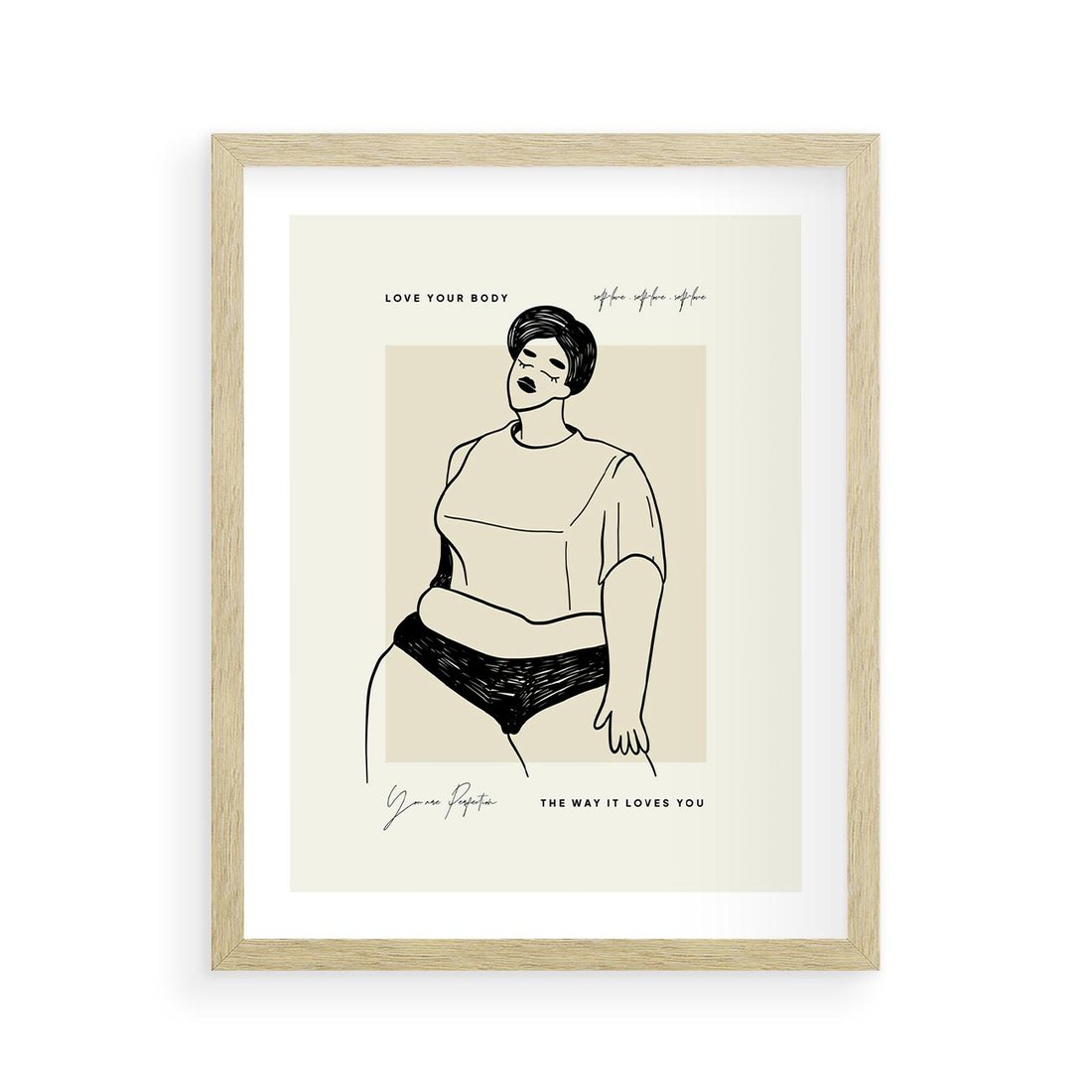 Plakat w ramie 40x50 - Elegancja Kobiecej Formy - nowoczesna sztuka kobieca, plakat - rama drewno