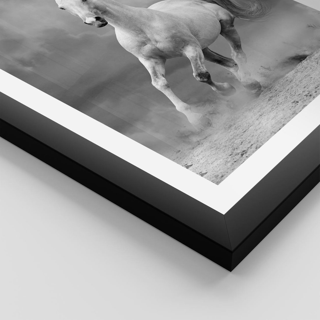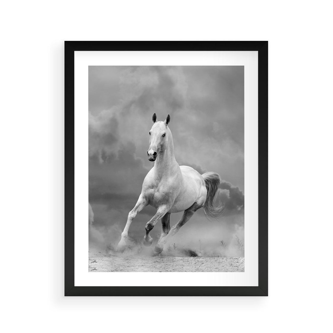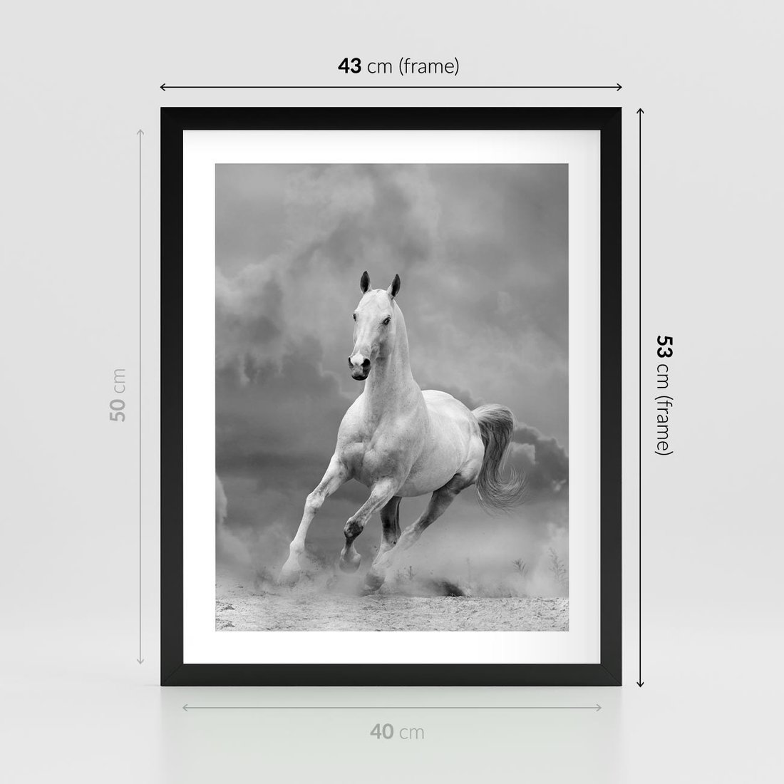 Plakat w ramie 40x50 - Elegancja w Czarno-Białym - koń, biało - rama czarna