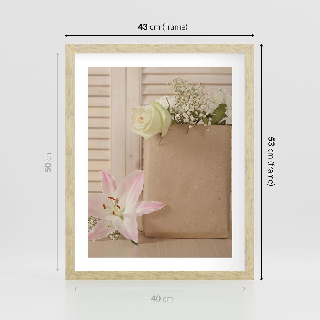 Plakat w ramie 40x50 - Elegancja W Prostocie - kwiaty, mnimalizm - rama drewno