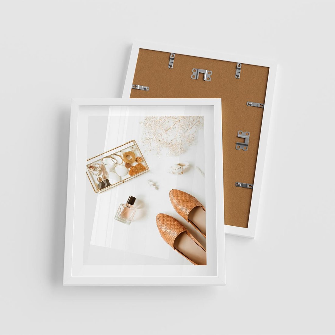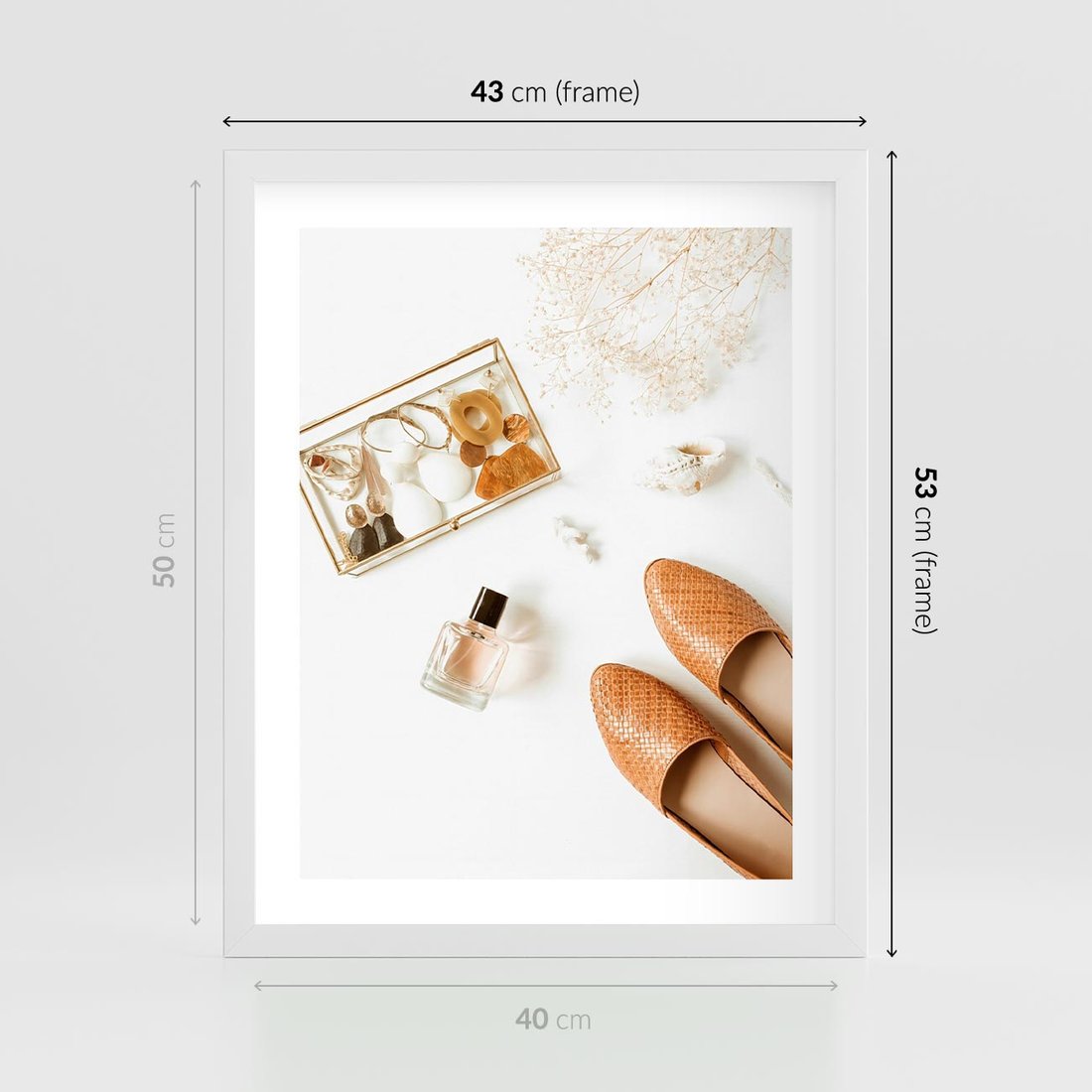 Plakat w ramie 40x50 - Elegancja w Szafie - modowa fotografia, buty - rama biała