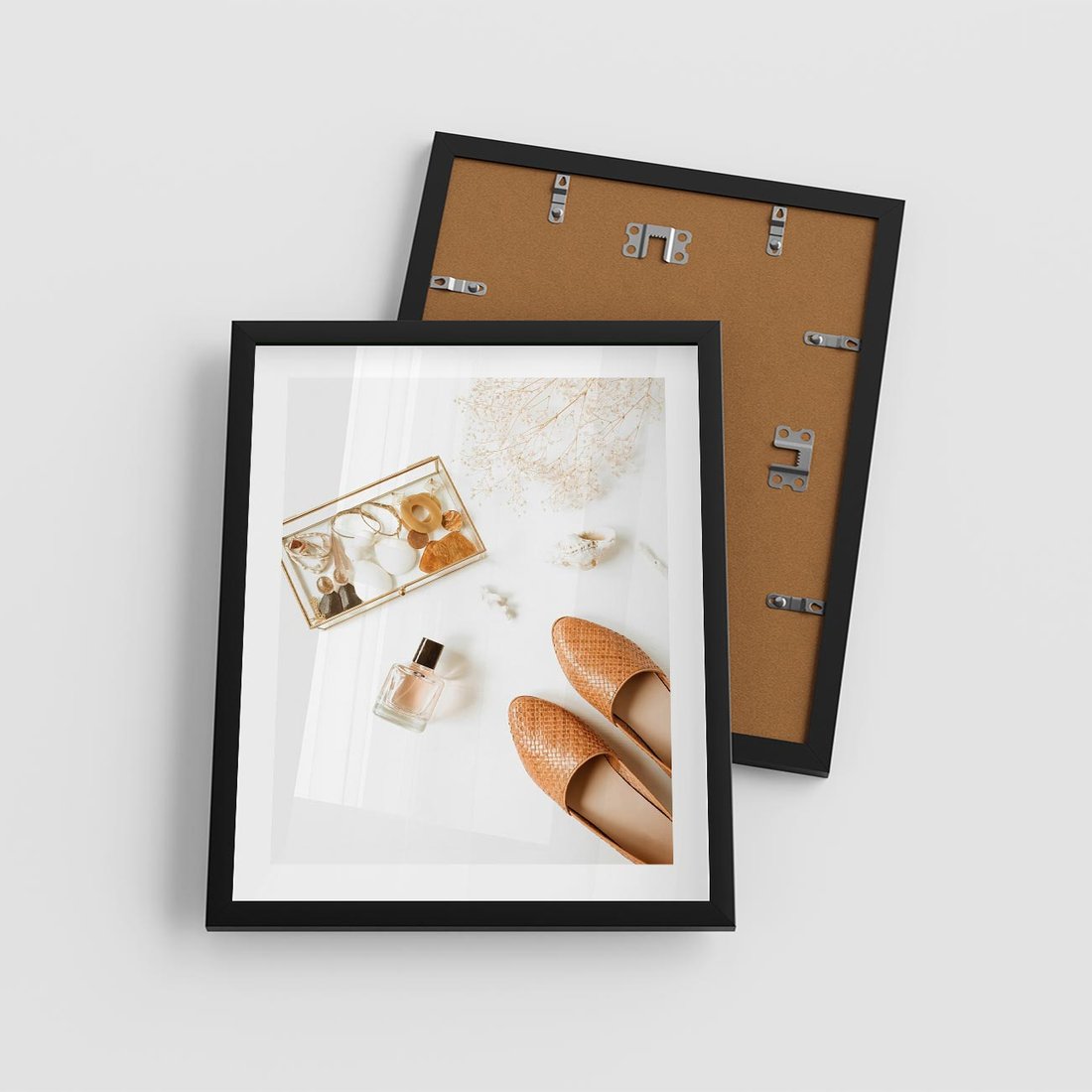 Plakat w ramie 40x50 - Elegancja w Szafie - modowa fotografia, buty - rama czarna