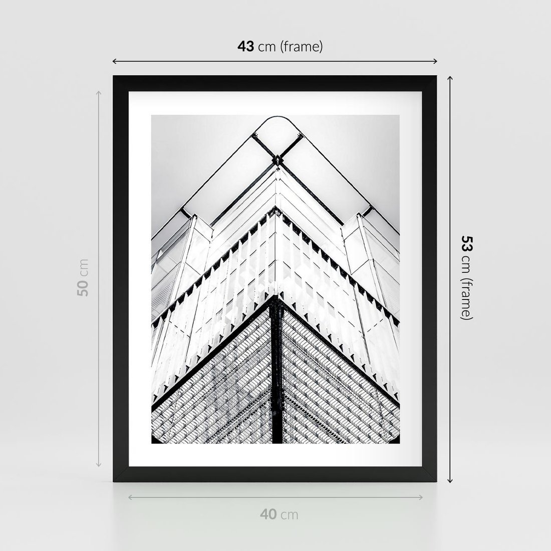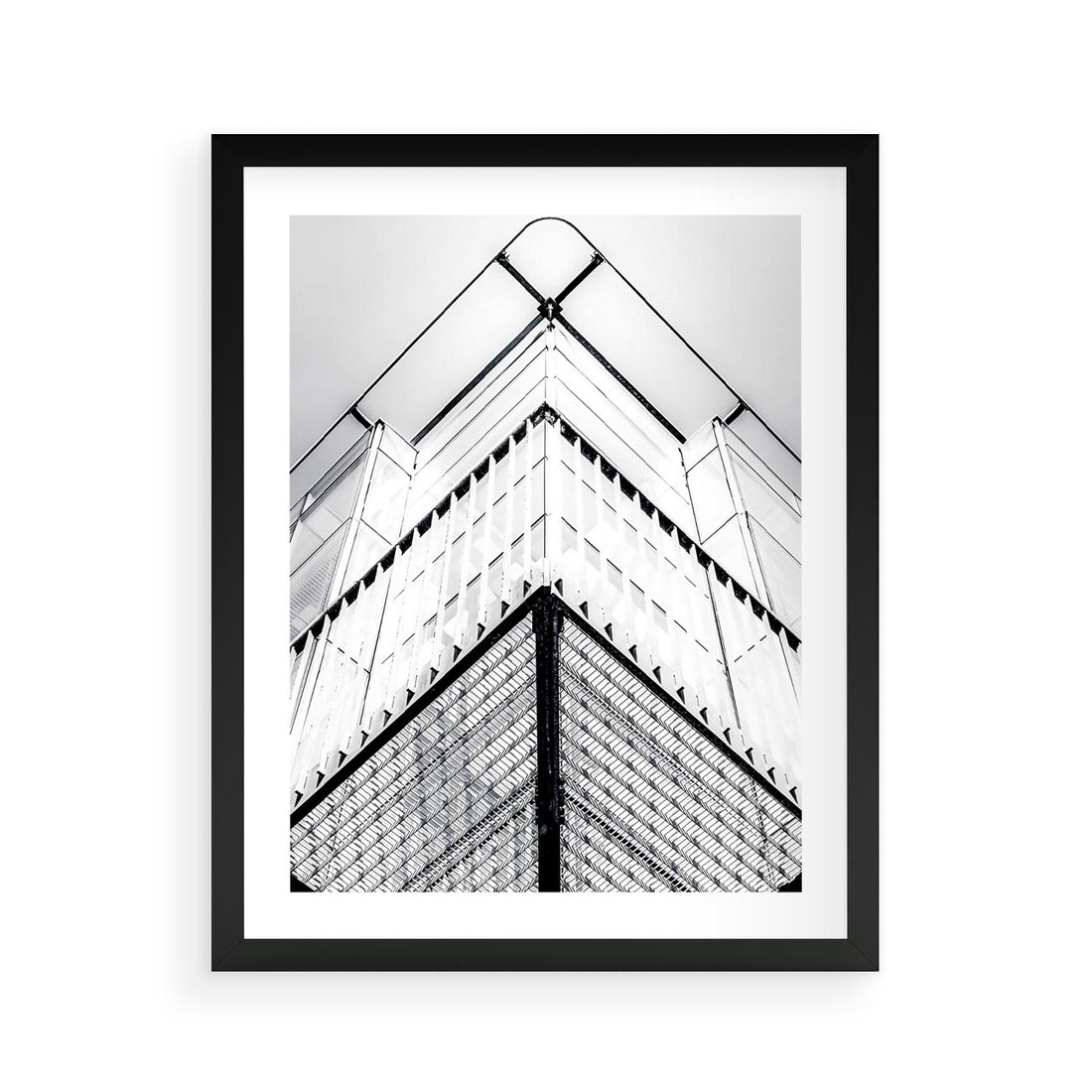 - Plakat w ramie 40x50 - Elegancja Współczesnej Architektury: Wieżowiec w Monochromii