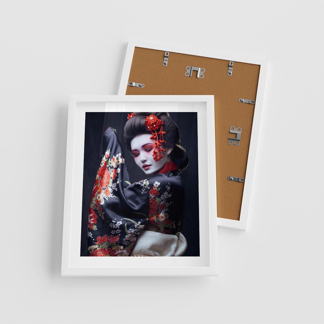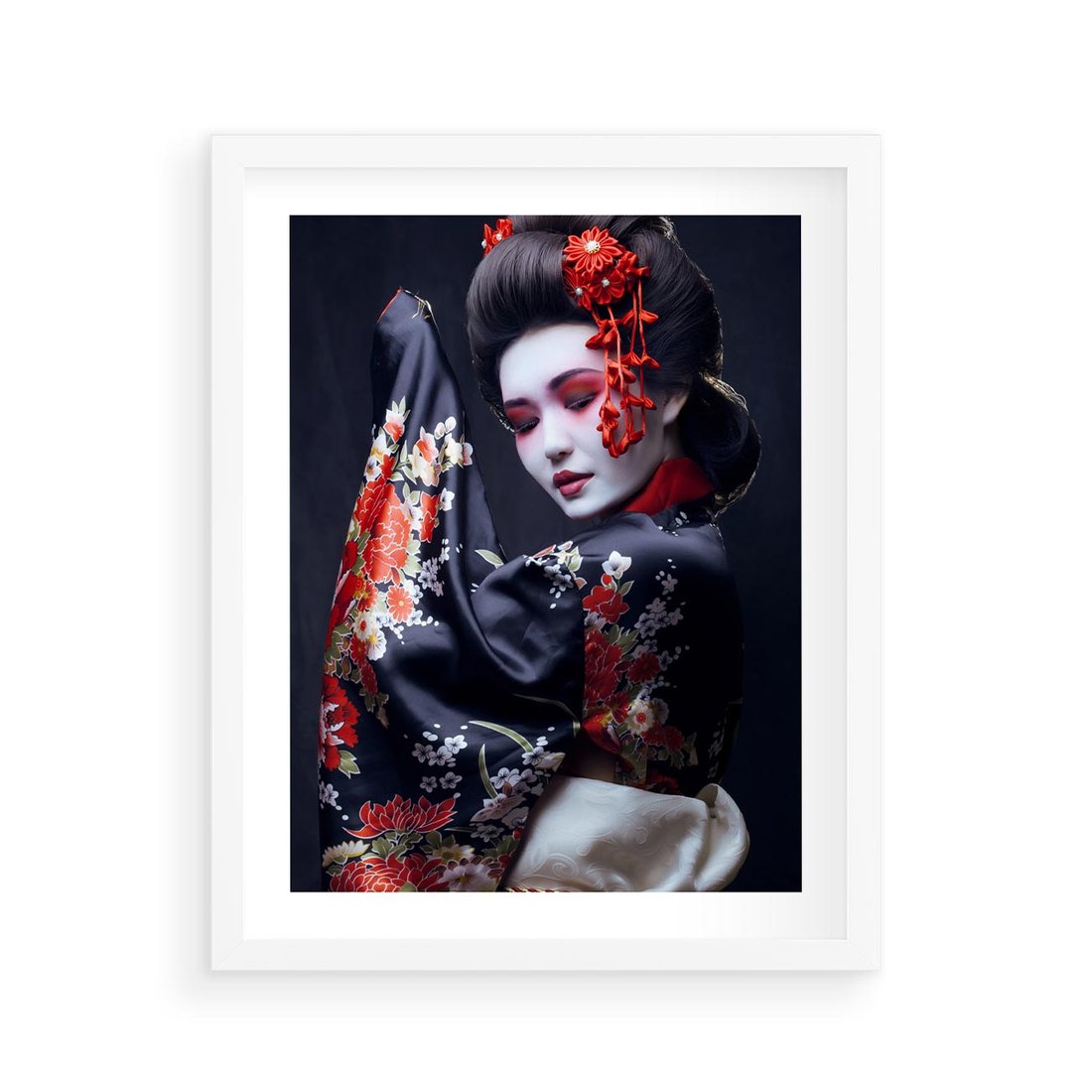 Plakat w ramie 40x50 - Elegancka japońska gejsza - japońska, gejsza - rama biała