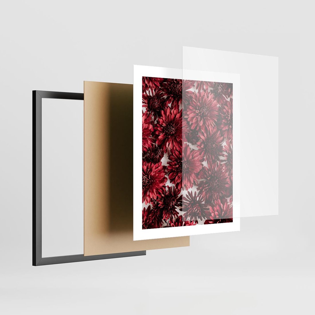 Plakat w ramie 40x50 - Energia Kwiatów - czerwone kwiaty, kompozycja - rama czarna