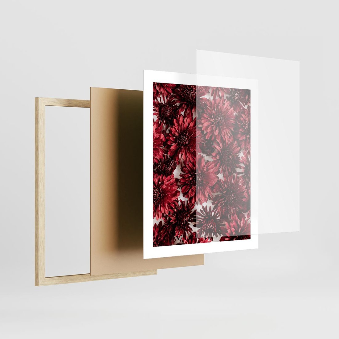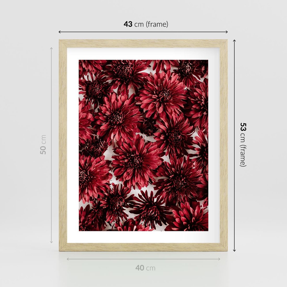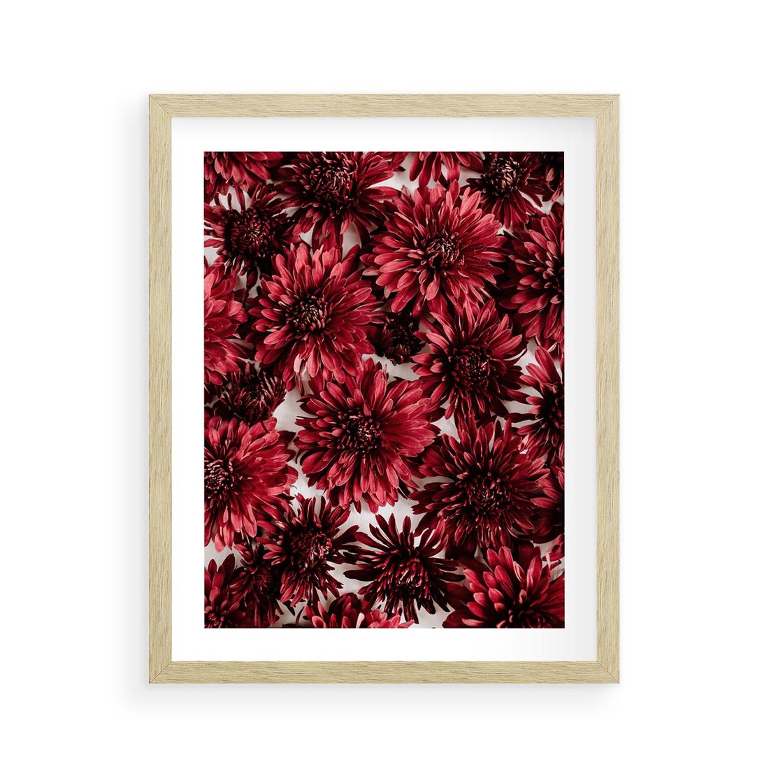 Plakat w ramie 40x50 - Energia Kwiatów - czerwone kwiaty, kompozycja - rama drewno