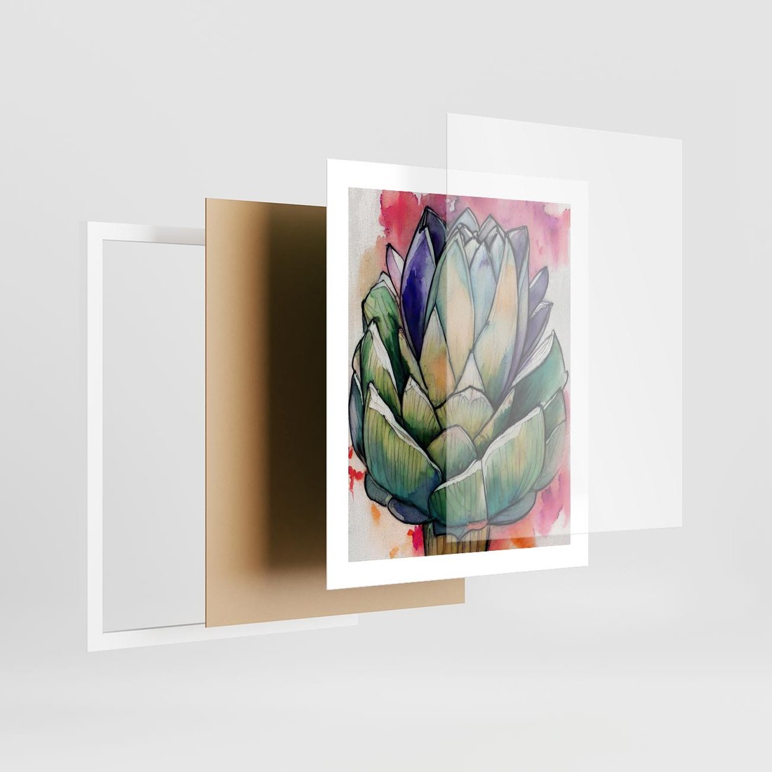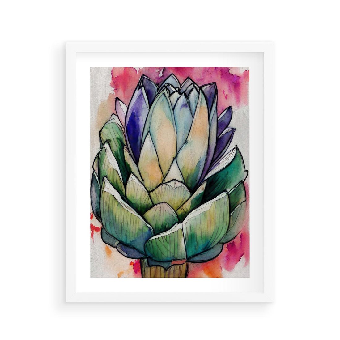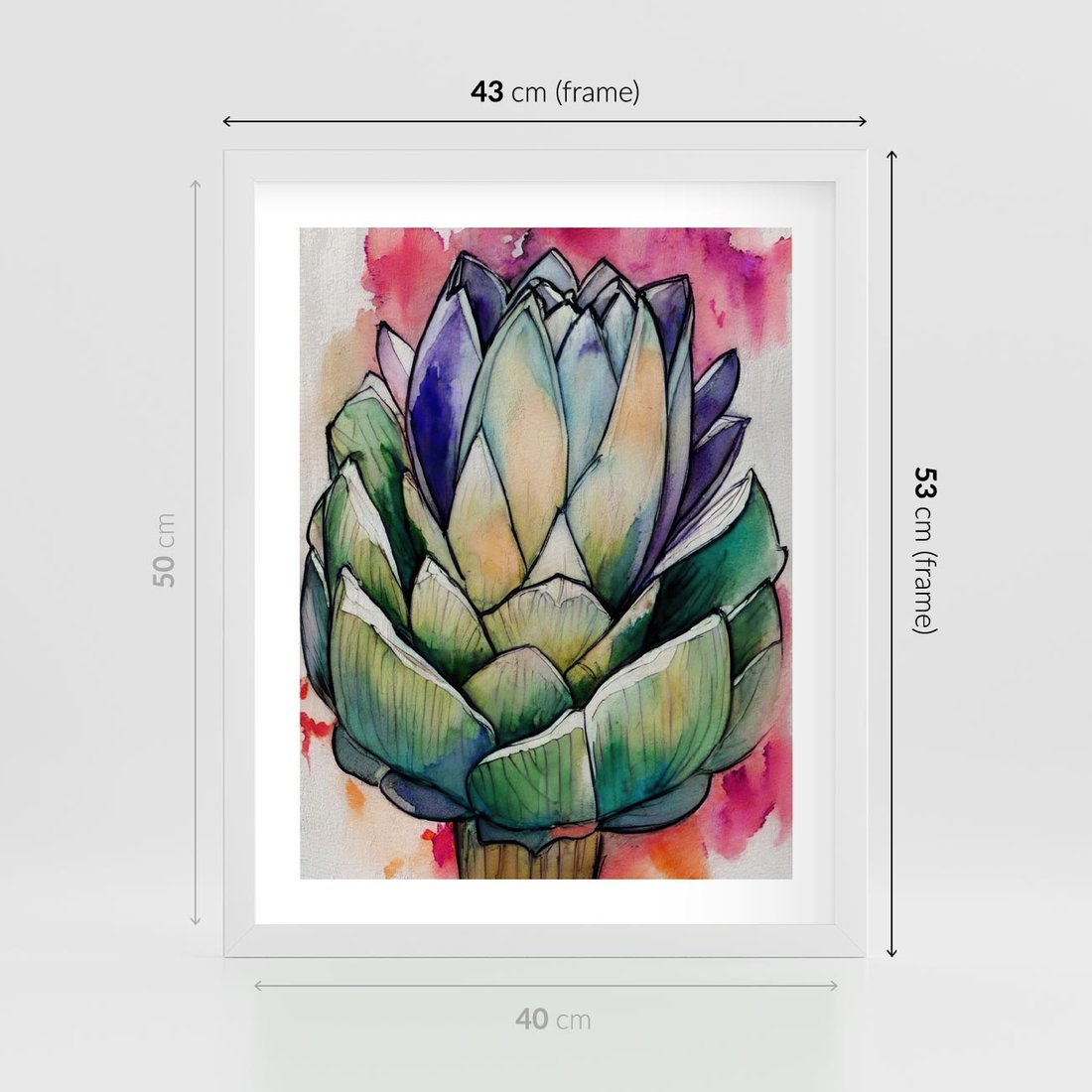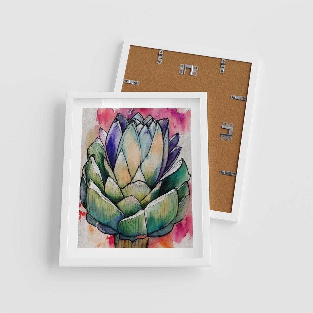 Ten abstrakcyjny obraz w technice akwareli przedstawia karczoch w sposób niekonwencjonalny i artystyczny. Artysta wykorzystuje delikatne przejścia kolorów i swobodne linie, aby stworzyć abstrakcyjny obraz, który jednocześnie może być źródłem inspiracji i zagadką dla widza. Technika akwareli dodaje delikatności i subtelności temu dziełu, tworząc wrażenie lekkości i przejrzystości. To doskonała dekoracja dla tych, którzy cenią sobie abstrakcyjną sztukę i wyjątkową estetykę roślin.