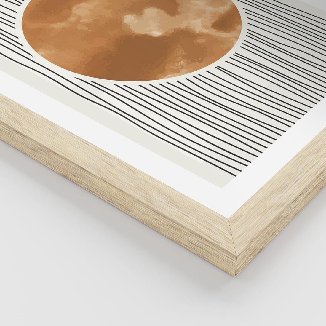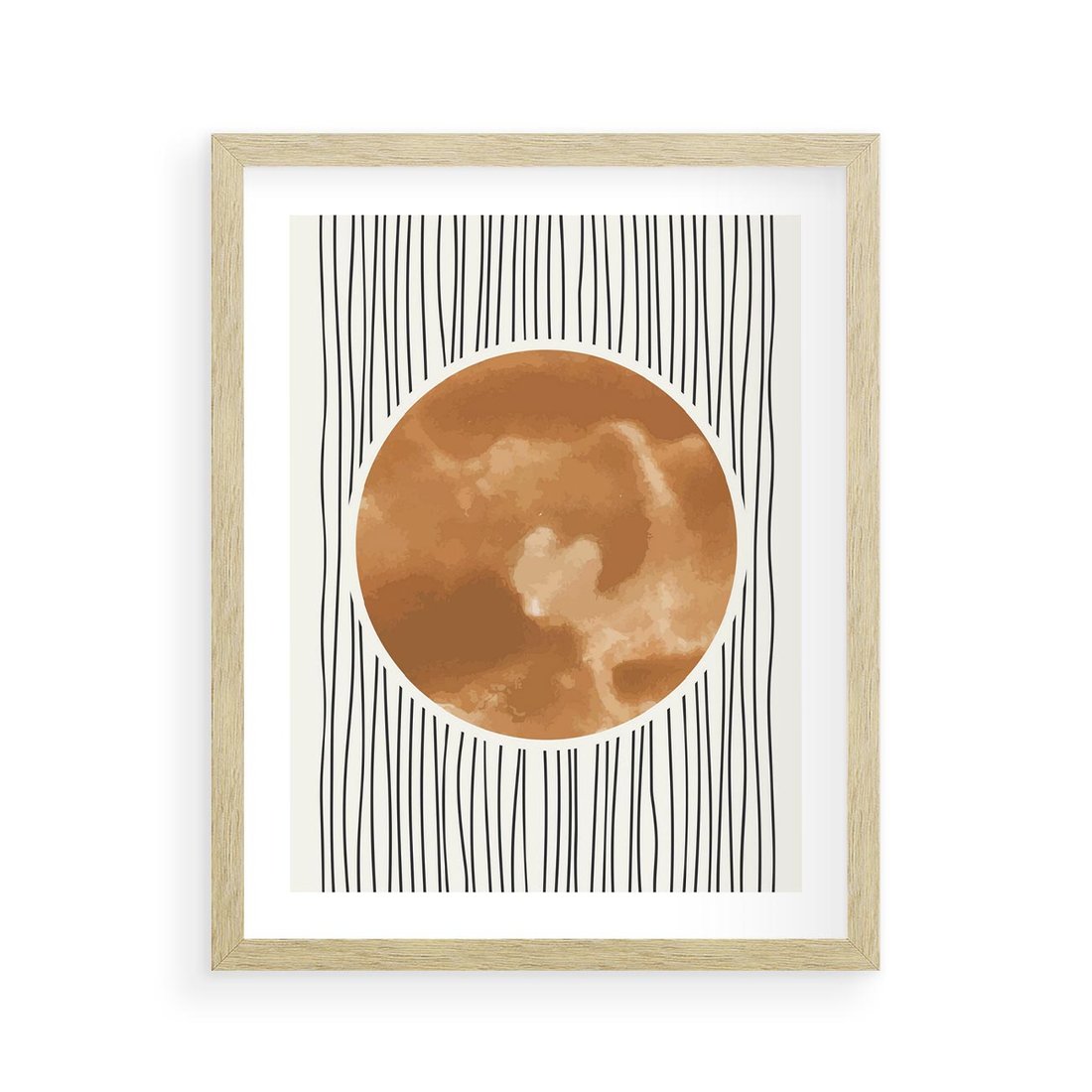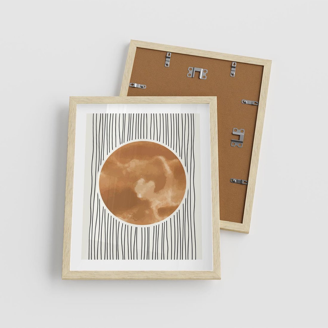 To minimalistyczny plakat w stylu boho prezentuje miedziane koło w połączeniu z geometrycznym szkicem. To kreatywne połączenie wprowadza do Twojej przestrzeni unikalną aurę boho, tworząc równocześnie interesujący akcent minimalistyczny.
