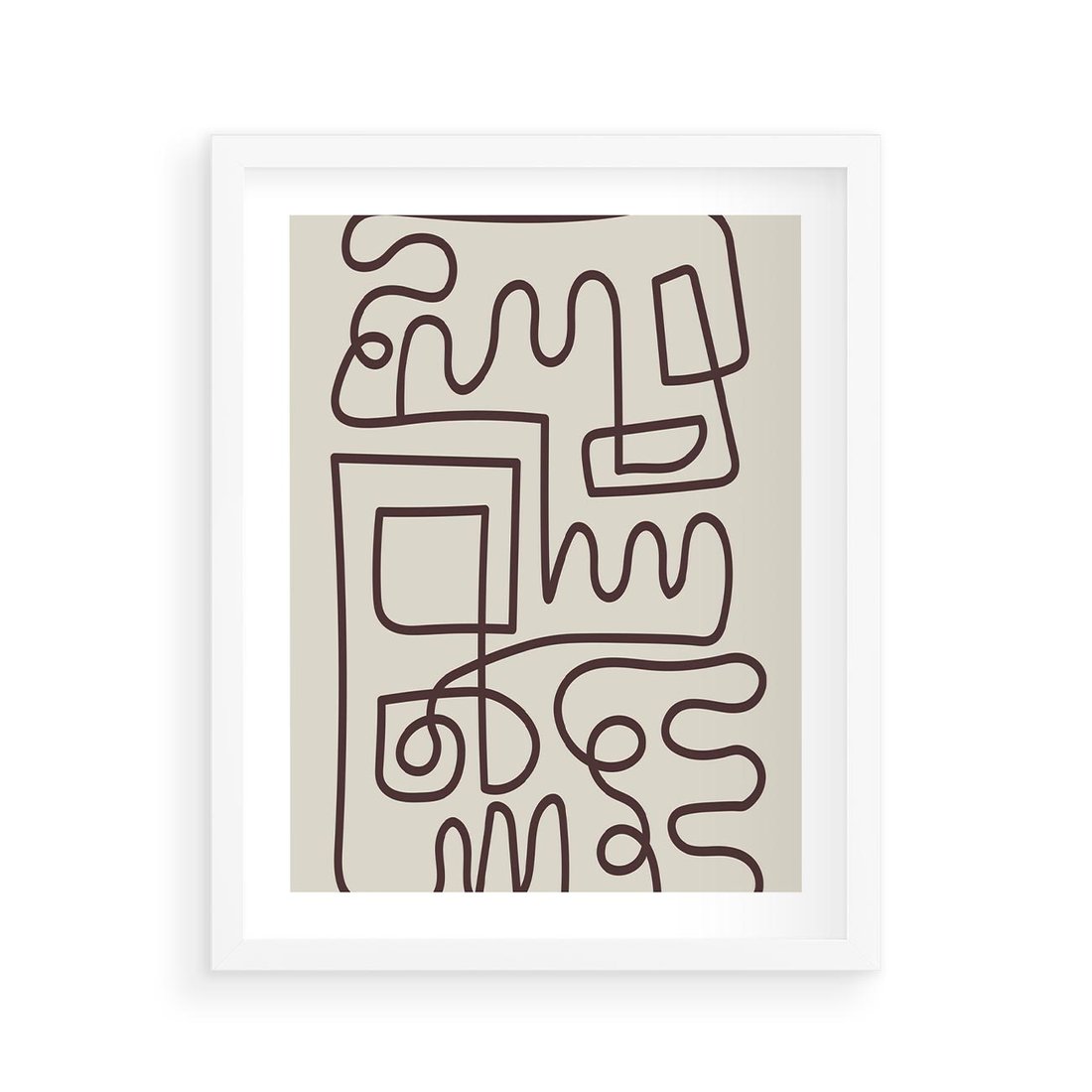 To nowoczesna boho grafika, która łączy abstrakcję, styl "one line" oraz elementy etniczne. Obraz jest kreatywnym połączeniem różnych stylów i motywów.