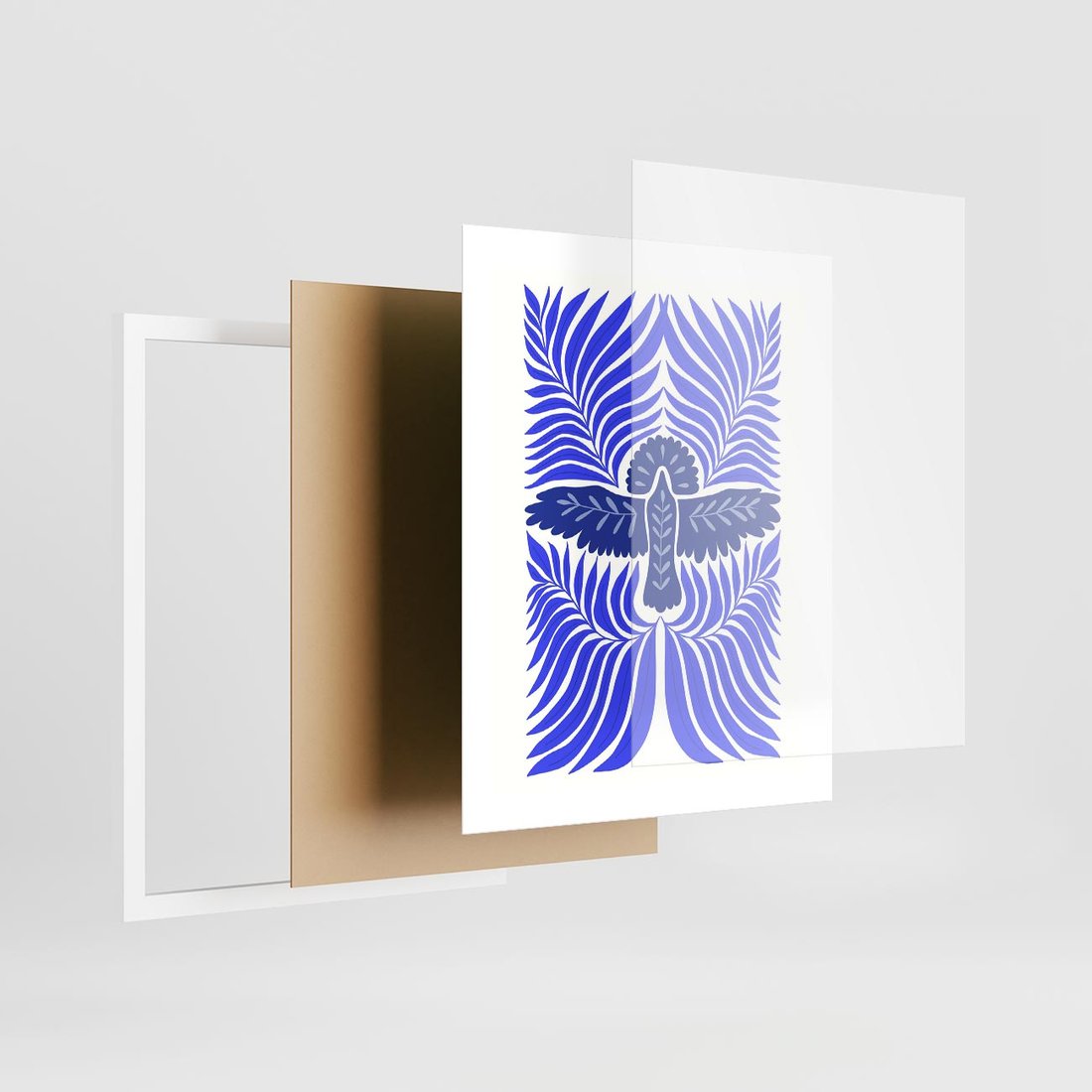 Ta minimalistyczna kompozycja przekształca etniczne roślinne wzory w harmonijną całość w odcieniach granatu i kobaltowego. "Etniczne Rekwizyty" to obraz, który w prosty sposób oddaje bogactwo wzorów etnicznych i ich piękno, jednocześnie zachowując minimalistyczną estetykę. To idealny sposób na wprowadzenie etnicznego i boho akcentu do przestrzeni, czerpiąc inspirację z natury i kultur.
