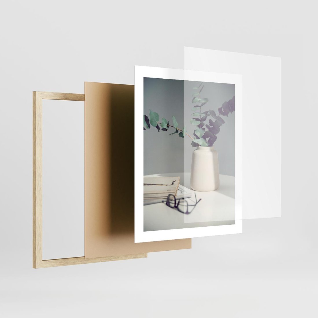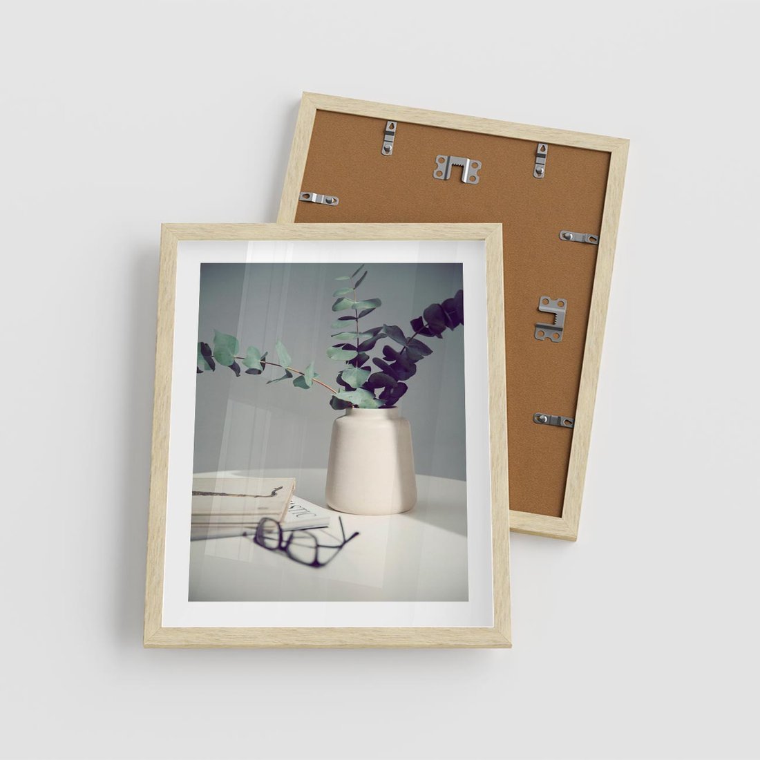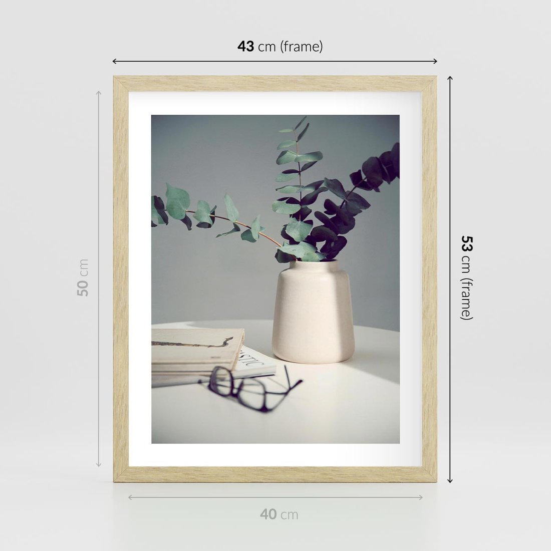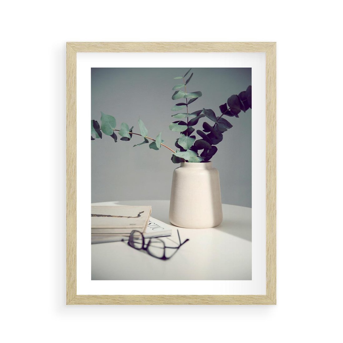 Plakat w ramie 40x50 - Eukaliptusowa Cisza - kompozycja, liście eukaliptusa w wazonie - rama drewno