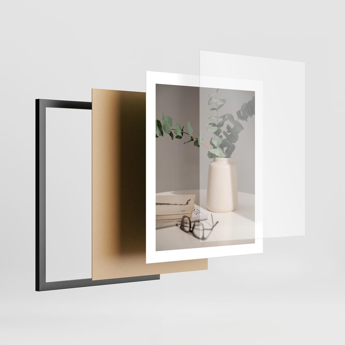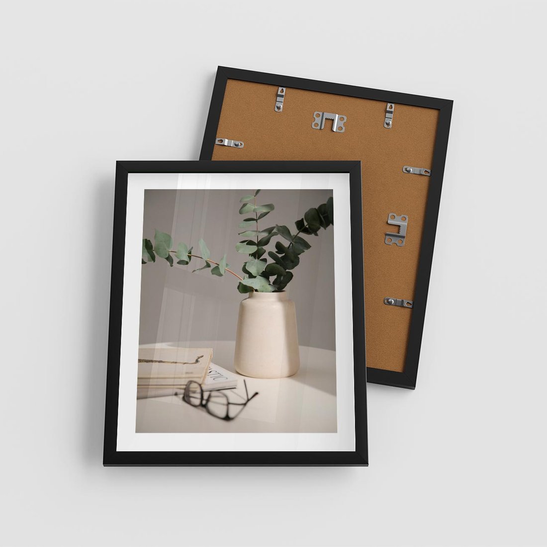 Plakat w ramie 40x50 - Eukaliptusowe liście w okularach - liście, eukaliptus - rama czarna