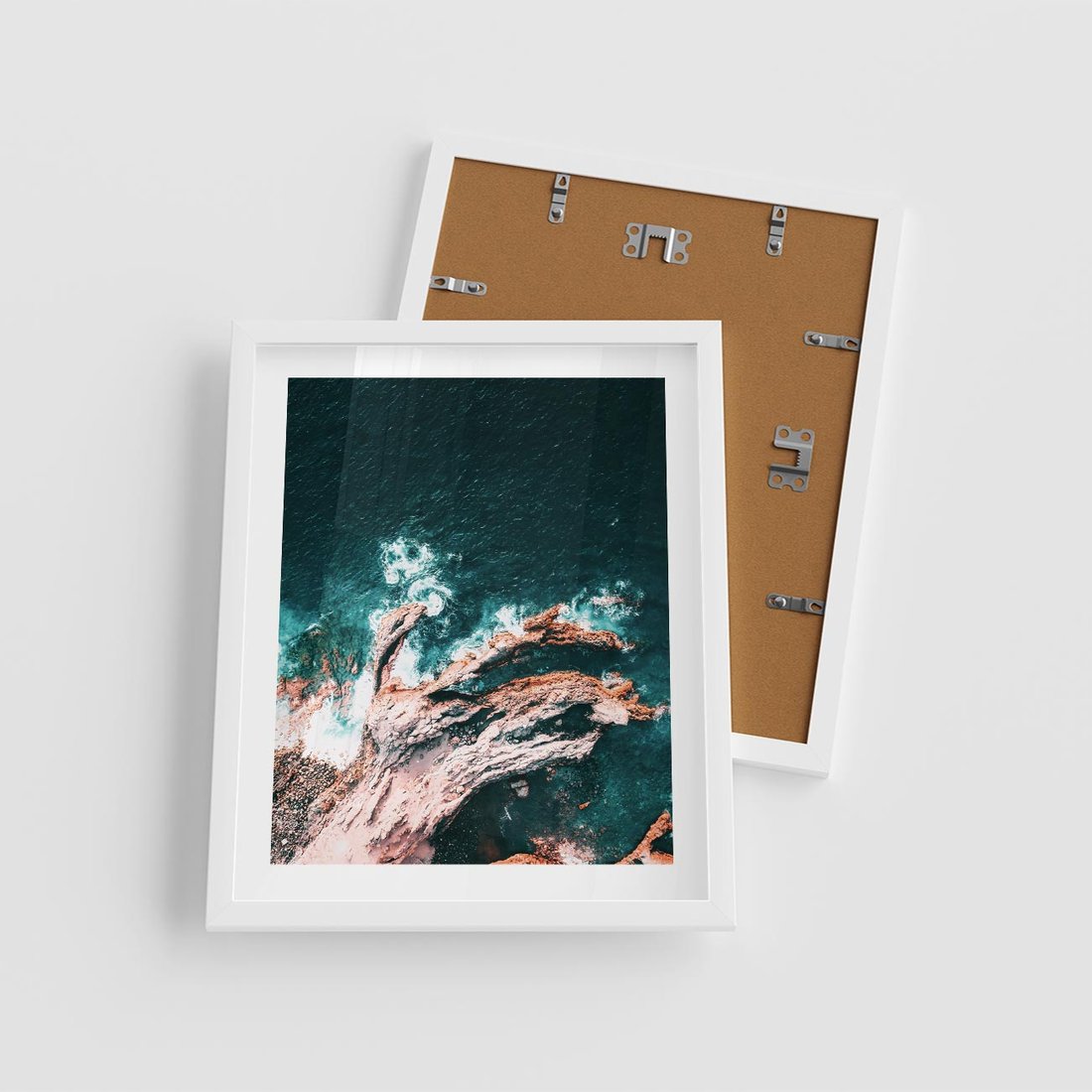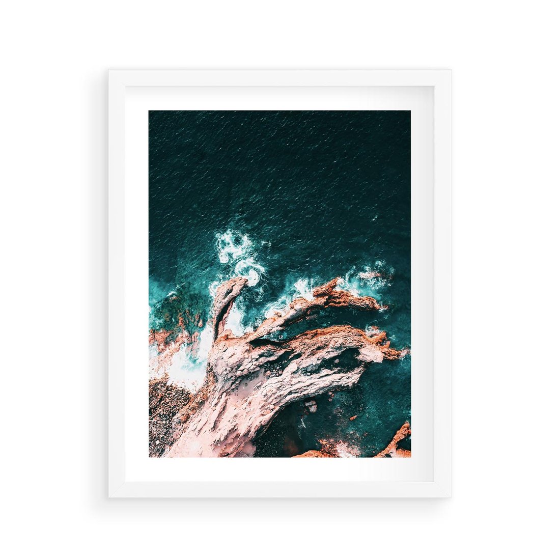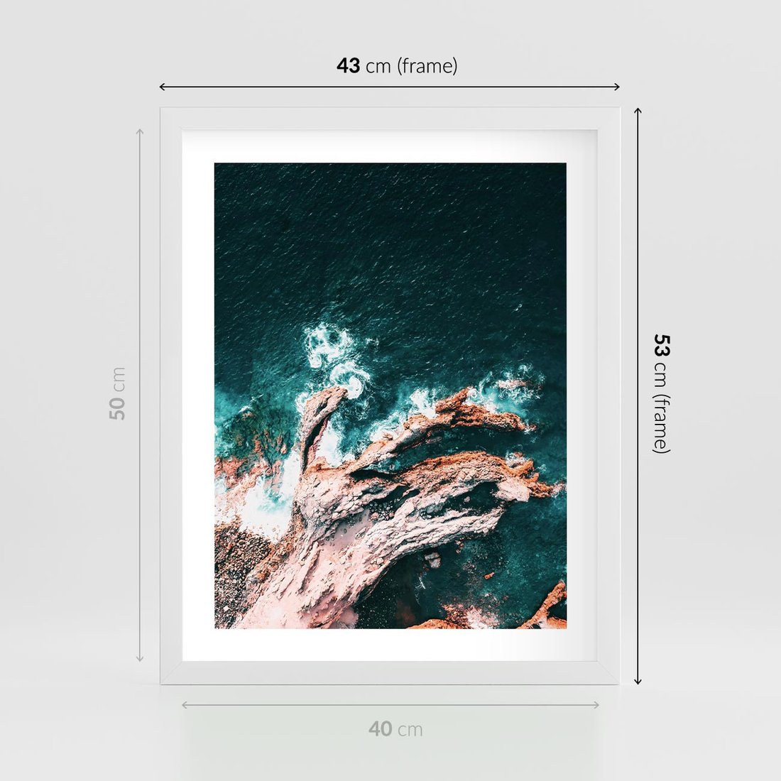 Plakat w ramie 40x50 - Fale i Skały w Spokoju i Burzy - morze, fale rozbijają się o skały - rama biała