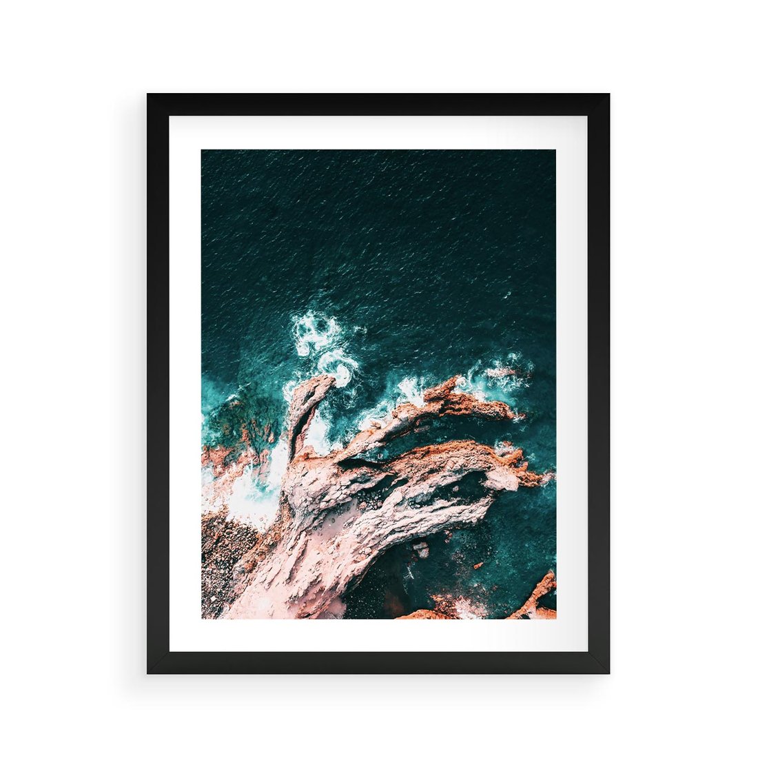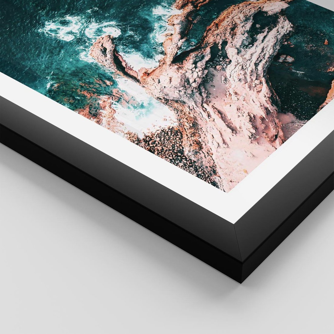 Plakat w ramie 40x50 - Fale i Skały w Spokoju i Burzy - morze, fale rozbijają się o skały - rama czarna